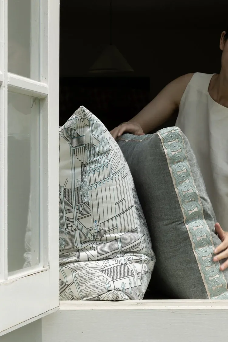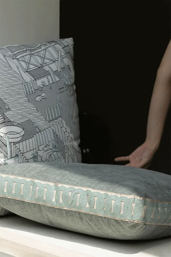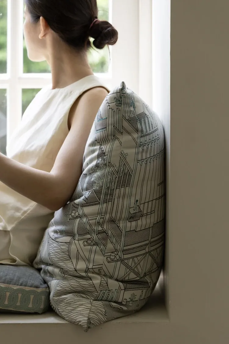 Rena Hermès "Hidden Serenity" Double-Sided Embroidered Large Cushion and Pillow for Bay Window Seating – Removable and Washable for Ultimate Comfort and Style