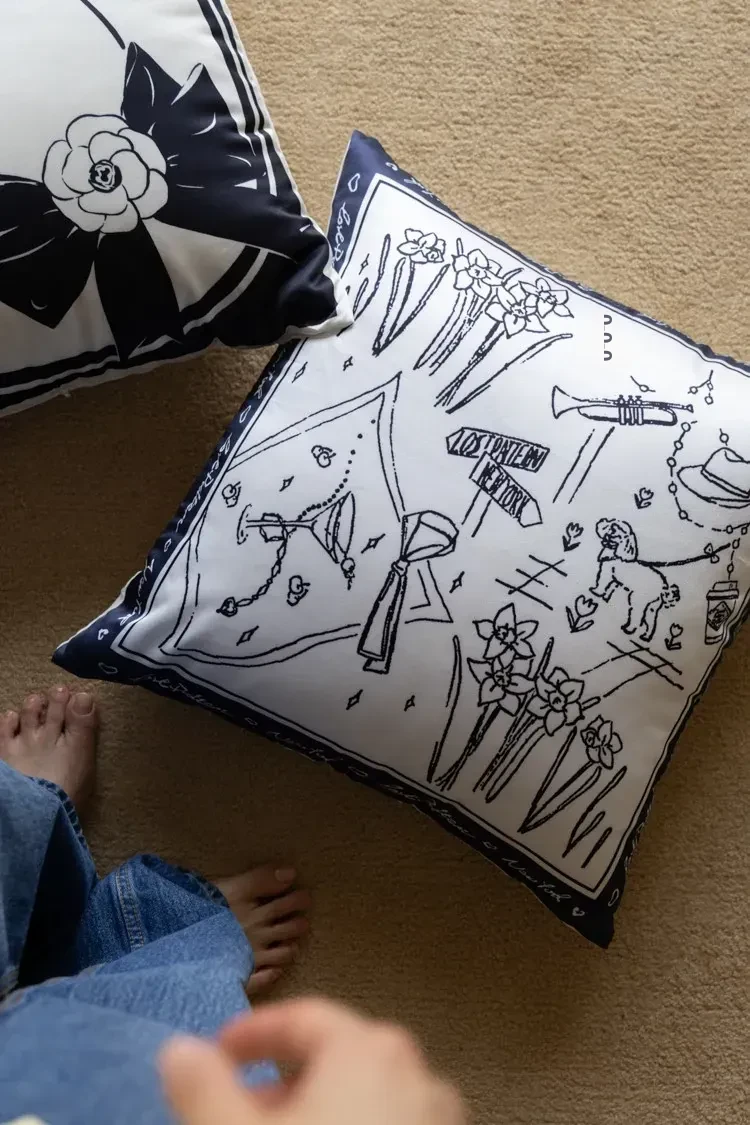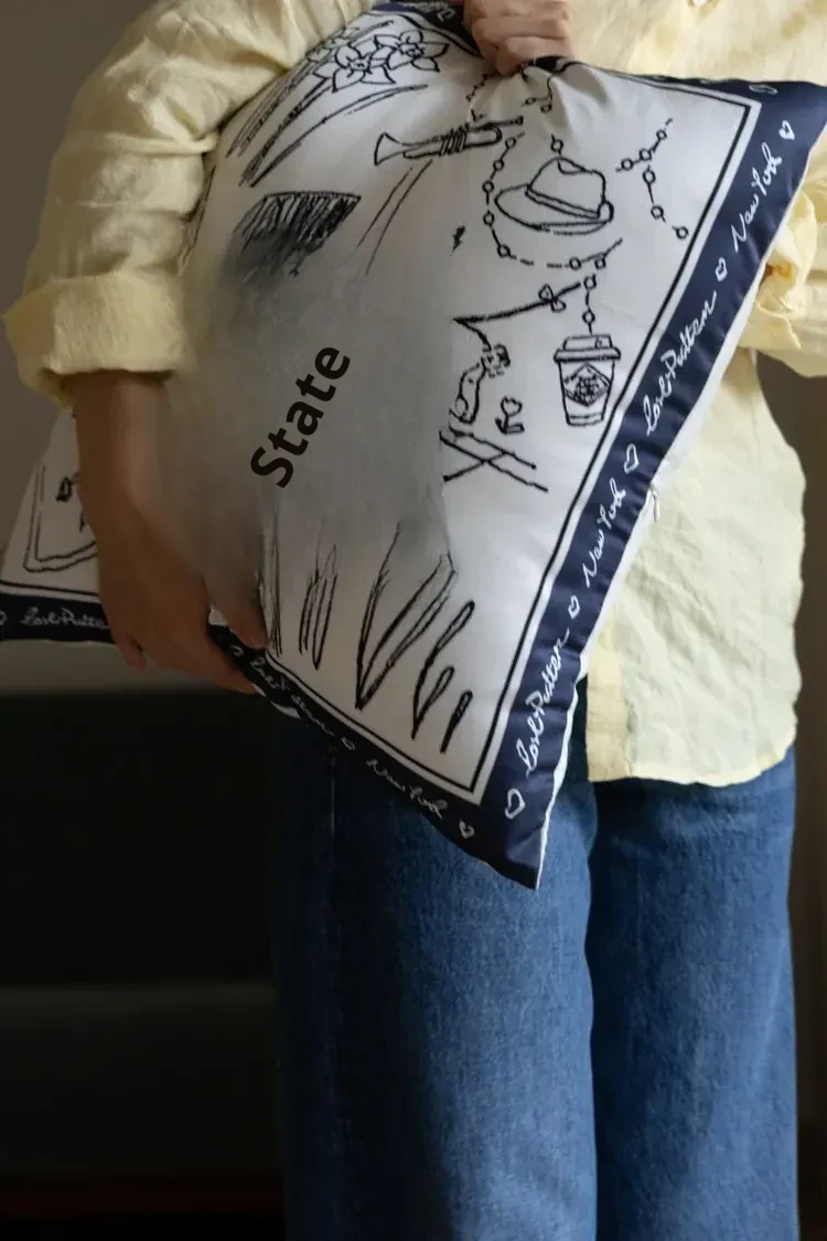 Renae Chill Time: "Stroll Through New York" Silk-Satin Removable Washable Throw Pillow - Soft and Skin-Friendly Sofa Cushion