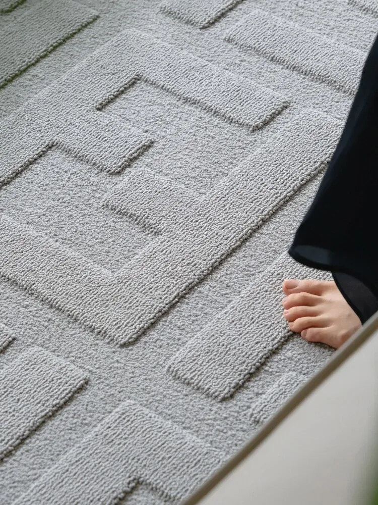 Renae Fend* Pearl Grey "Micro-Waterproof" Double F 3D Relief Living Room Carpet - Ideal for Entryway and Bedroom Use