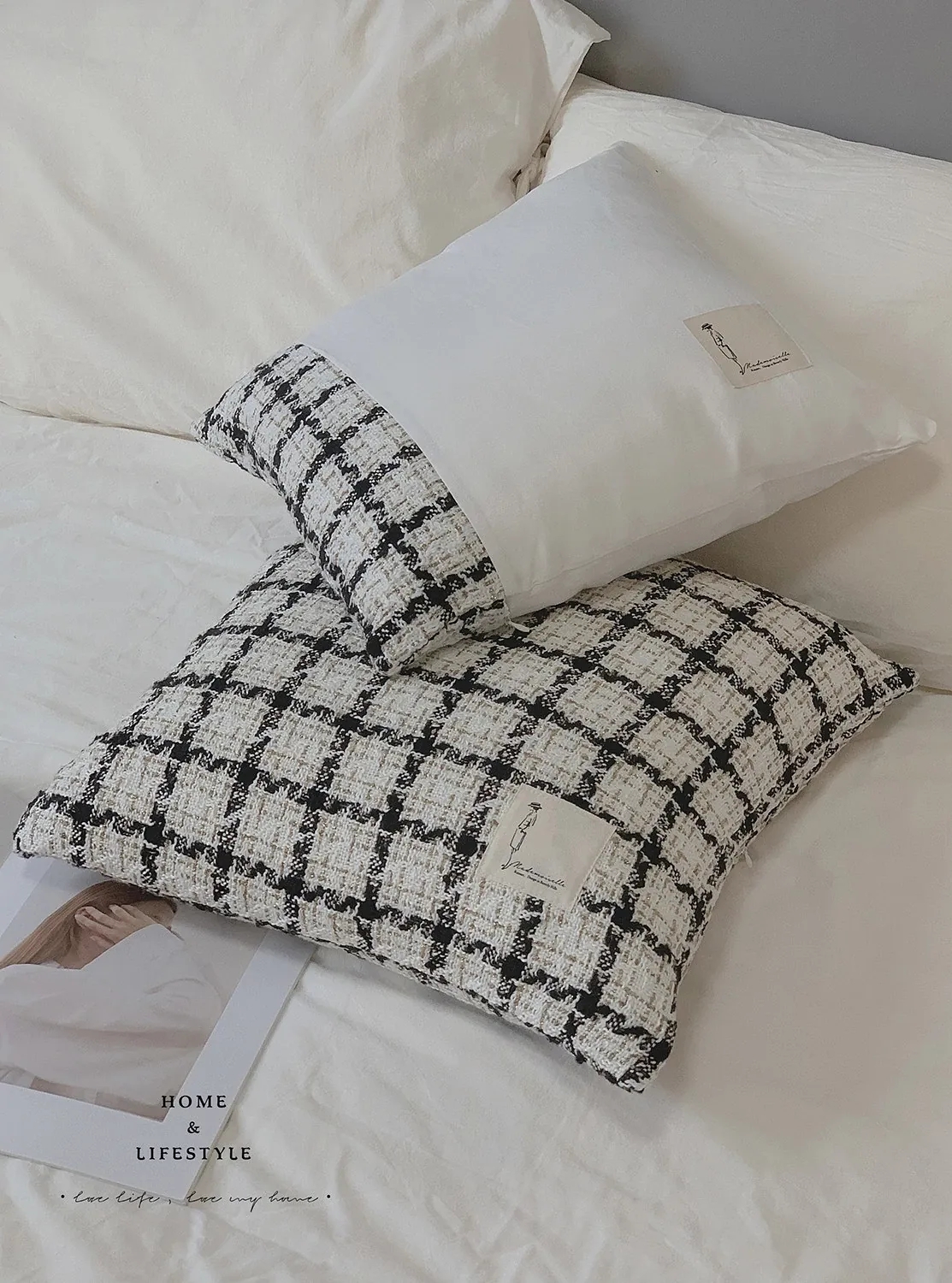 Rhino Life CocoCushion Minimalist Art Black and White Wool Woven European Style Soft Sofa Throw Pillow