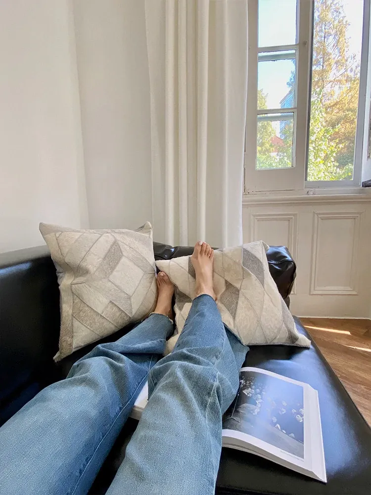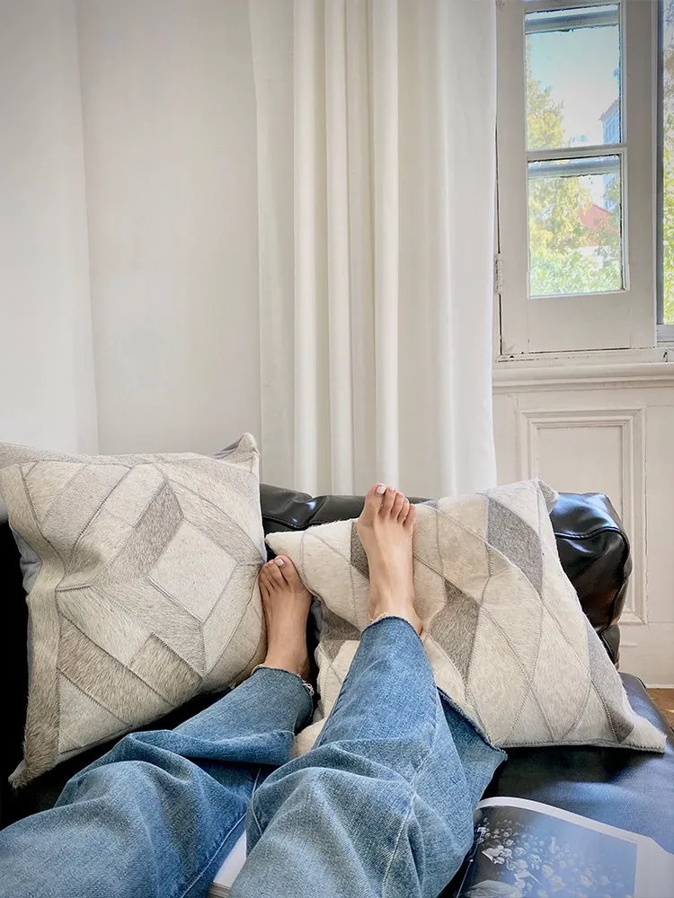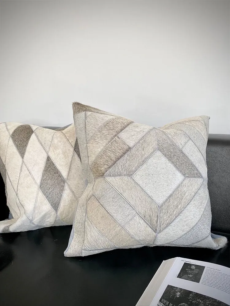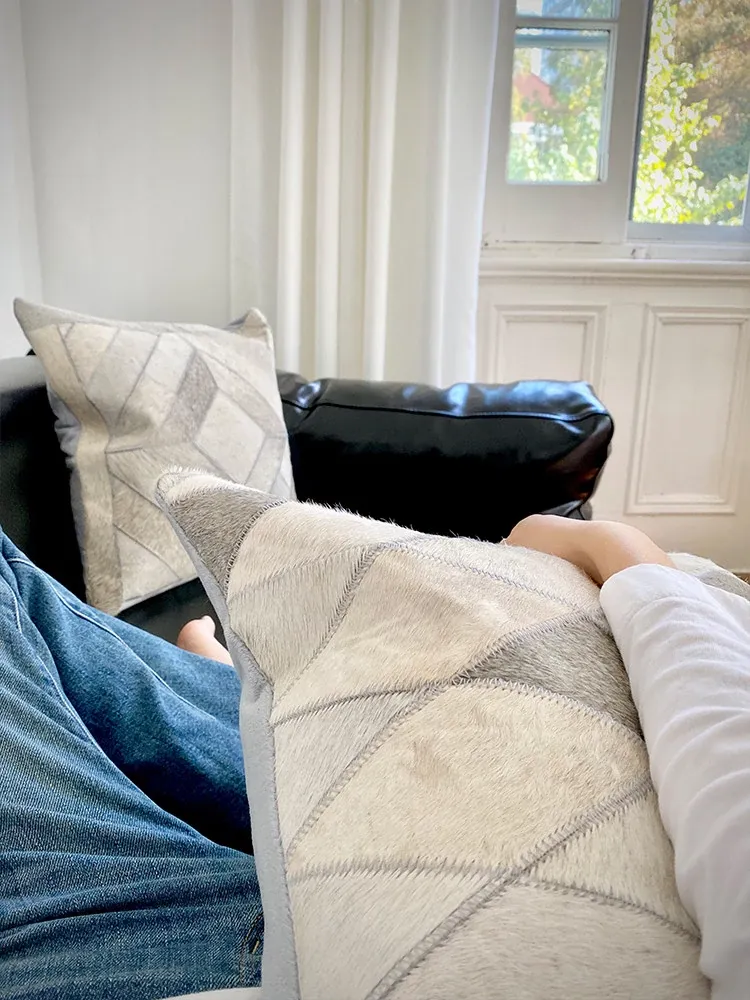 Rhino Living "Diamonds" Grey Diamond Series Cowhide Sofa Cushion Covers - Nordic Style Home Decor