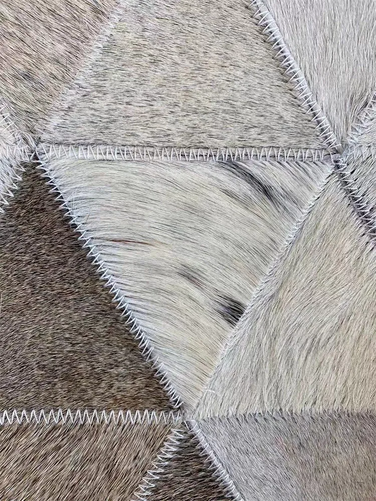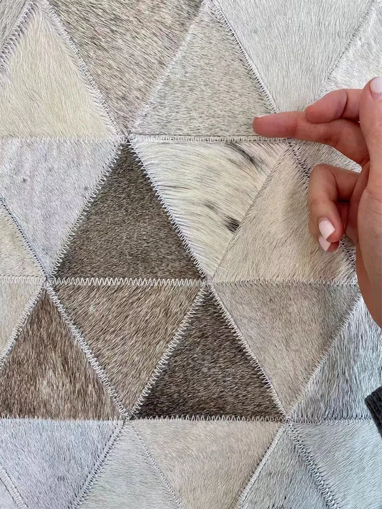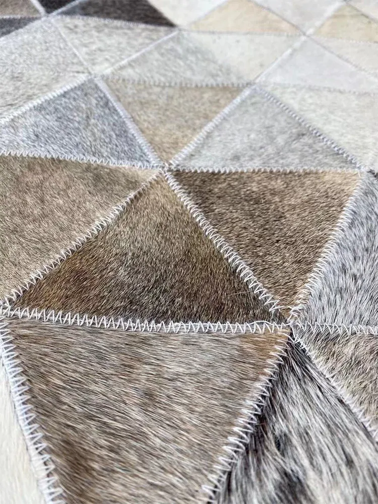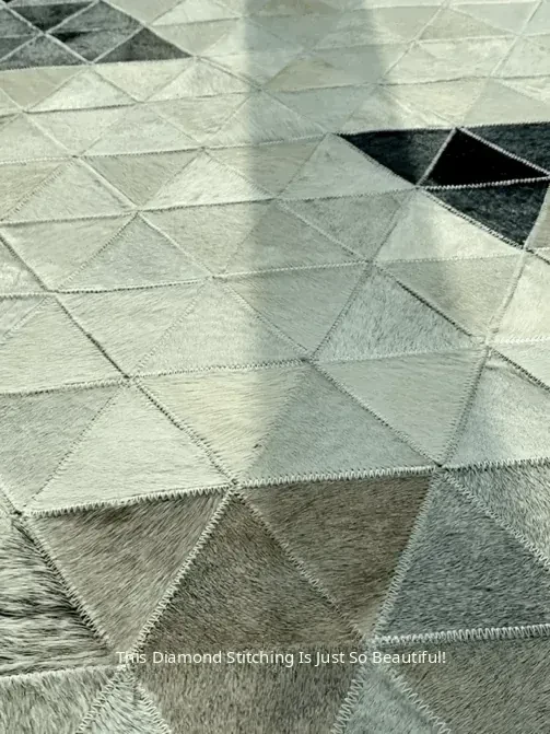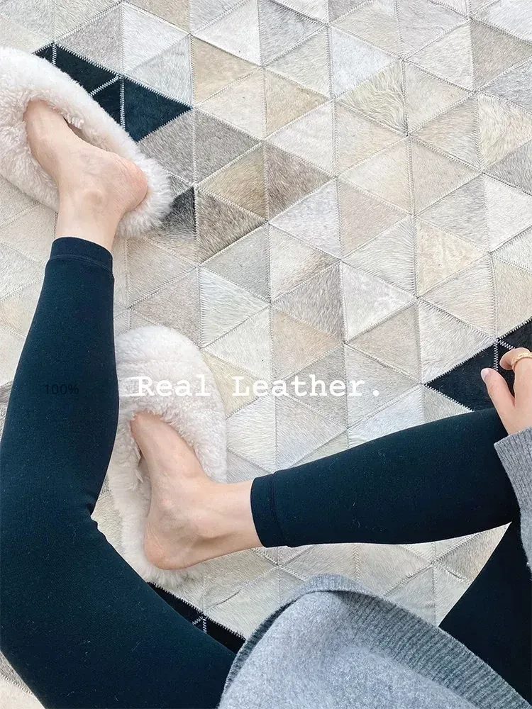Rhino Ruonai Diamonds Gray Diamond Series Genuine Cowhide Luxury Model Home Patchwork Vintage Leather Area Rug