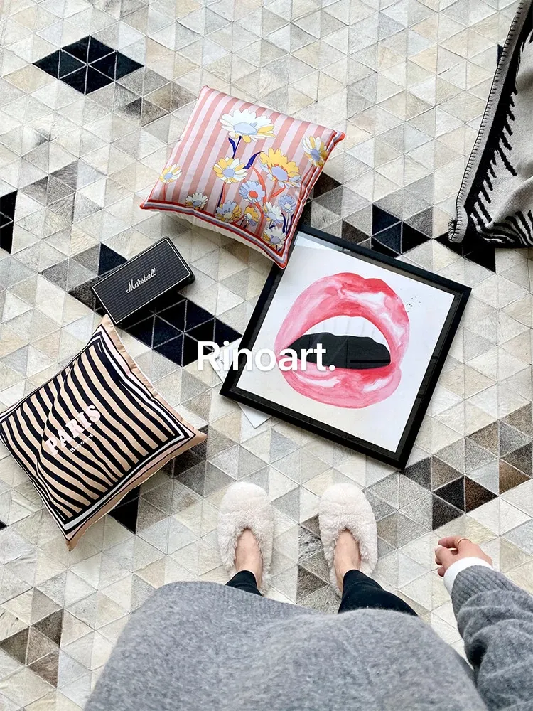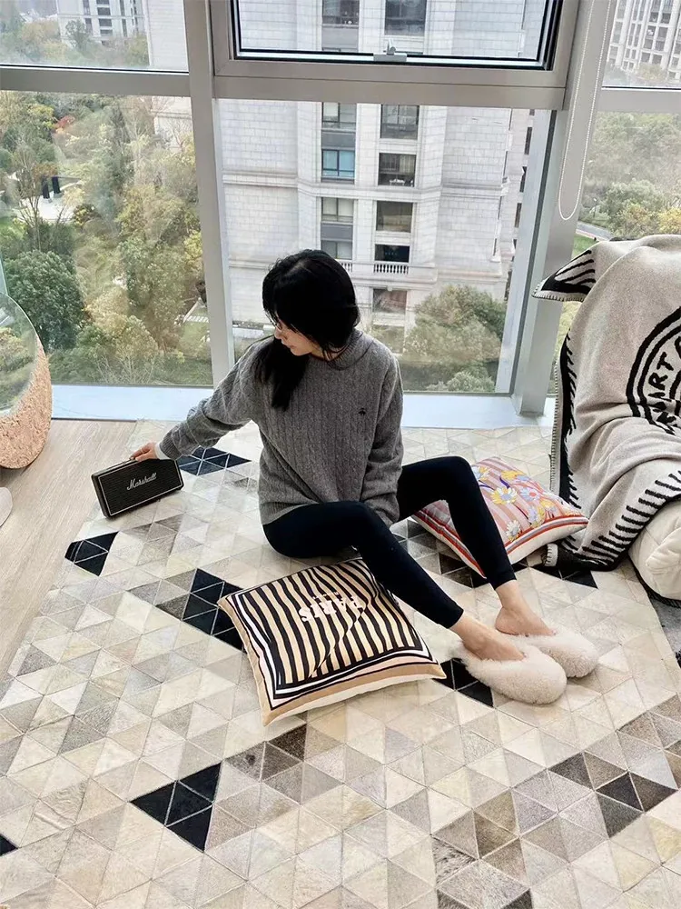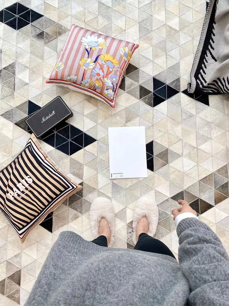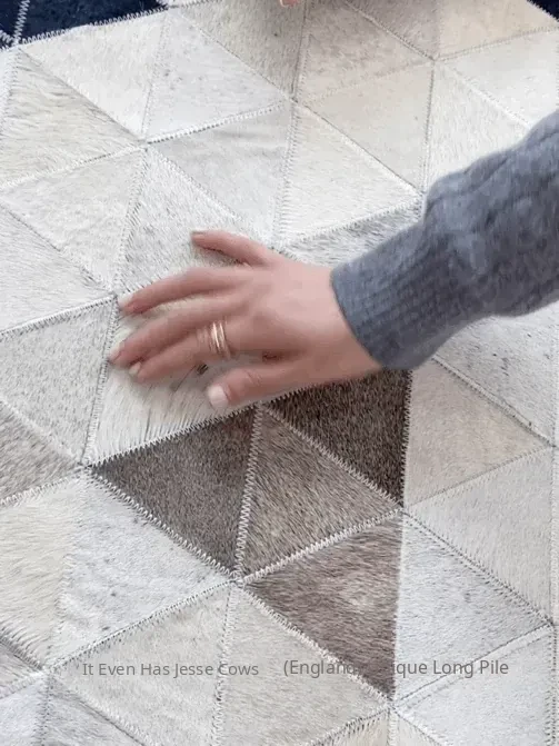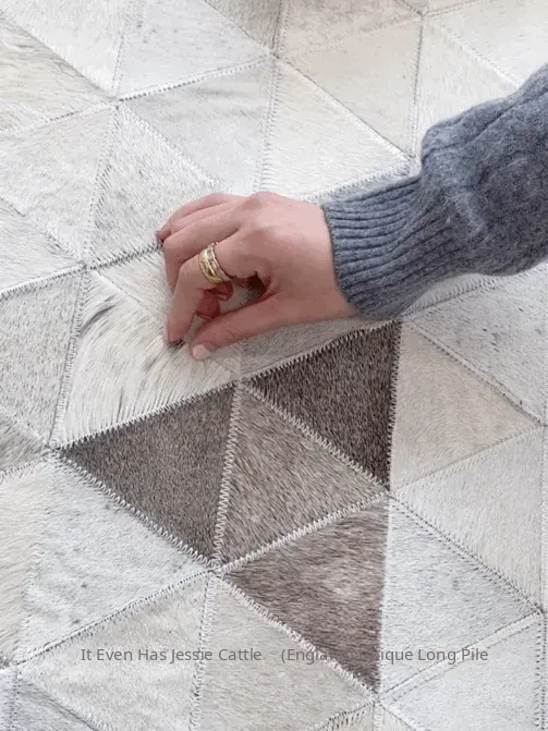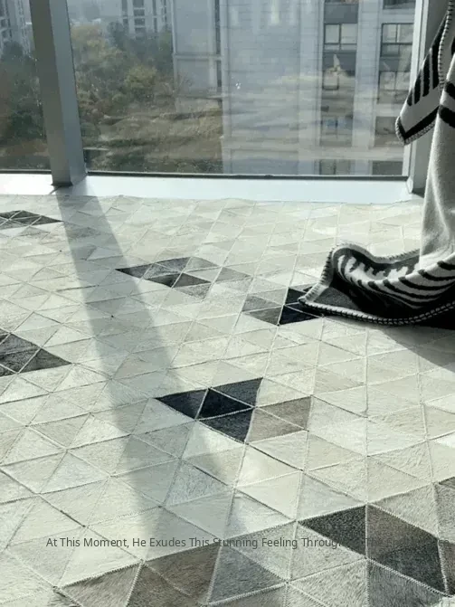 Rhino Ruonai Diamonds Gray Diamond Series Genuine Cowhide Luxury Model Home Patchwork Vintage Leather Area Rug