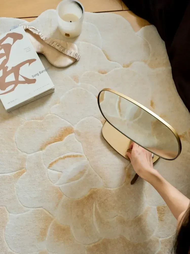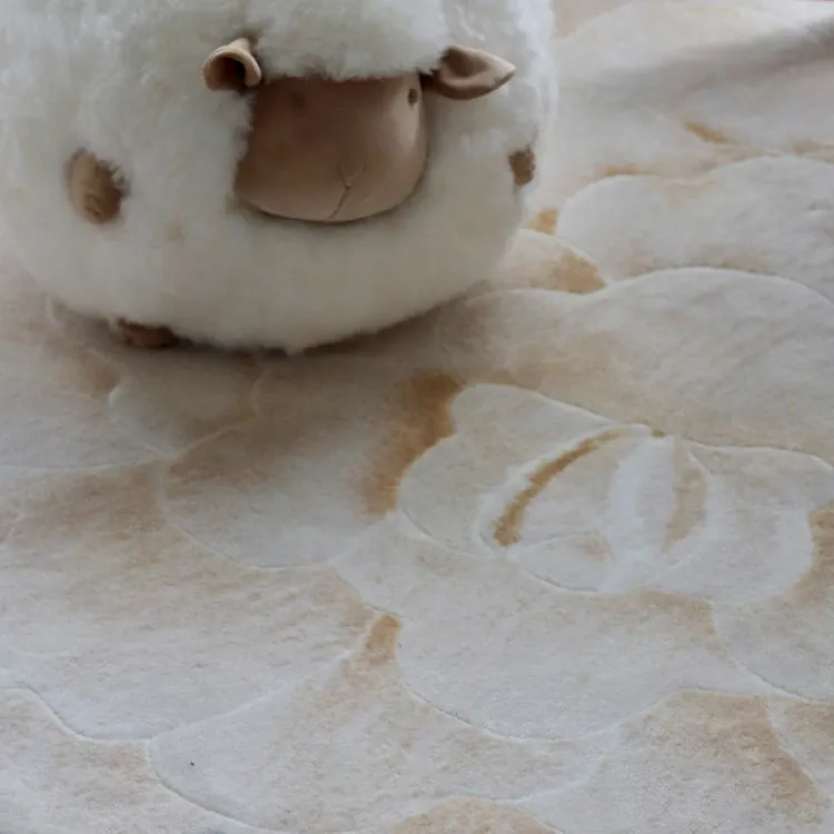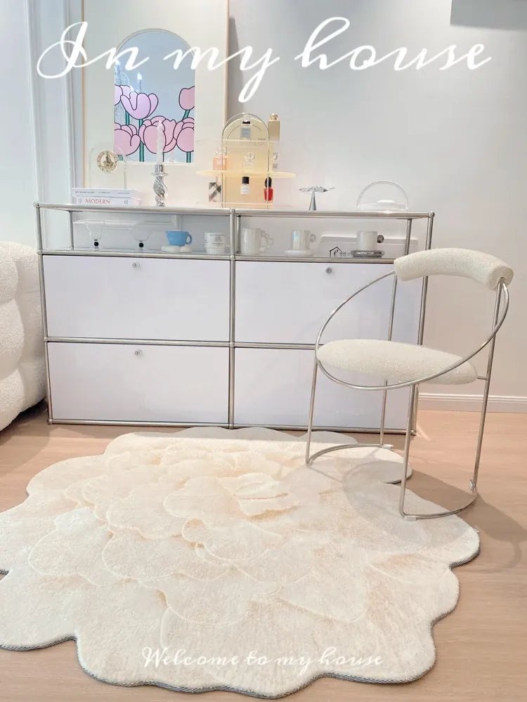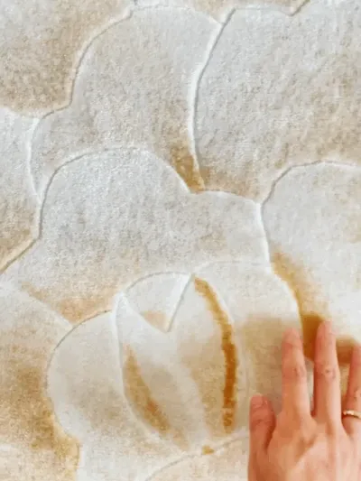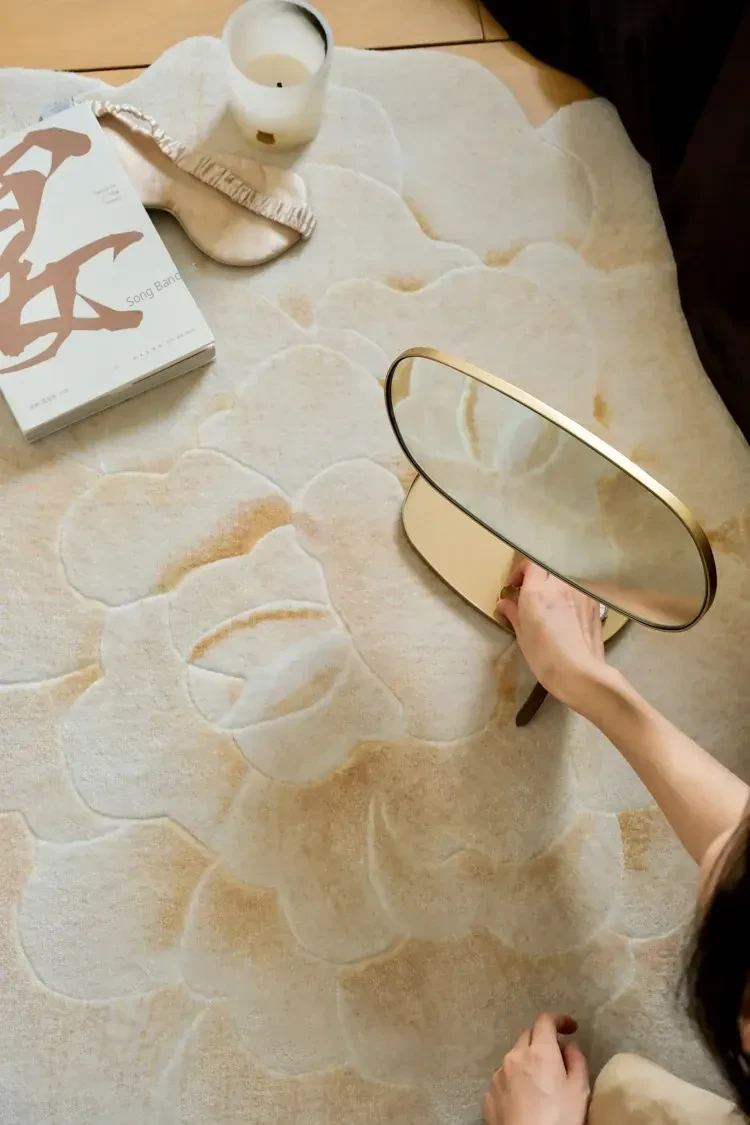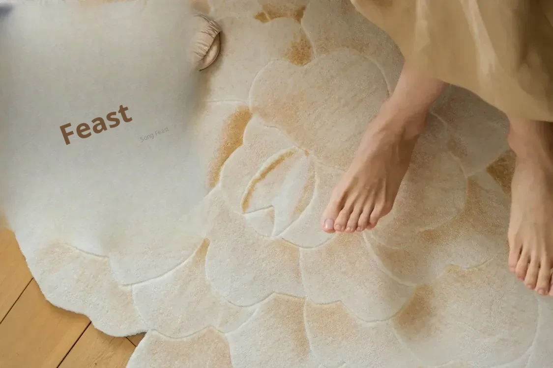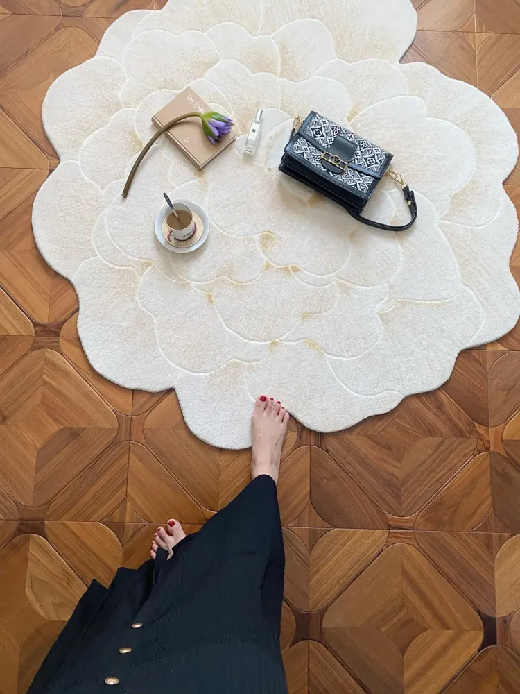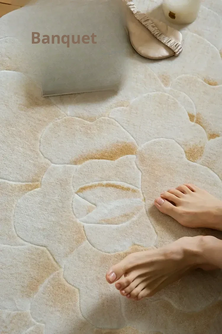 Rinai Valentino "Golden Silk White Peony" 3D Hand-Carved Bedside Rug - Elegant Entry Mat & Vanity Throw Blanket for a Luxurious Touch to Your Space