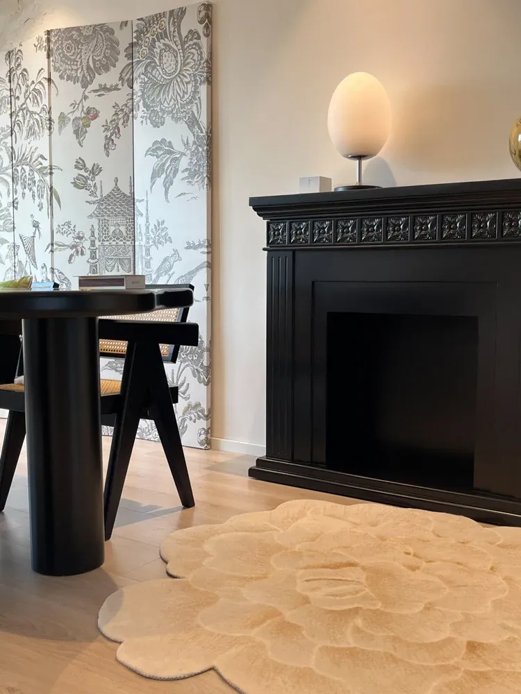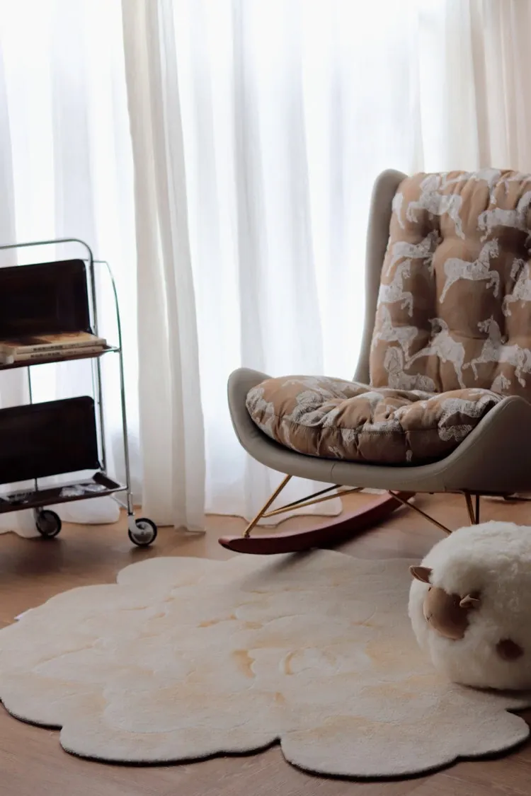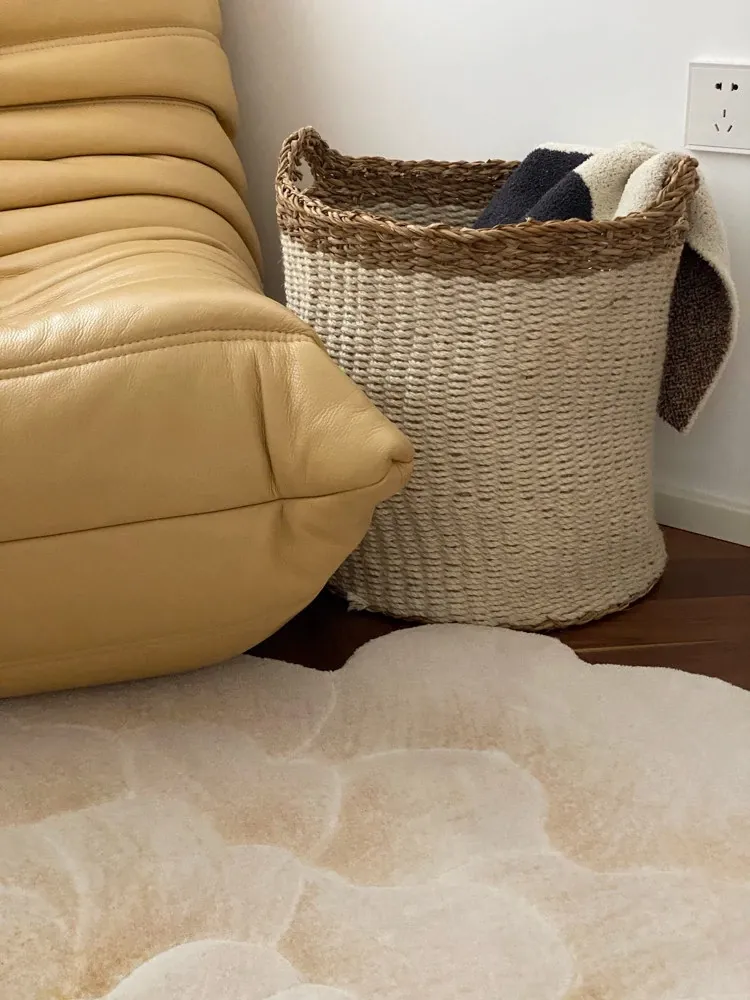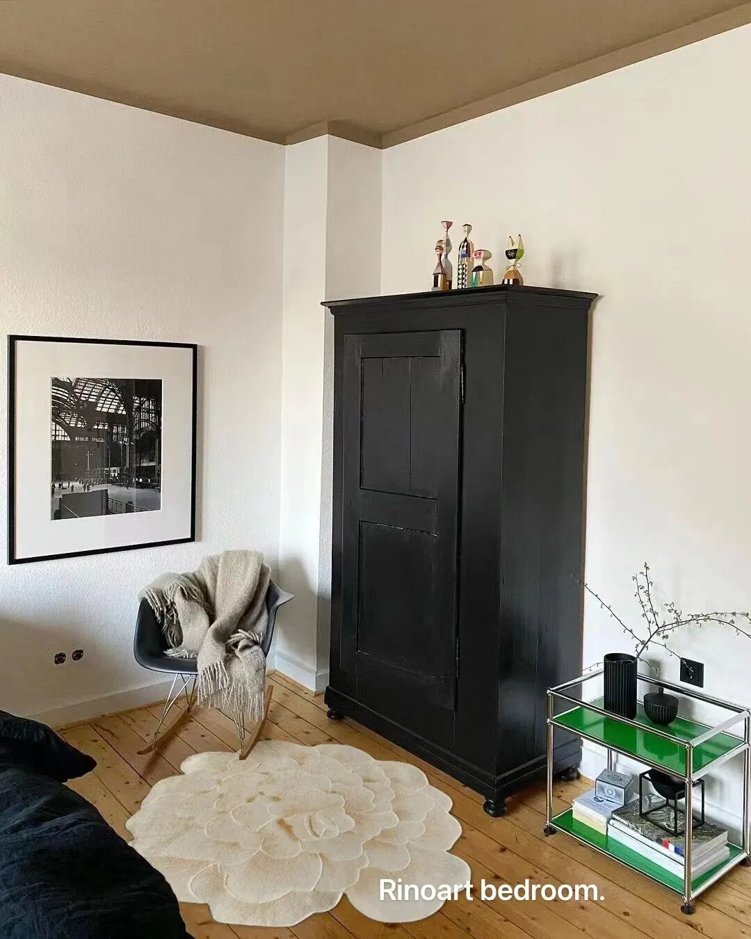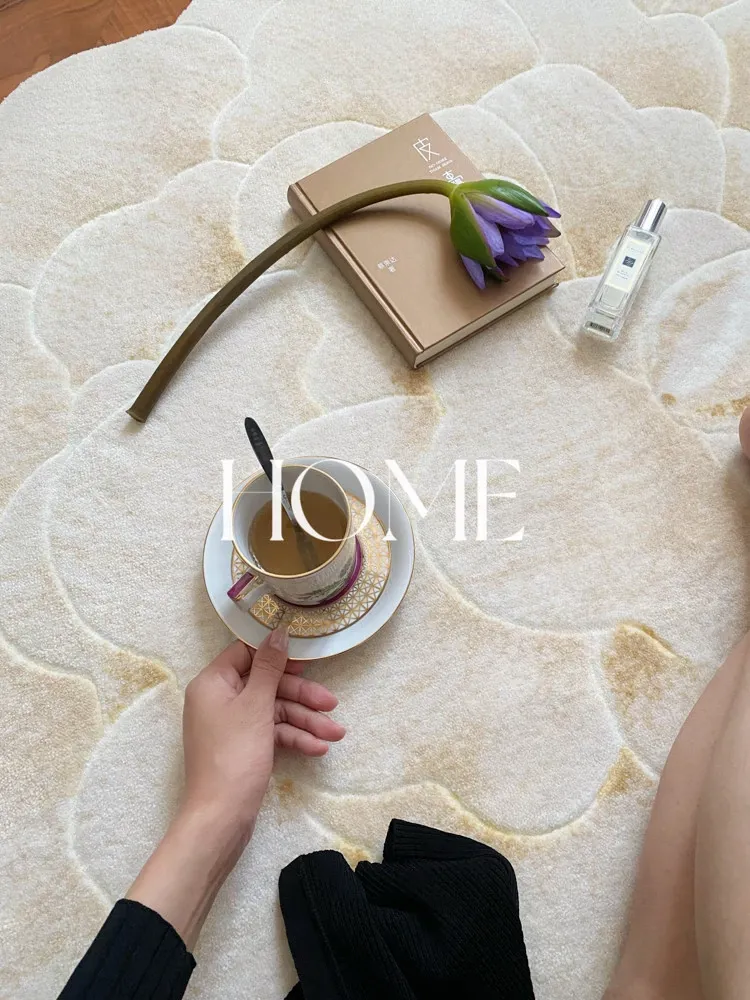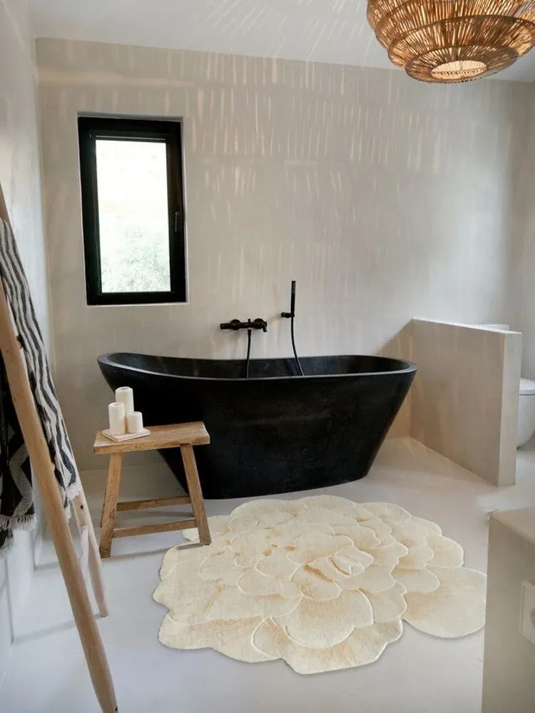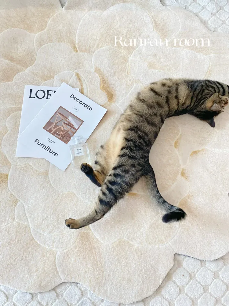 Rinai Valentino "Golden Silk White Peony" 3D Hand-Carved Bedside Rug - Elegant Entry Mat & Vanity Throw Blanket for a Luxurious Touch to Your Space