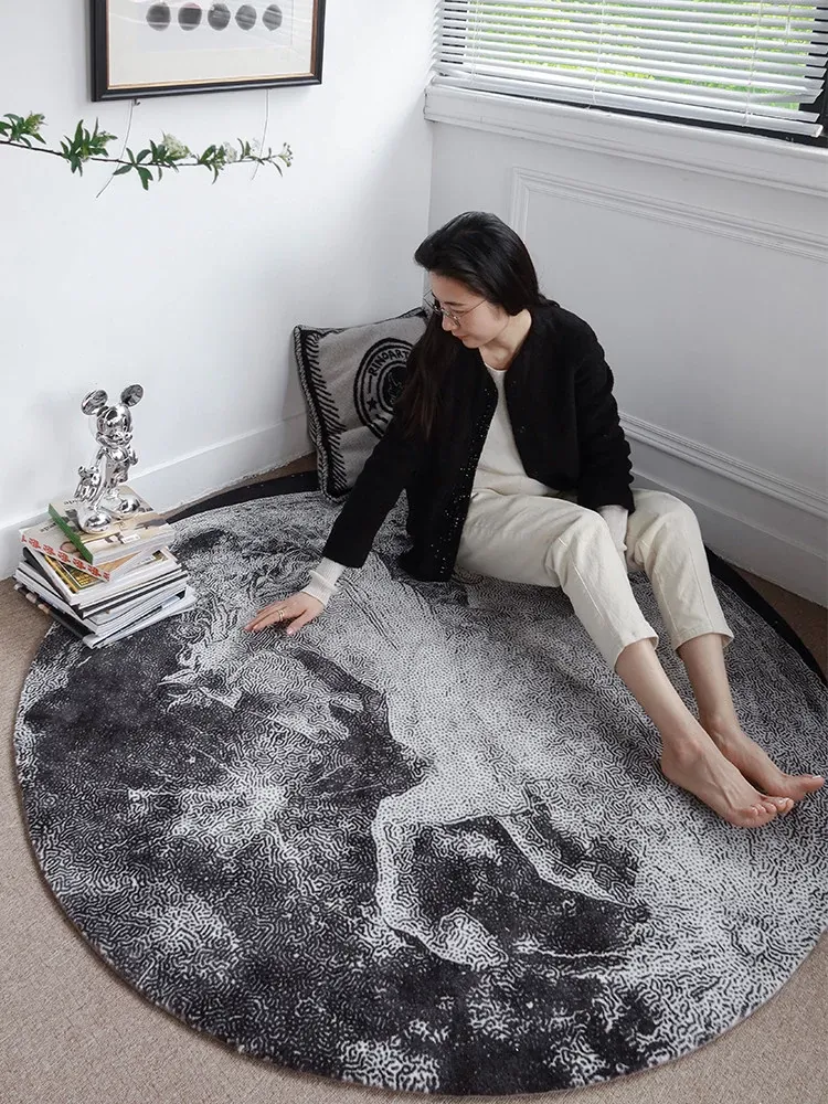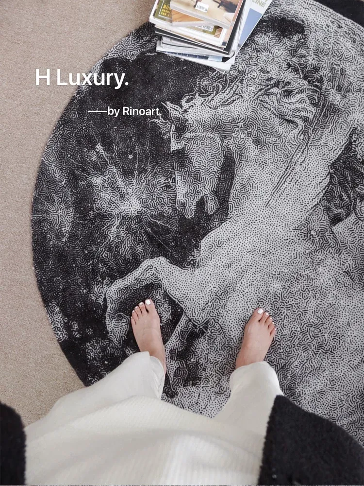 RINOART "Starry Moon White Horse" Round Area Rug - Perfect for American Style Living Room, Bedroom, and Study - Cozy Home Carpet for Any Space