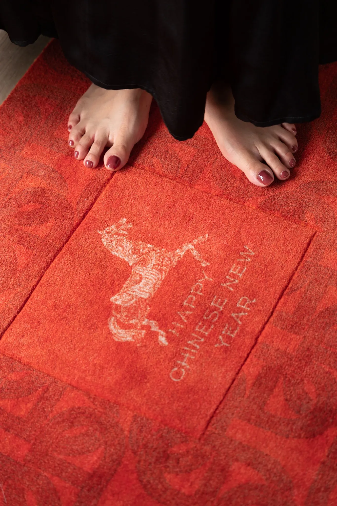Roinai Hermès Galloping Horse "Elegance in Motion" - Red Year of the Horse Welcome Mat, Bedroom Rug, Door Mat