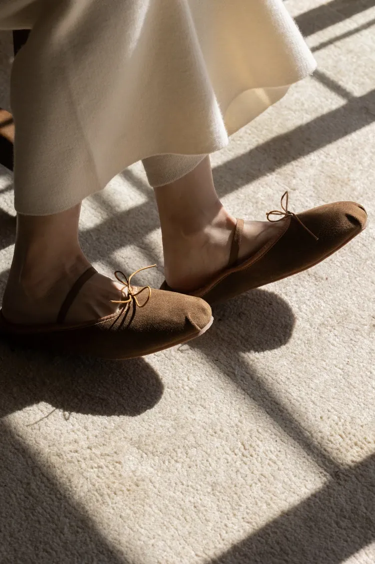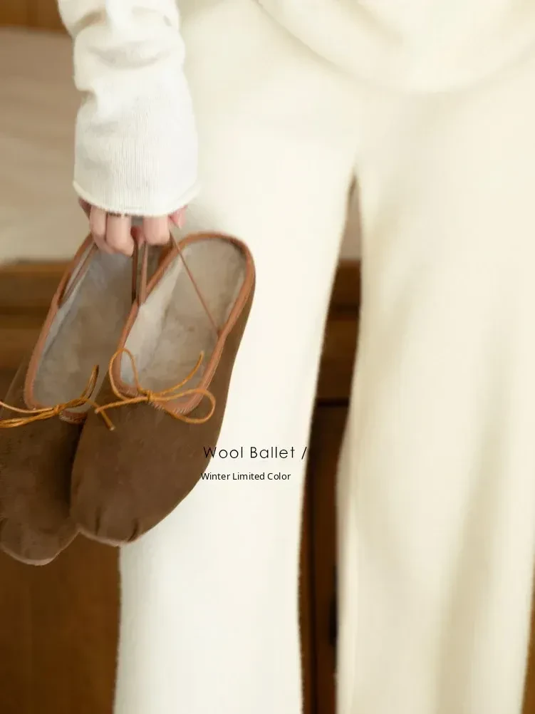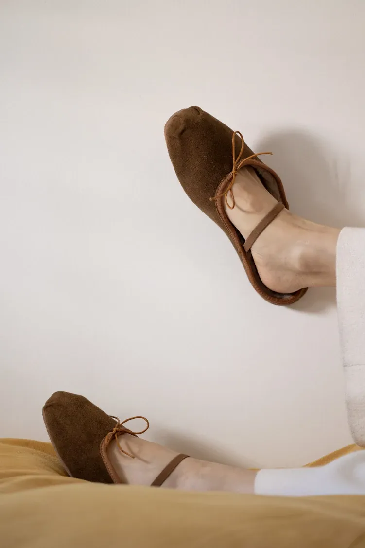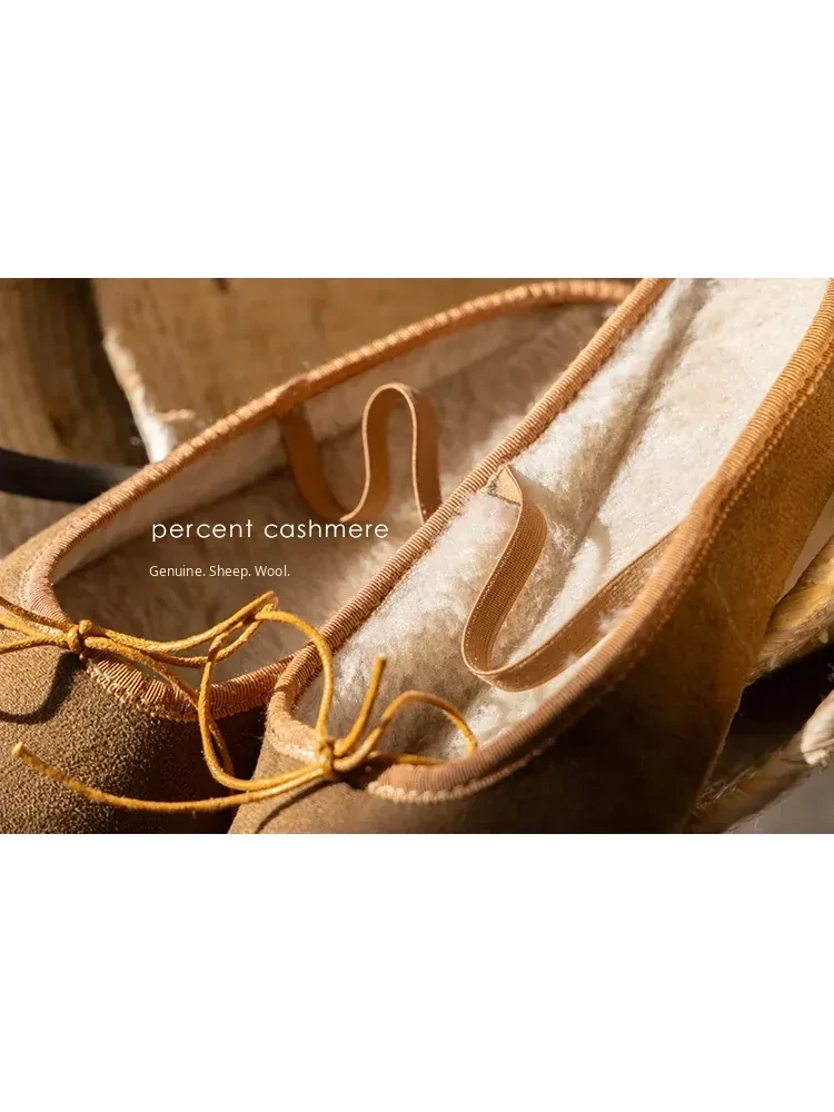Rona Autumn/Winter Fleece-Lined Miu Ballerina Home Shoes in Wheat Brown - "3 Ways" Versatile Travel and Leisure Footwear