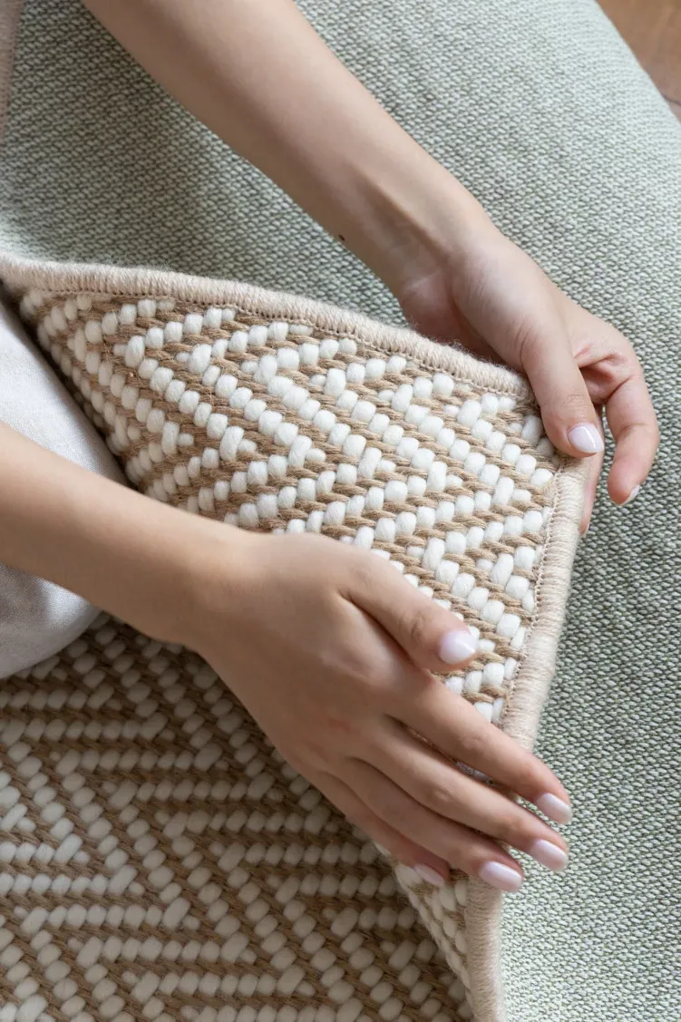 Rona Carpet - Bengal Collection / Lora Pian Herringbone Jute & Imported Wool Bedside Throw Blanket - Luxurious Comfort and Elegant Design for Your Home