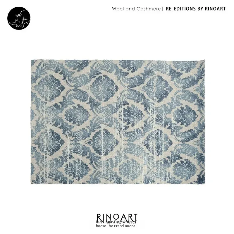 Rona Celin* Oriental Blue Flower / Limited Edition! New Zealand Wool Iris Flower Area Rug for Living Room and Bedroom