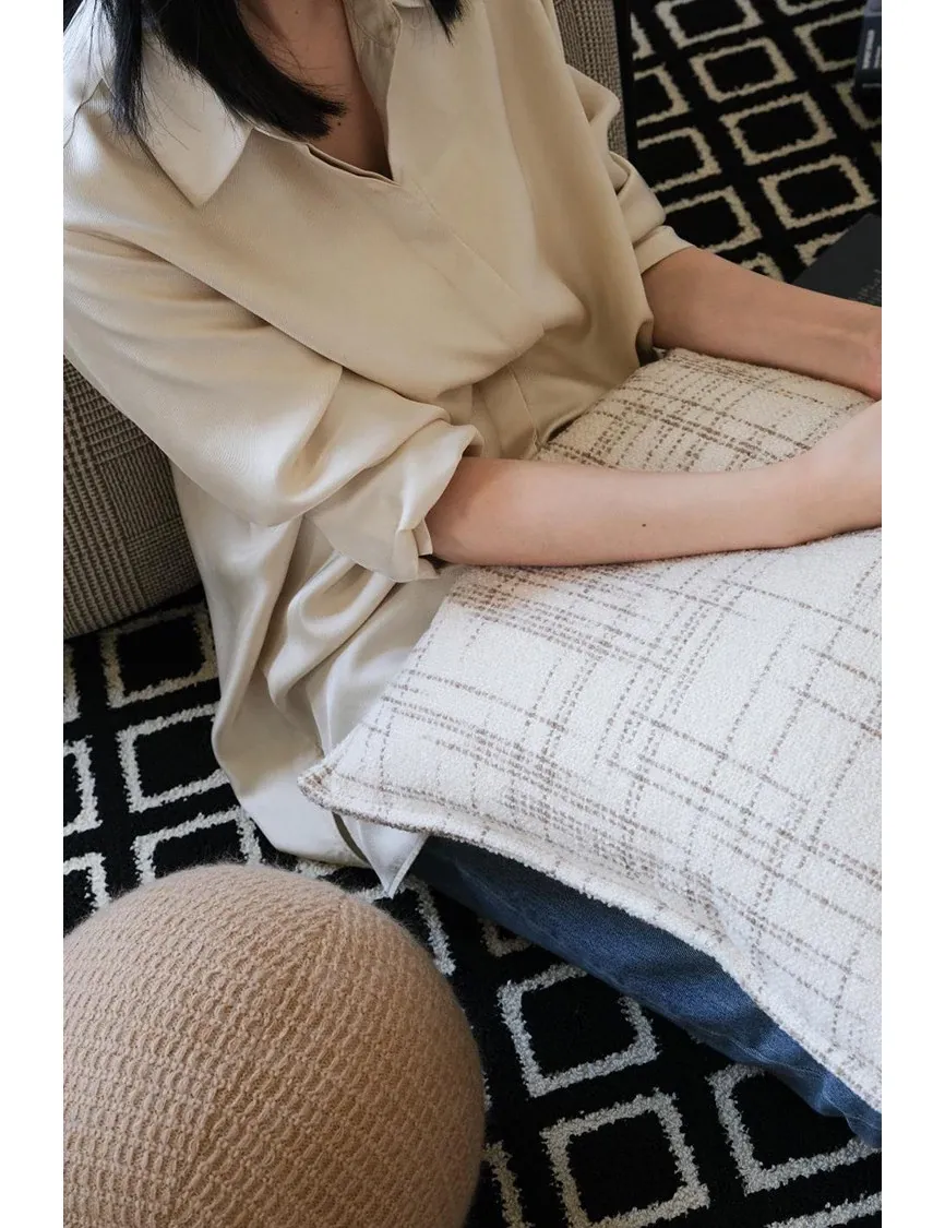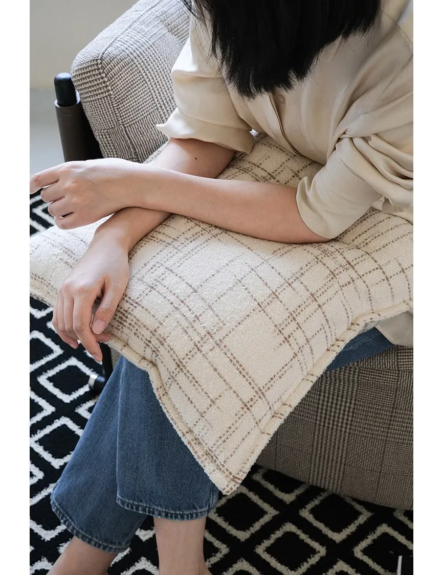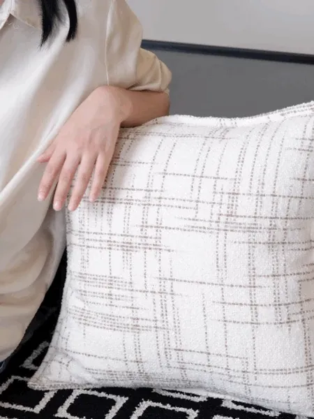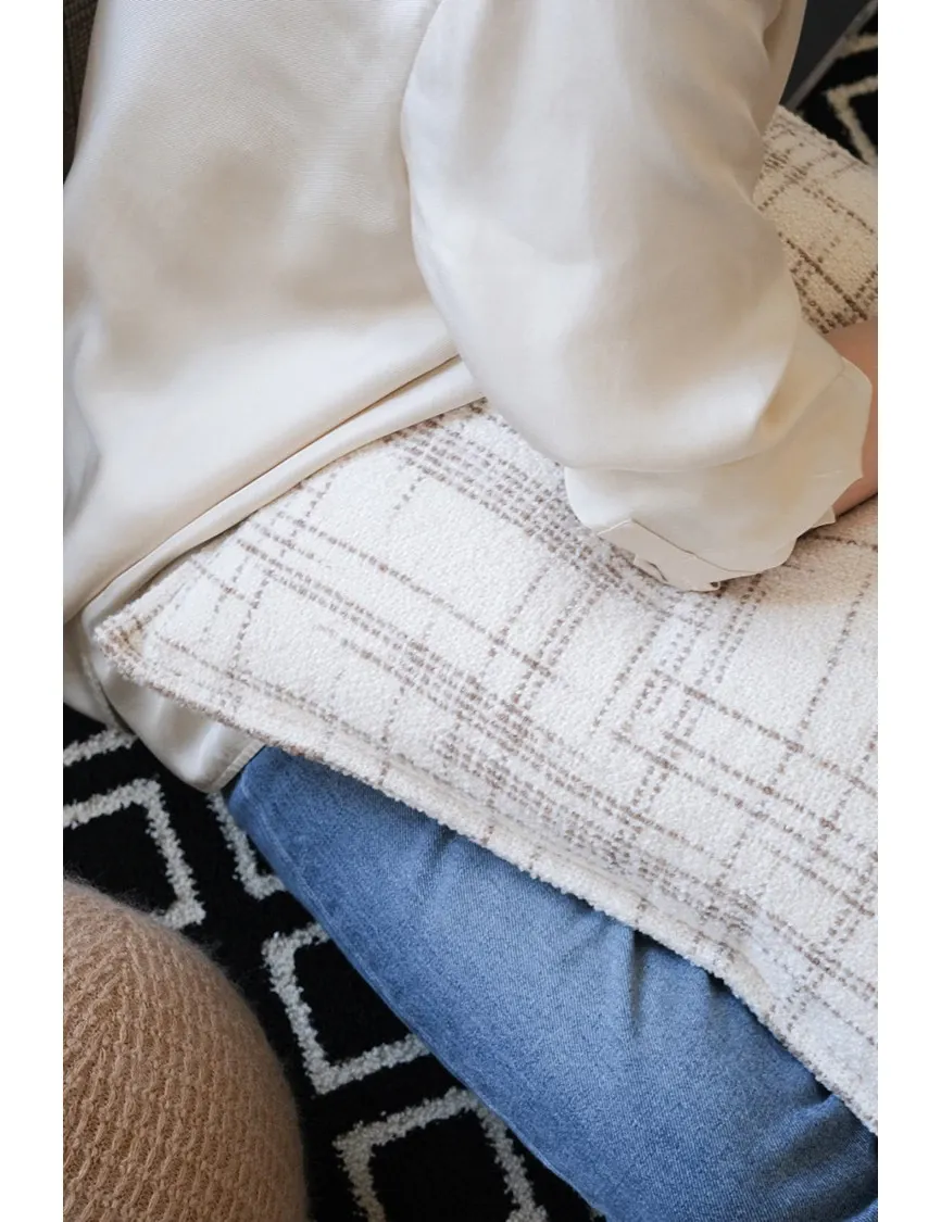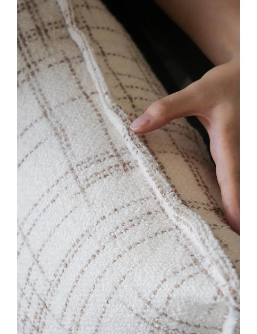 Rona CH@NEL Crosshatch Wool Blend Pillow - Chic French Woven Creamy White Lambswool Cushion for Living Room and Bedroom Decor