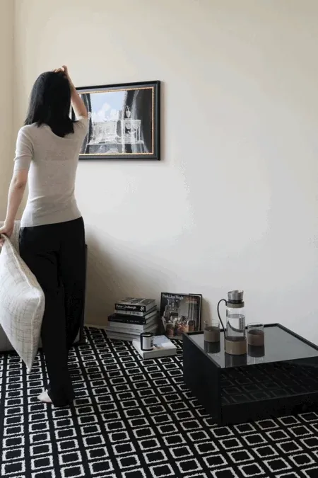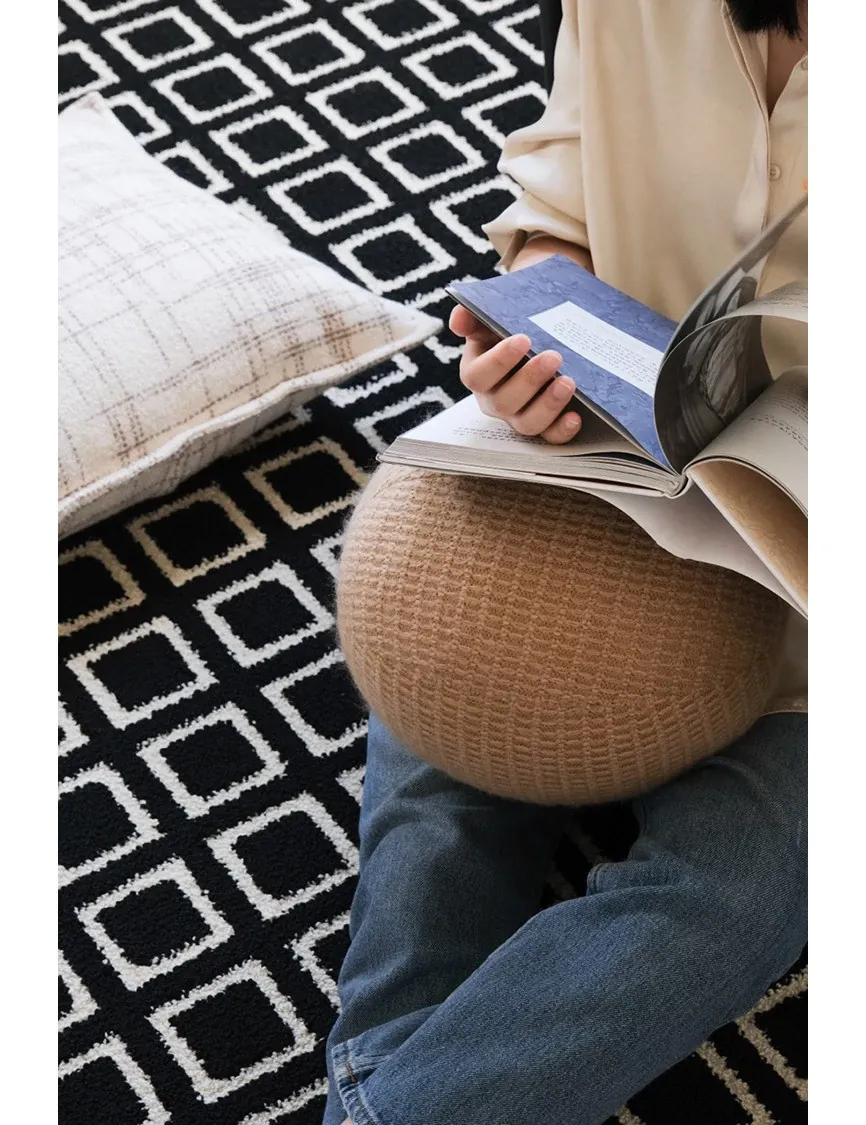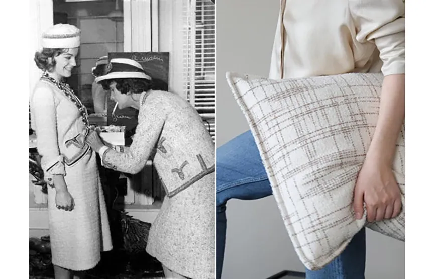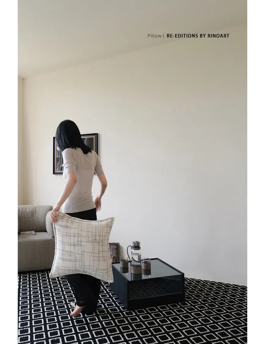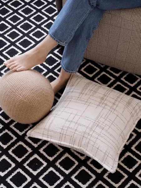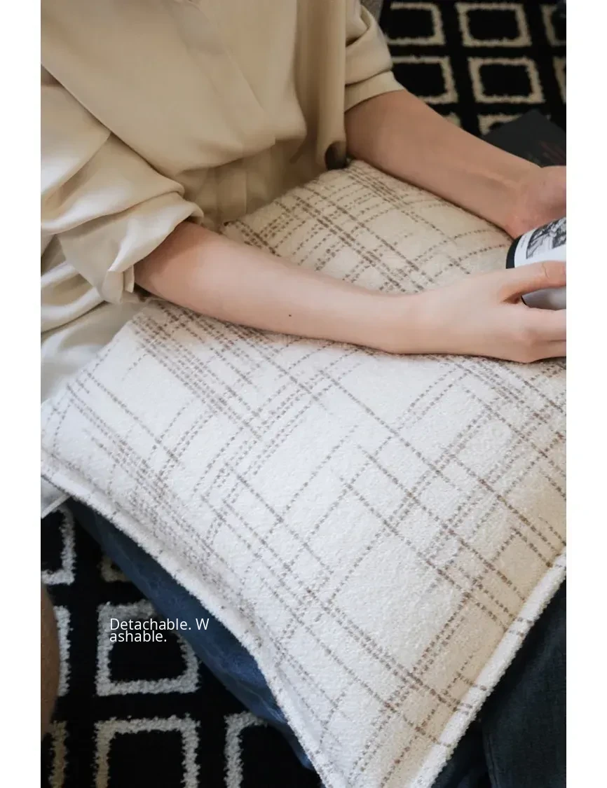 Rona CH@NEL Crosshatch Wool Blend Pillow - Chic French Woven Creamy White Lambswool Cushion for Living Room and Bedroom Decor