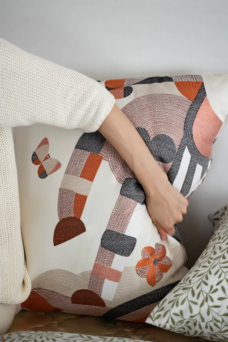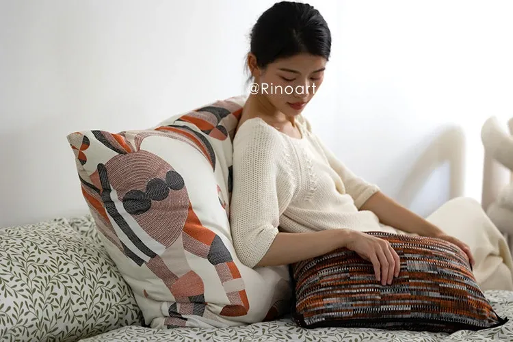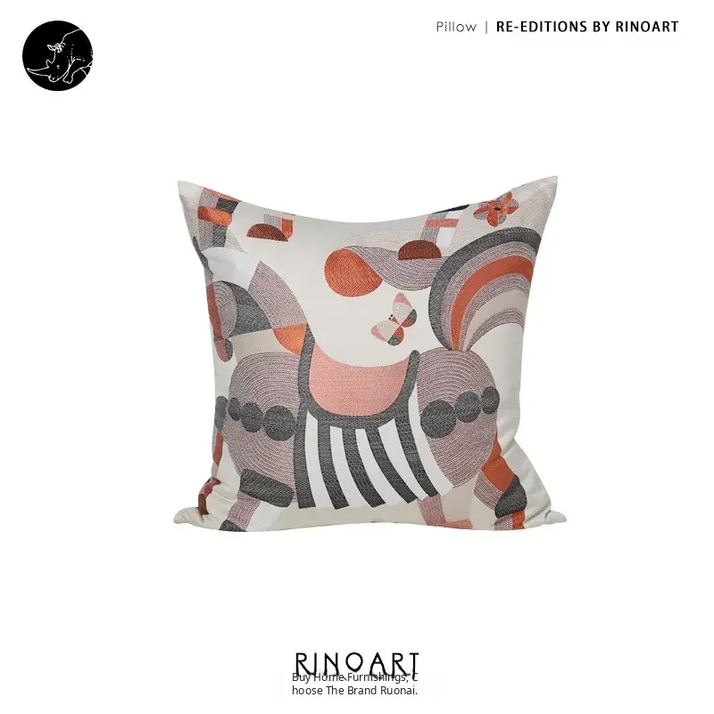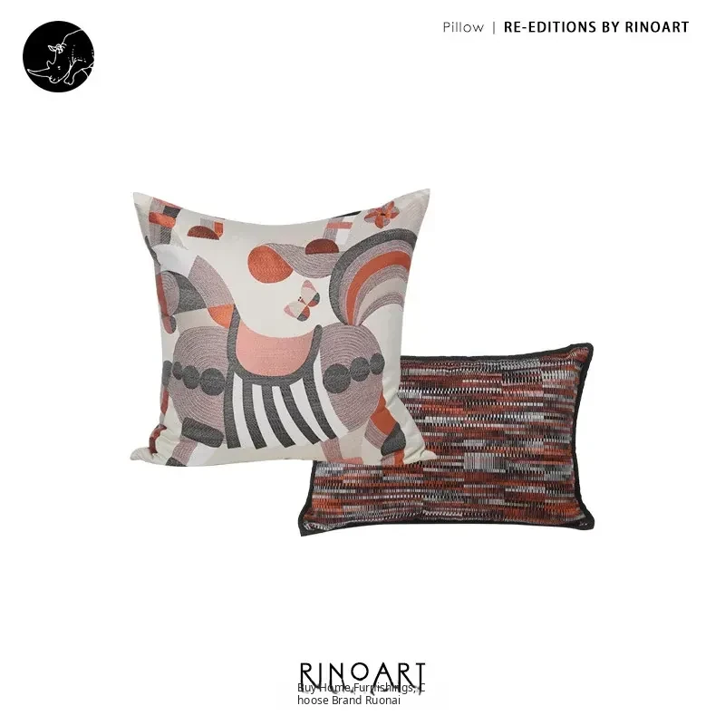 Rona Herm@s "Joyful Pony" Double-Sided Embroidered Large Cushion and Lumbar Pillow - Removable and Washable, Perfect for Bedroom and Sofa Decor