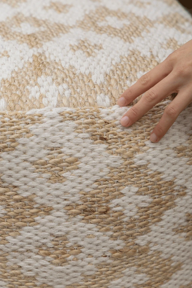 Rona Home Treasures! New Zealand Wool & Jute Diamond Pattern Removable Footstool – Elegant Shoe Bench for Stylish Entryways