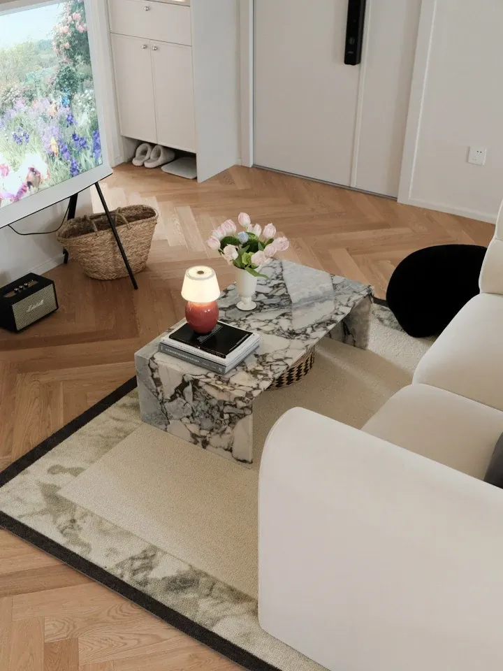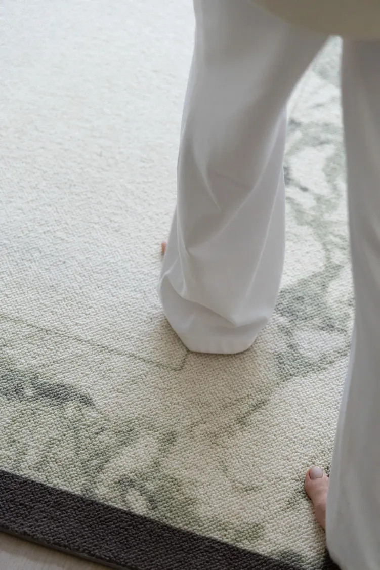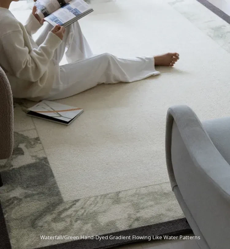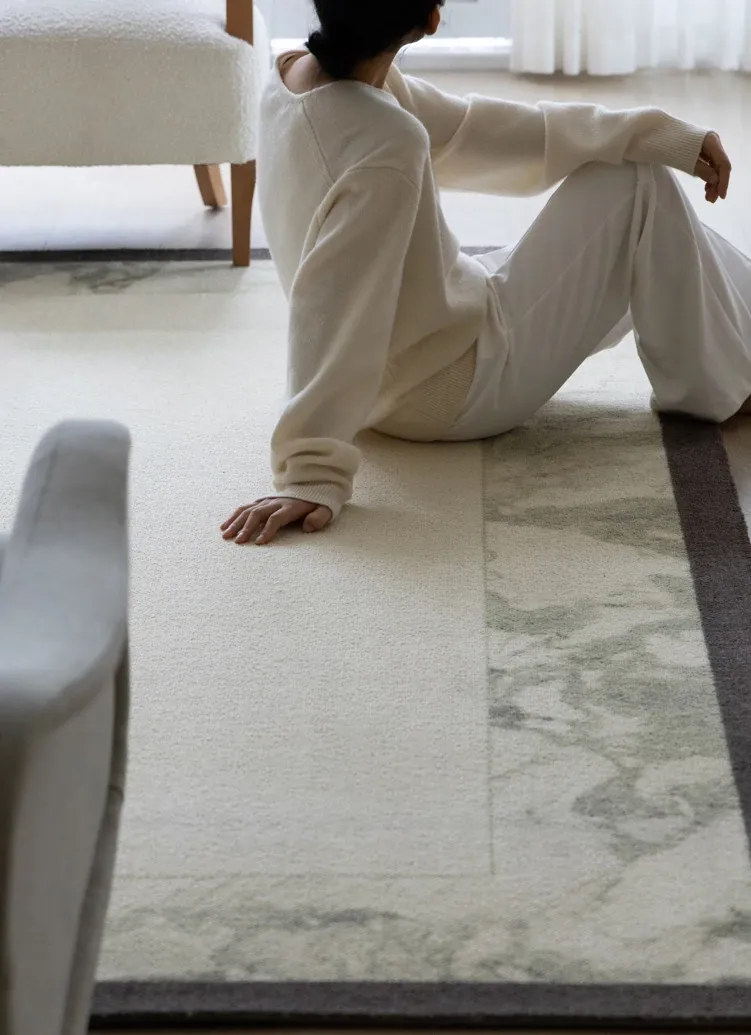 Ronaï Imported Wool & Cool Jade Marble Floral Tile Carpet - Premium Decorative Rug for Living Room, Bedroom, and Bathroom