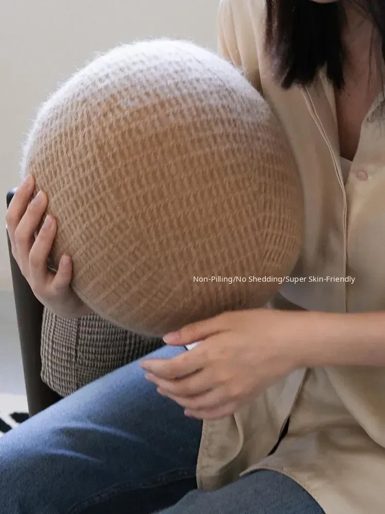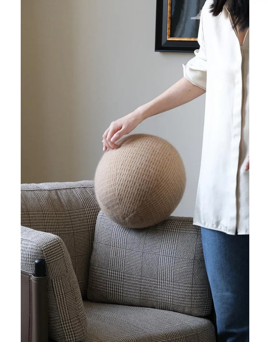 "Rona Italian B&B Style Wool & Cashmere Hazelnut Ball Pillow - 'Light & Soft!' Cozy Round Cushion for Ultimate Comfort"