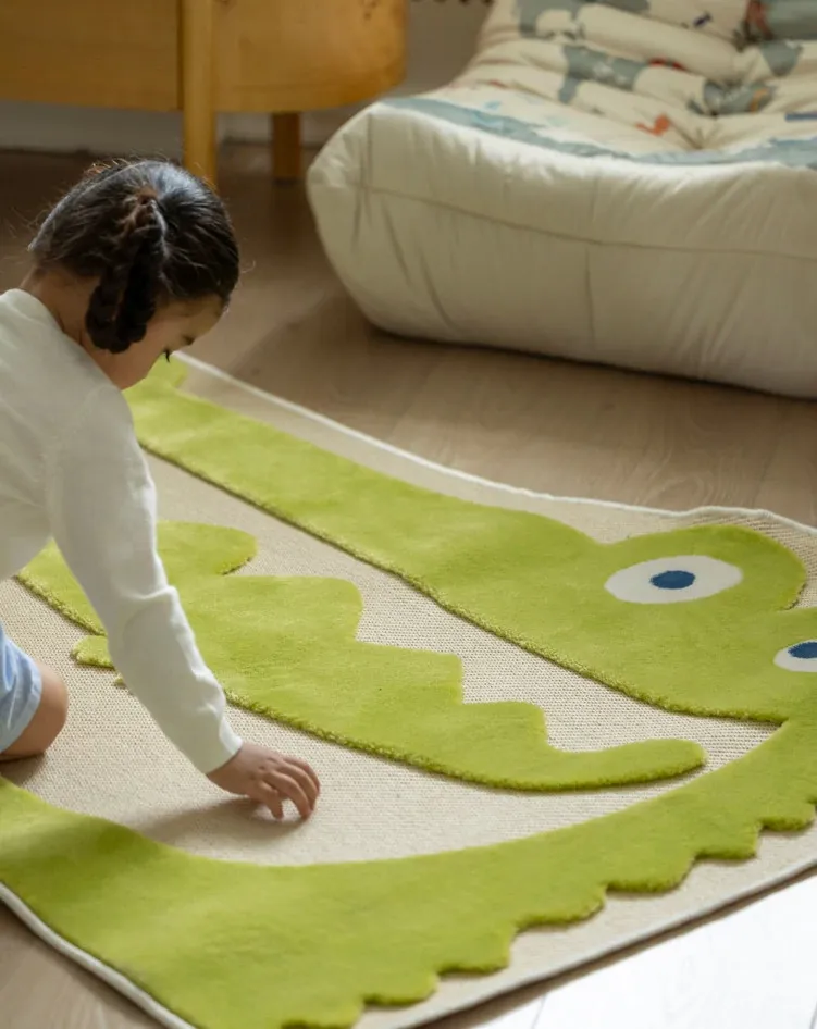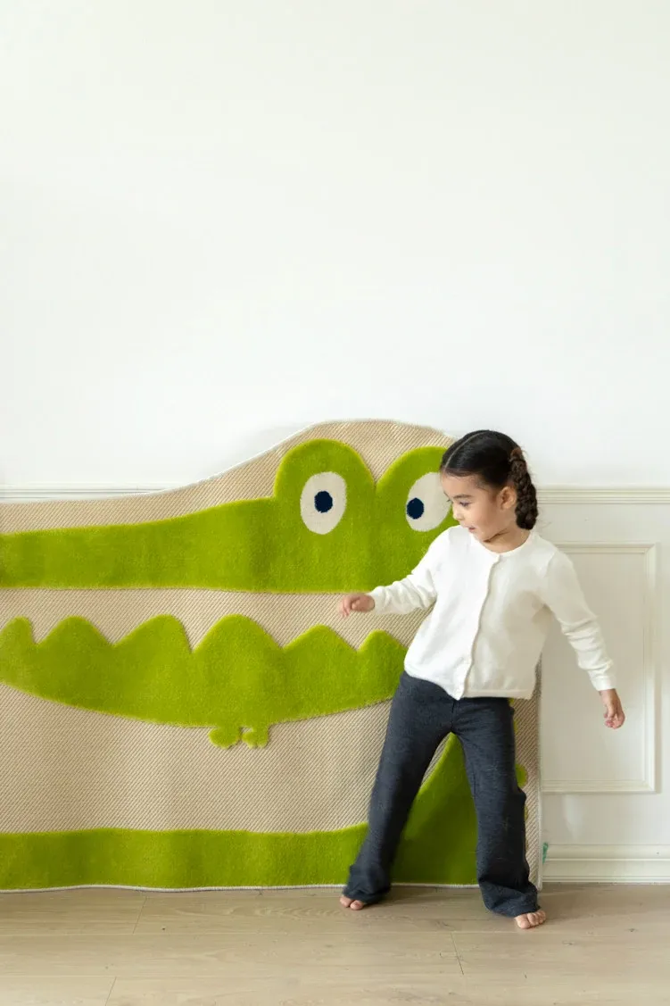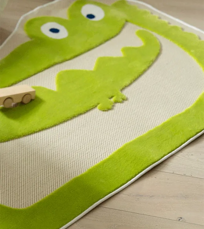 Ronaï Kids Washable California Rug for Big Kids! Adventure Awaits with 3D Embossed Little Crocodile Design - Perfect for Creative Play Spaces!