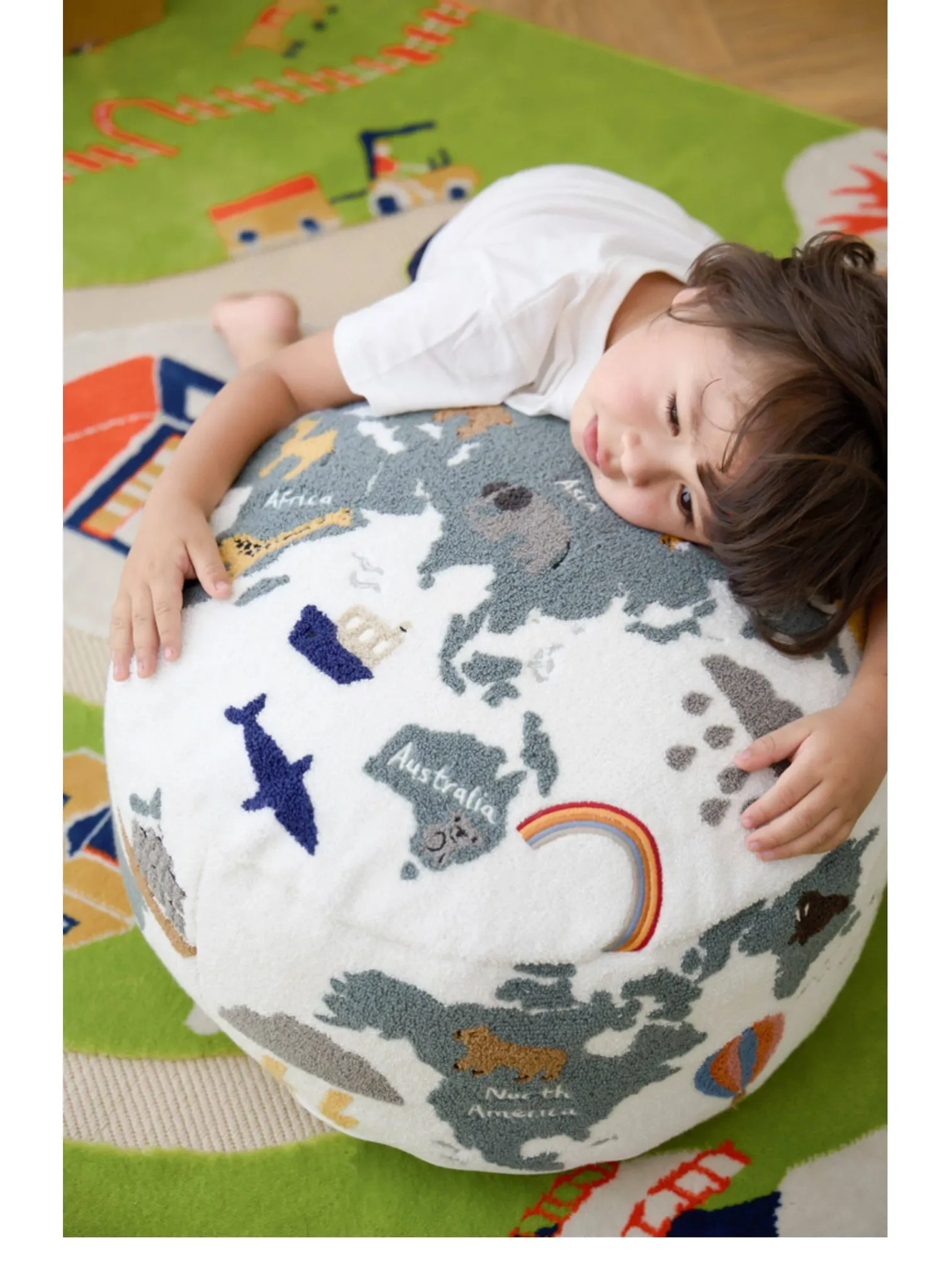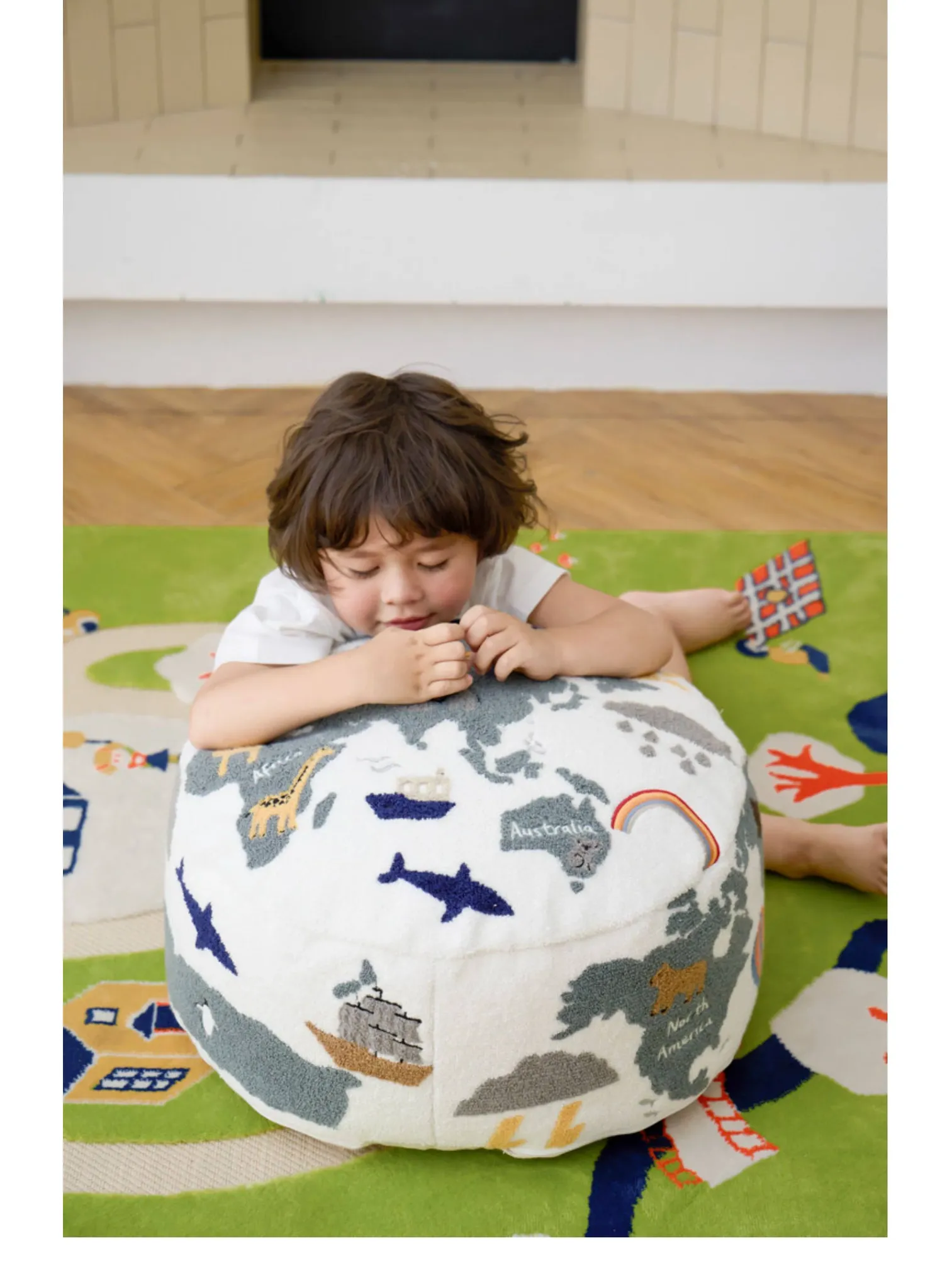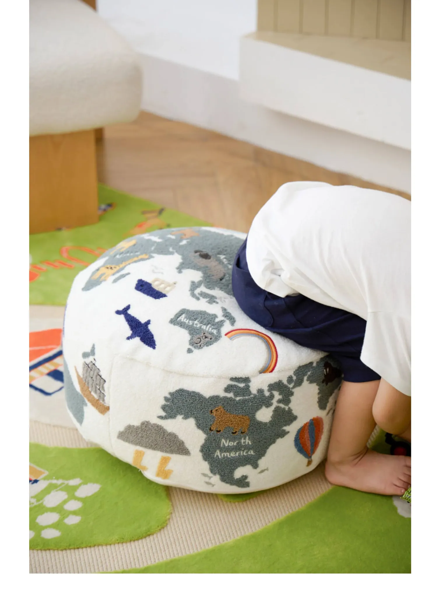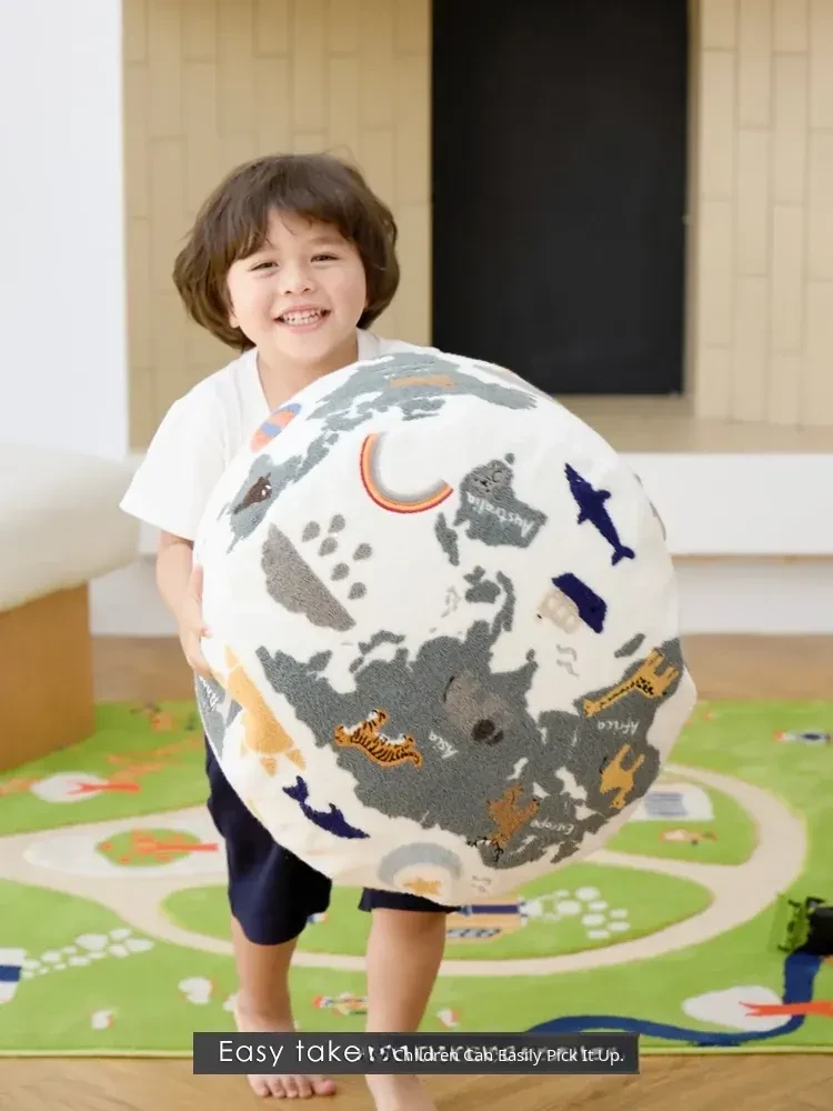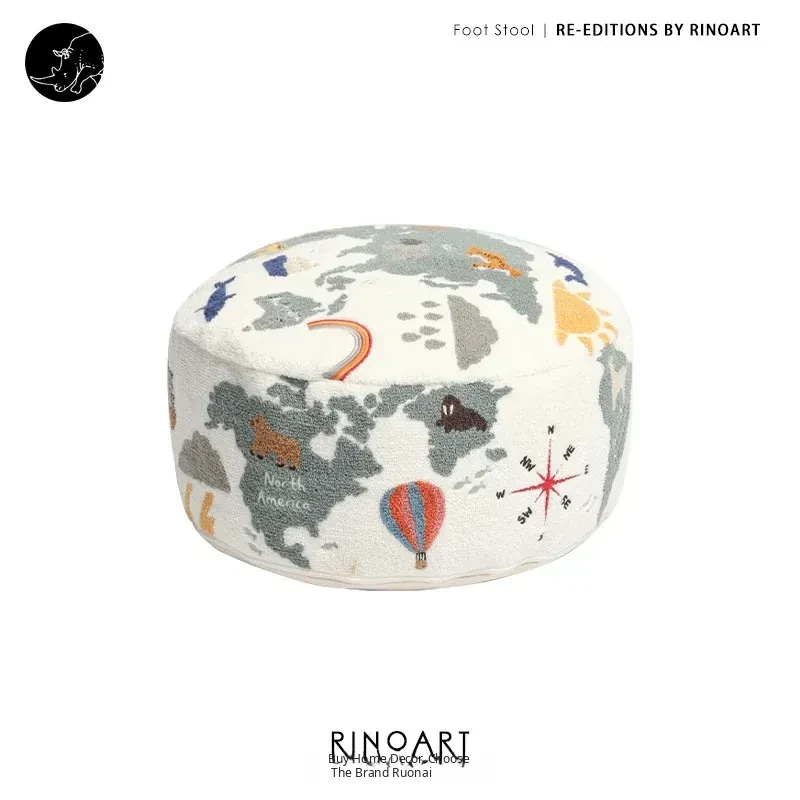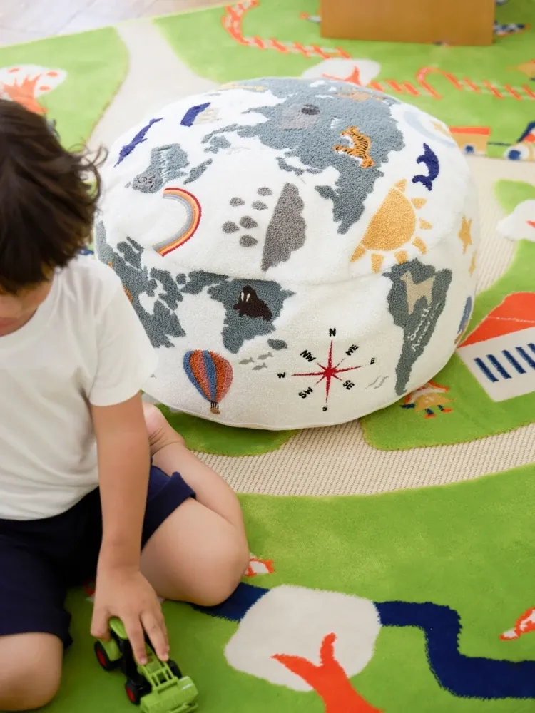 Rona KIDS "World Tour" 3D Embroidered Children's Floor Cushion - Removable and Washable Ottoman for Living Room, Perfect for Big Kids!