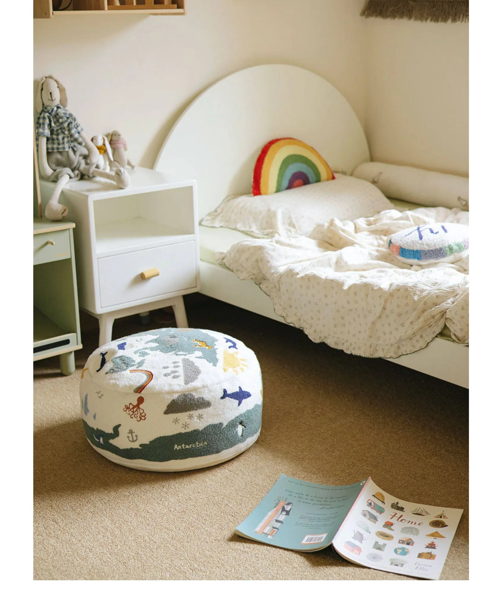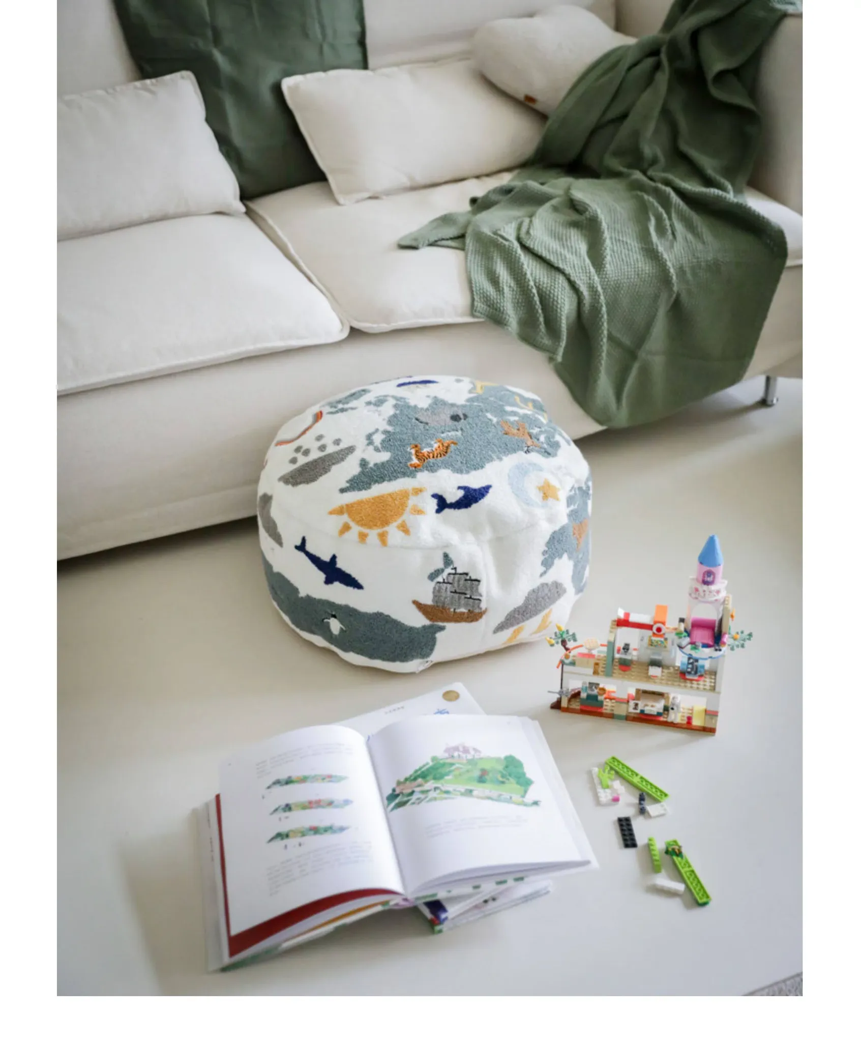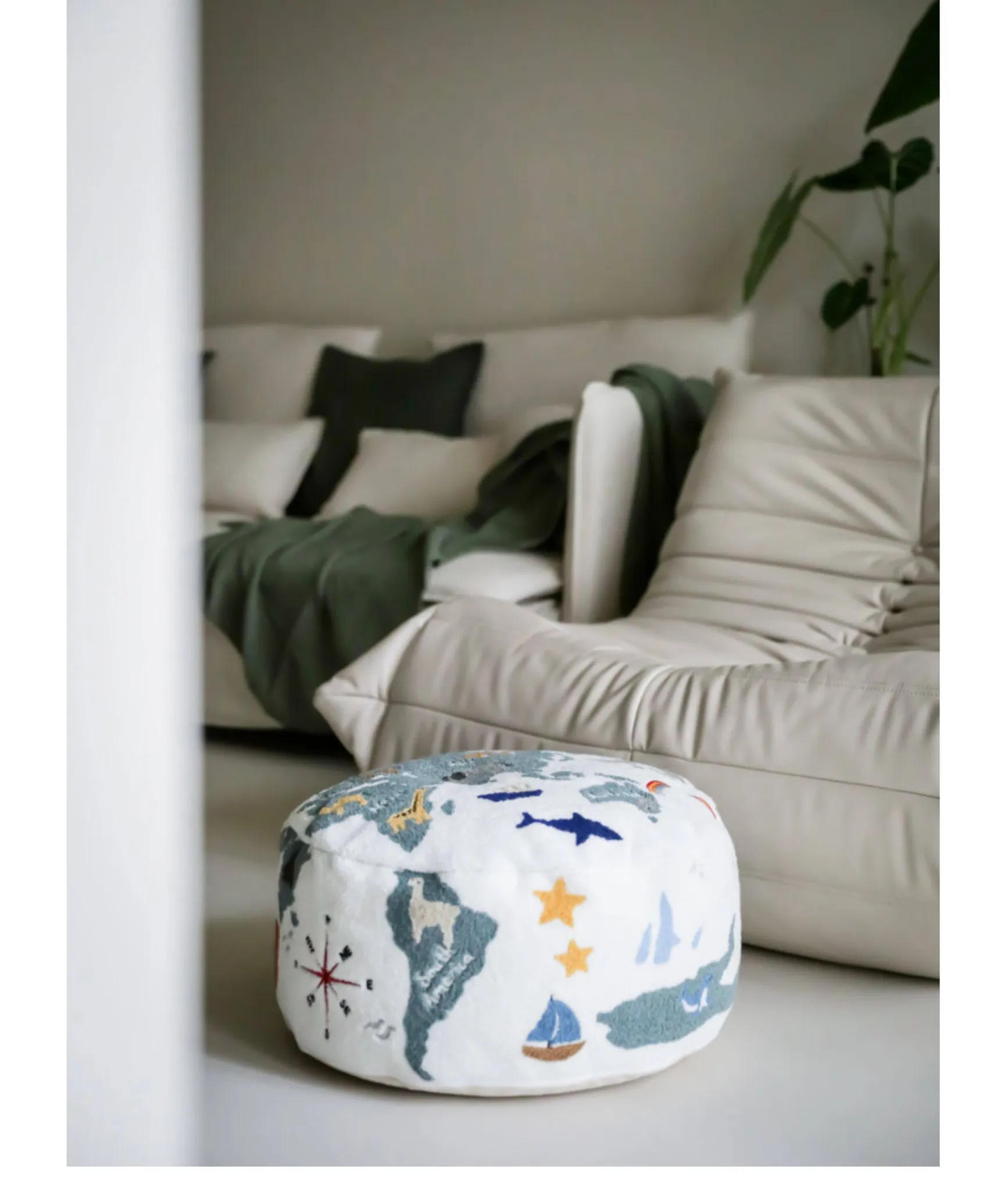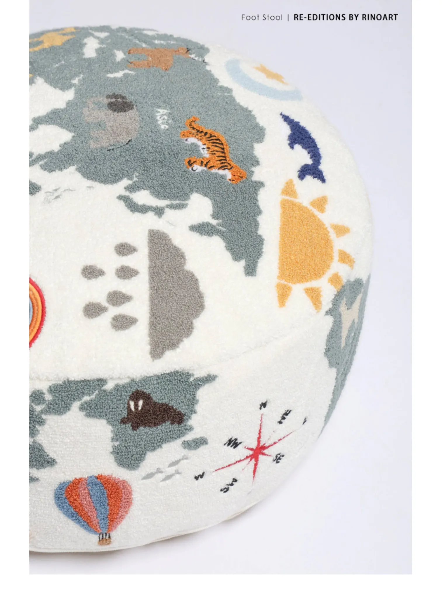 Rona KIDS "World Tour" 3D Embroidered Children's Floor Cushion - Removable and Washable Ottoman for Living Room, Perfect for Big Kids!