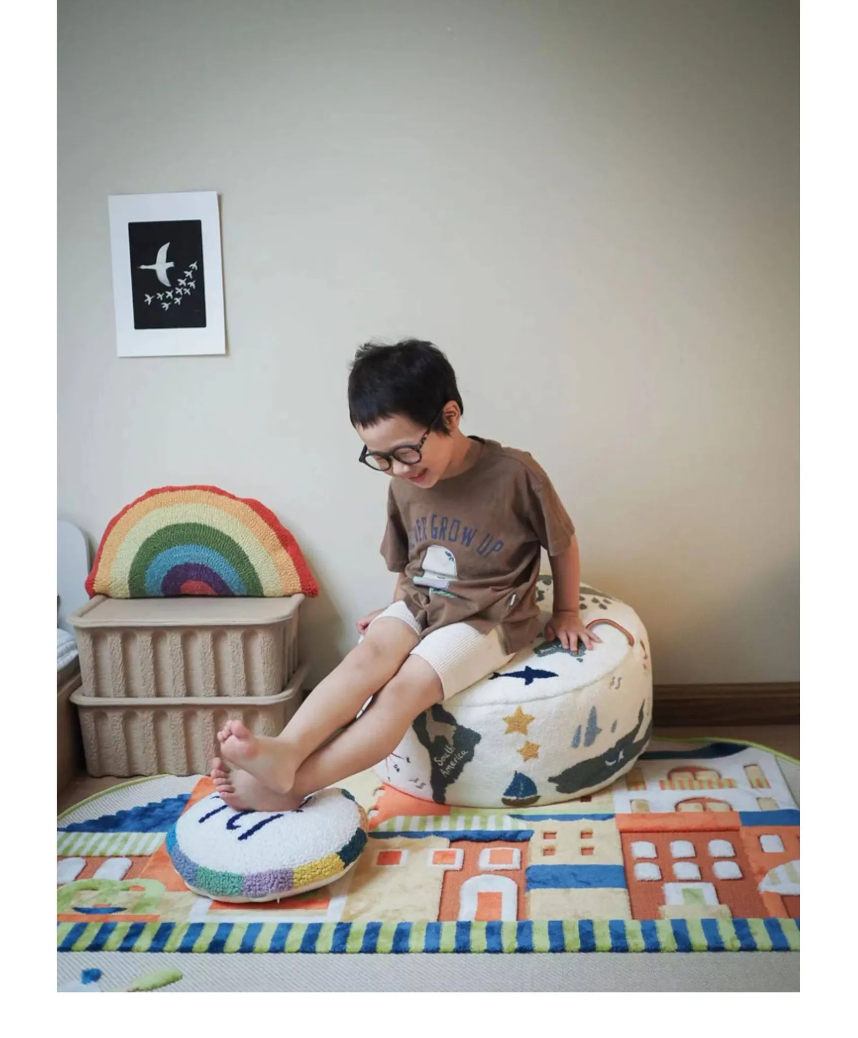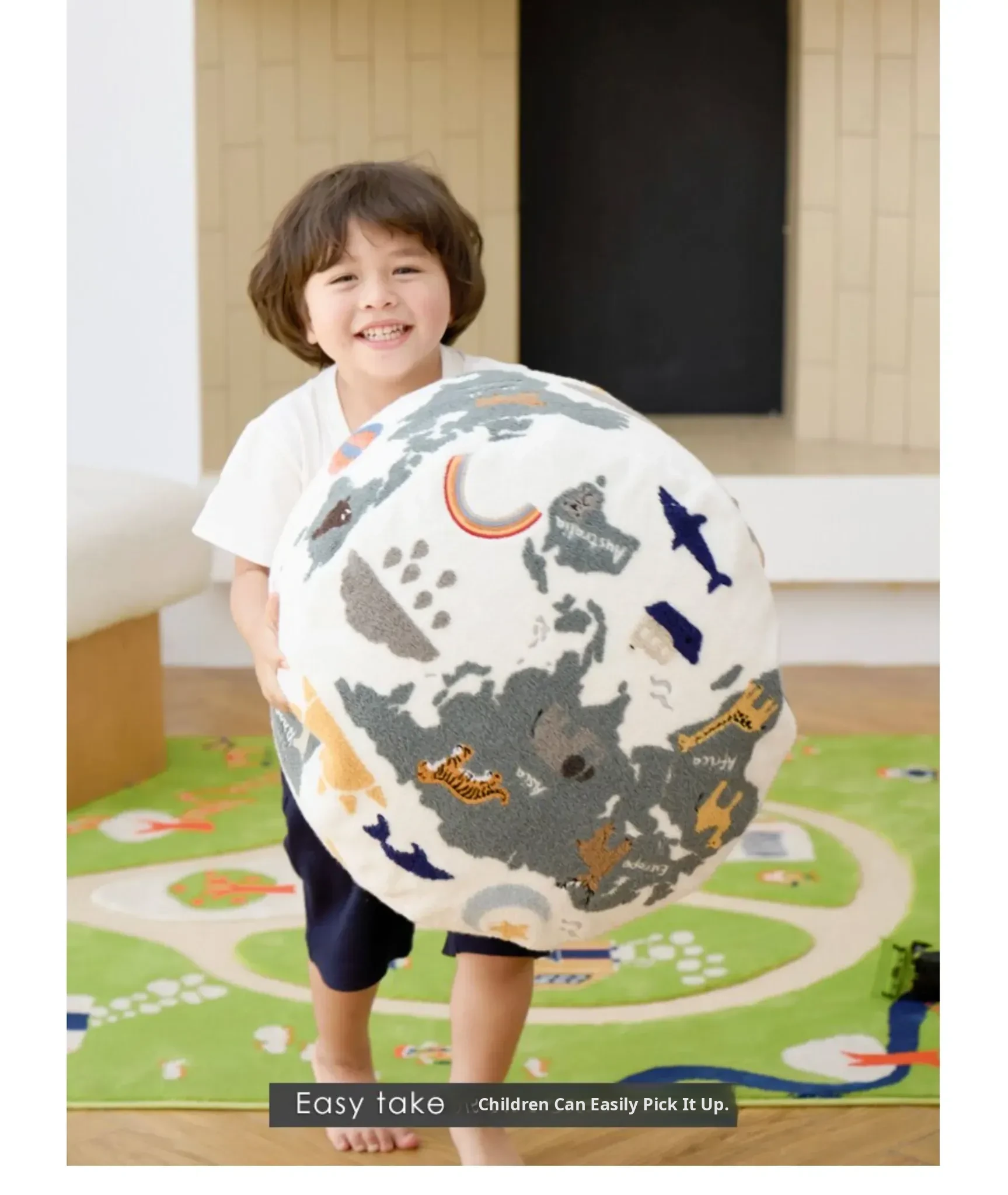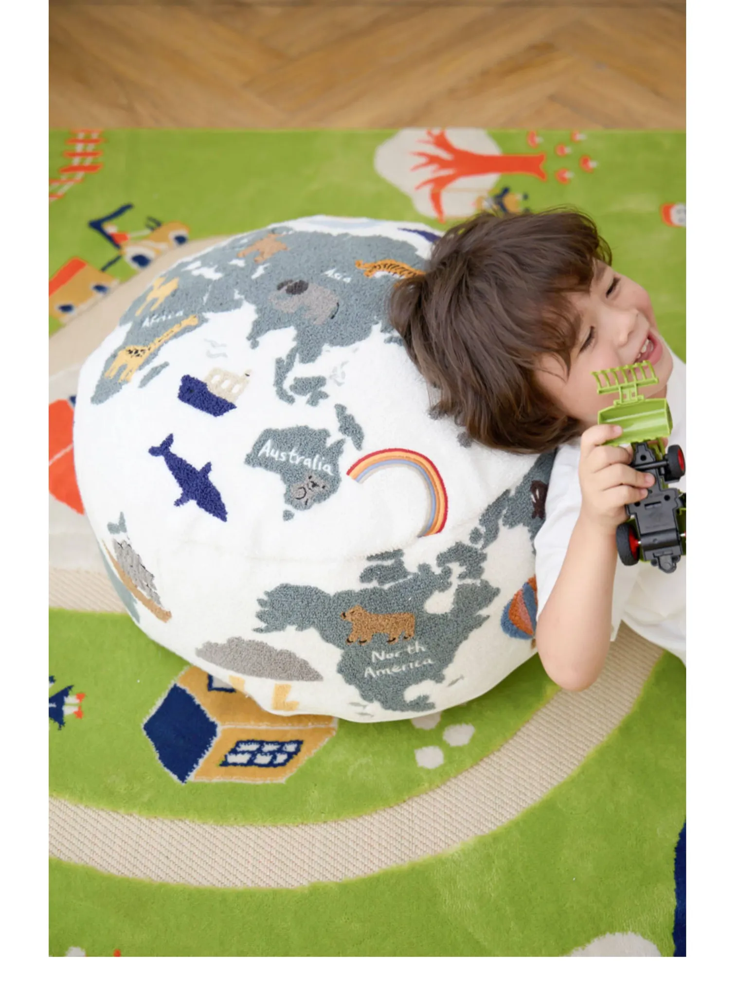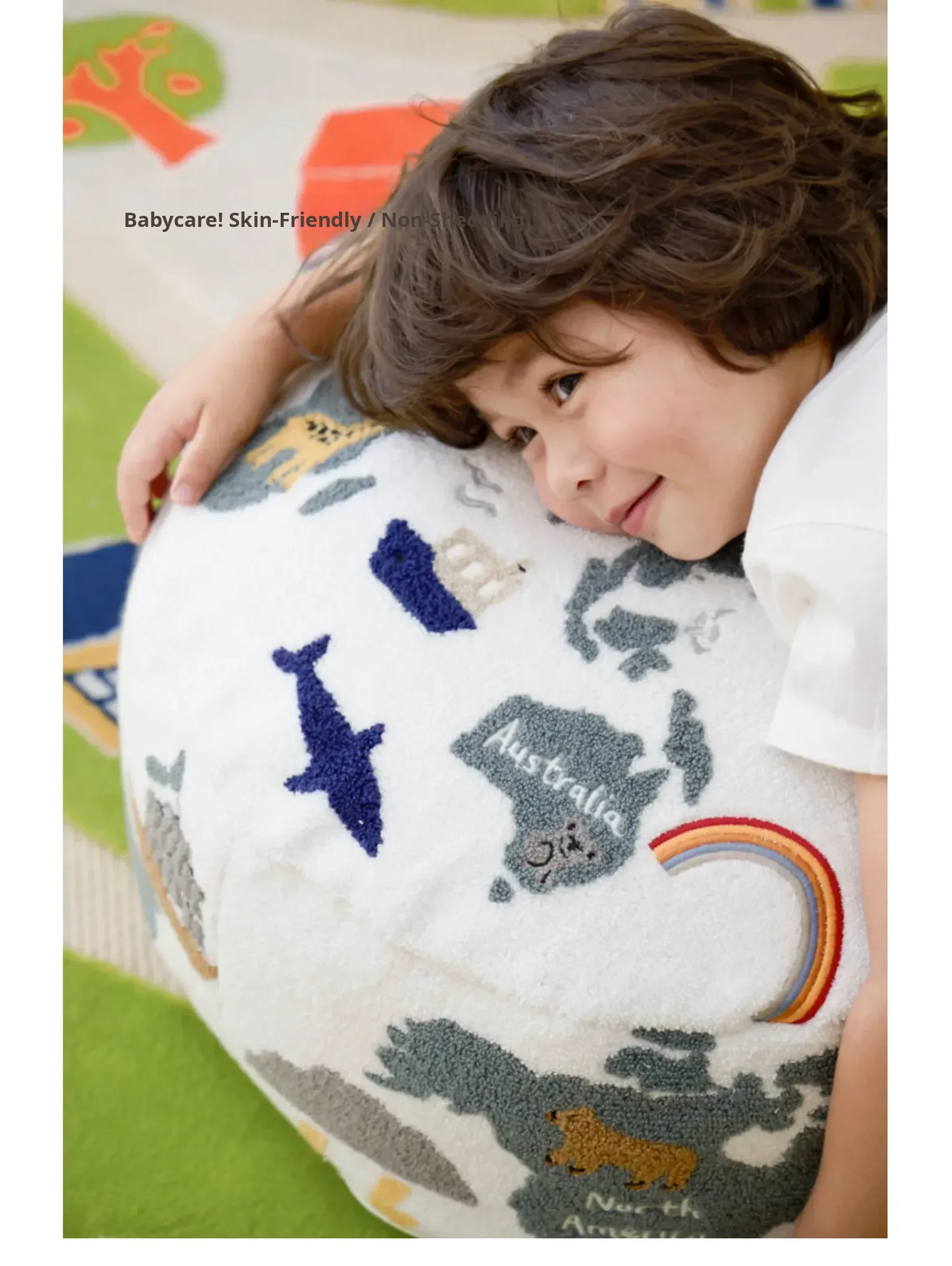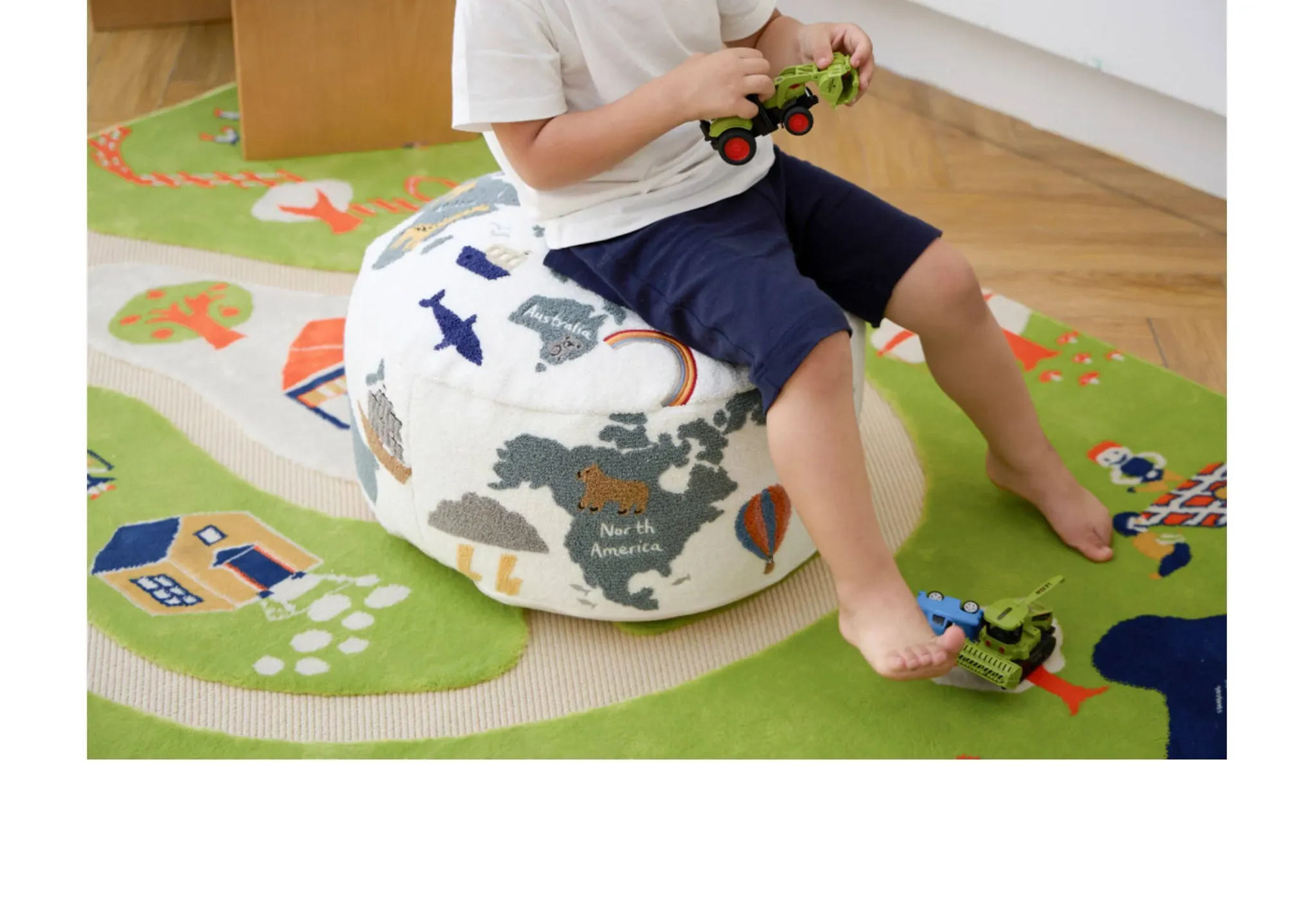 Rona KIDS "World Tour" 3D Embroidered Children's Floor Cushion - Removable and Washable Ottoman for Living Room, Perfect for Big Kids!