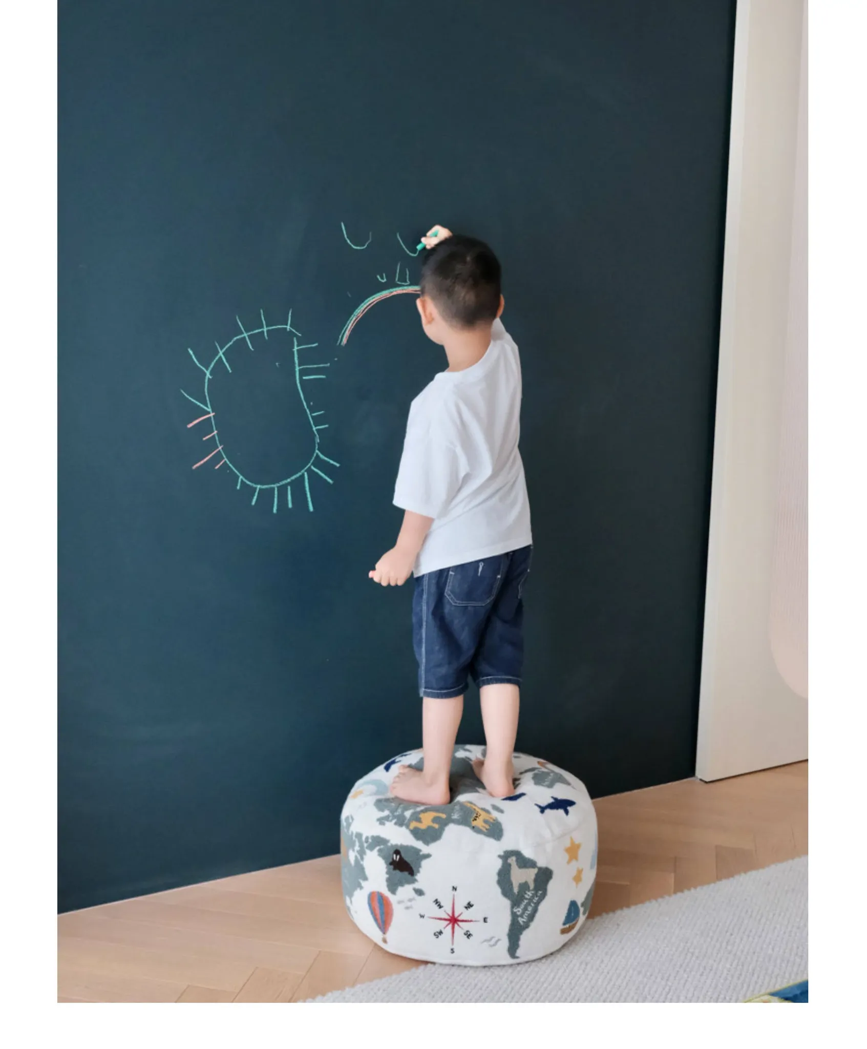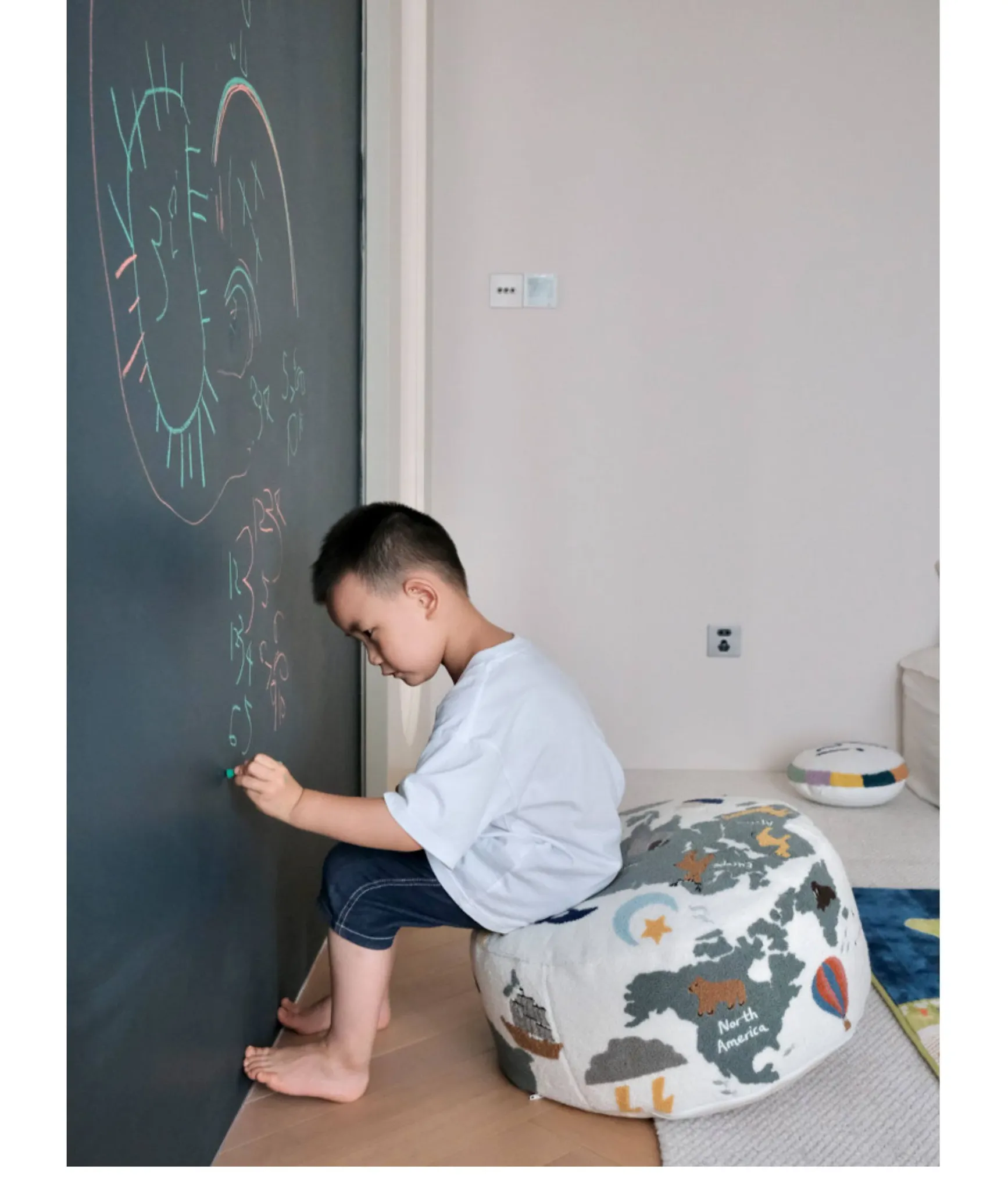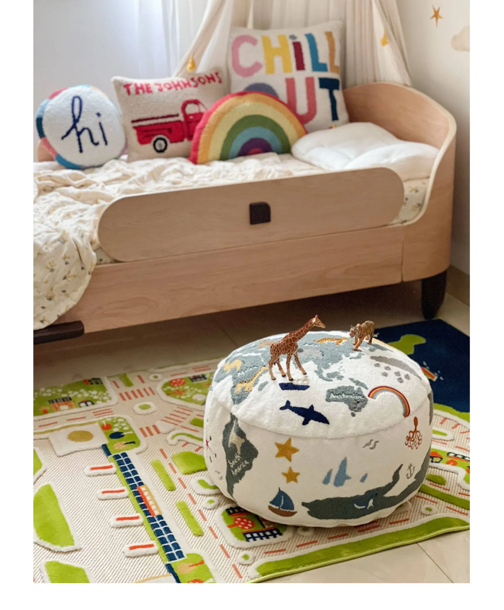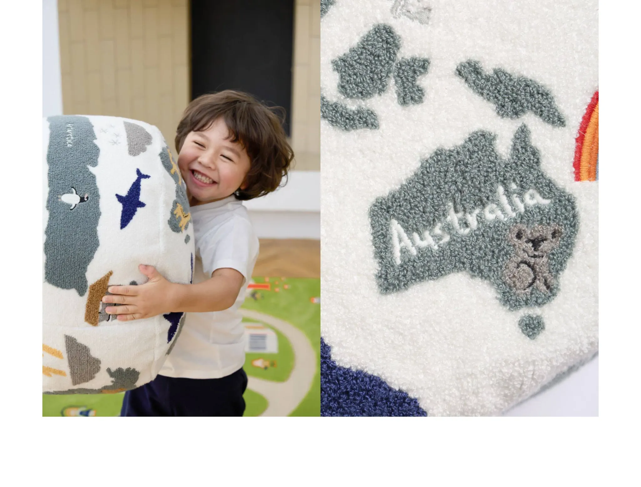Rona KIDS "World Tour" 3D Embroidered Children's Floor Cushion - Removable and Washable Ottoman for Living Room, Perfect for Big Kids!