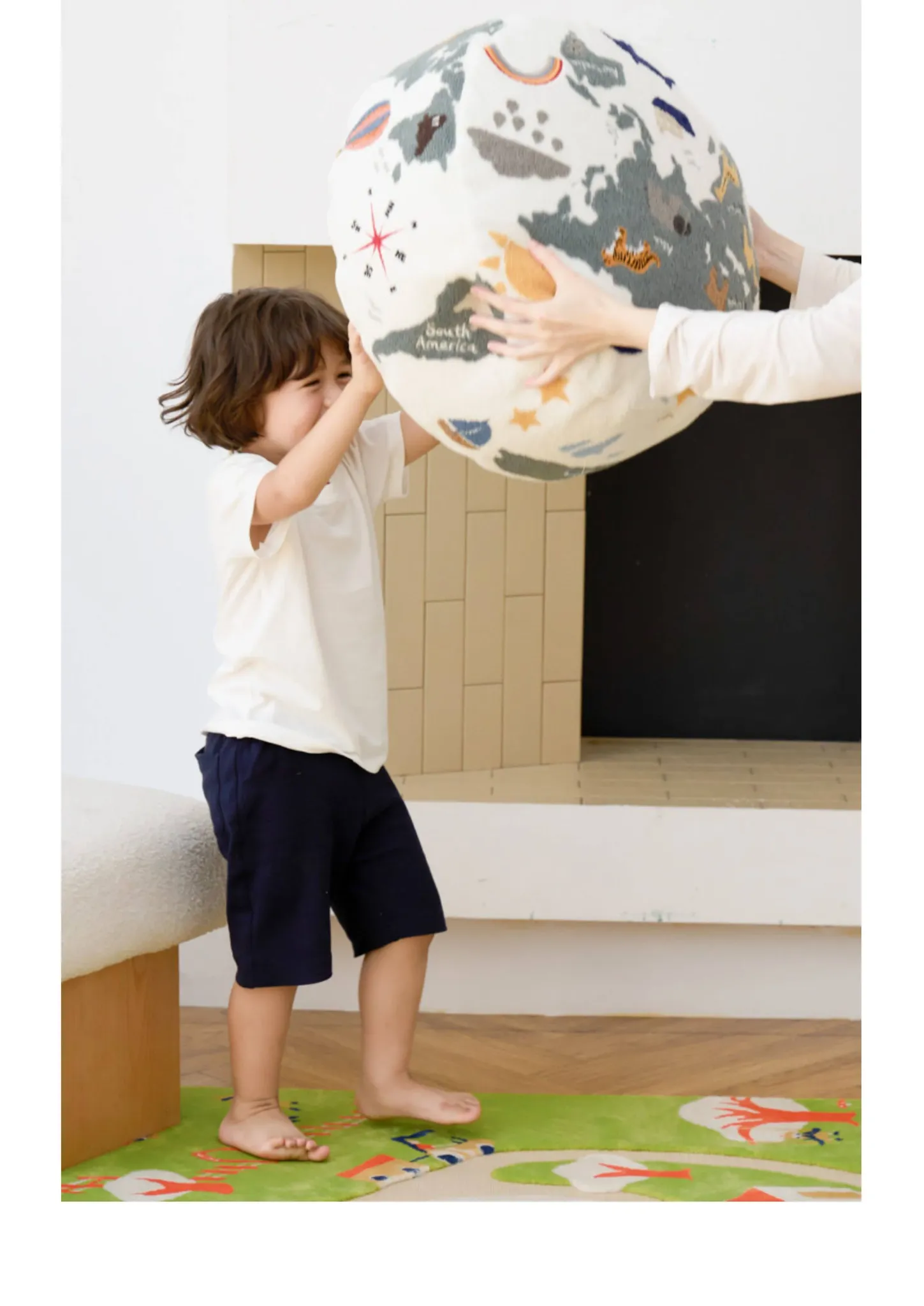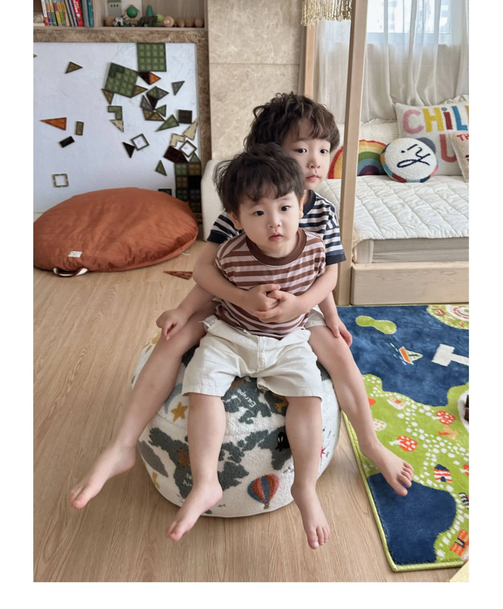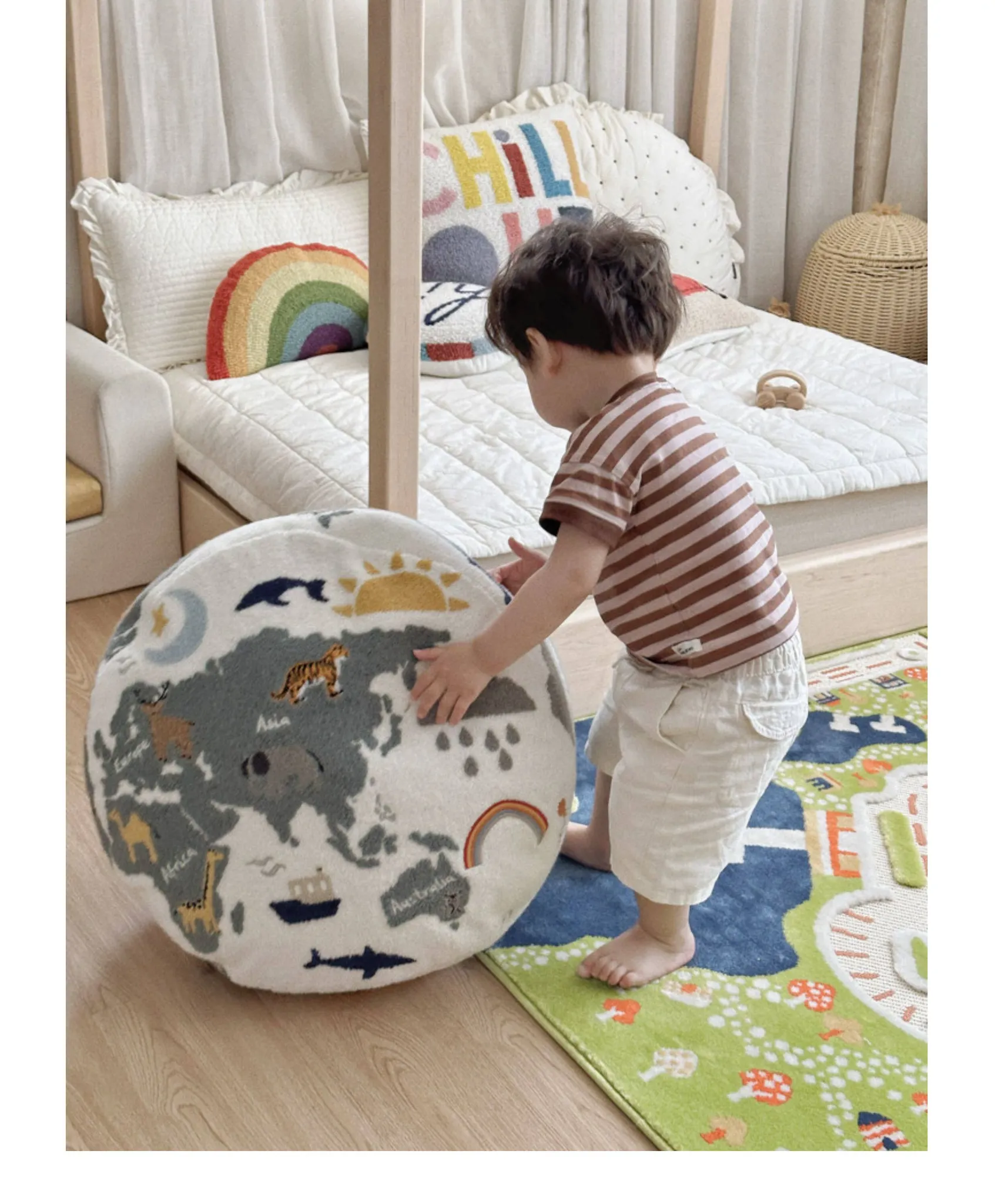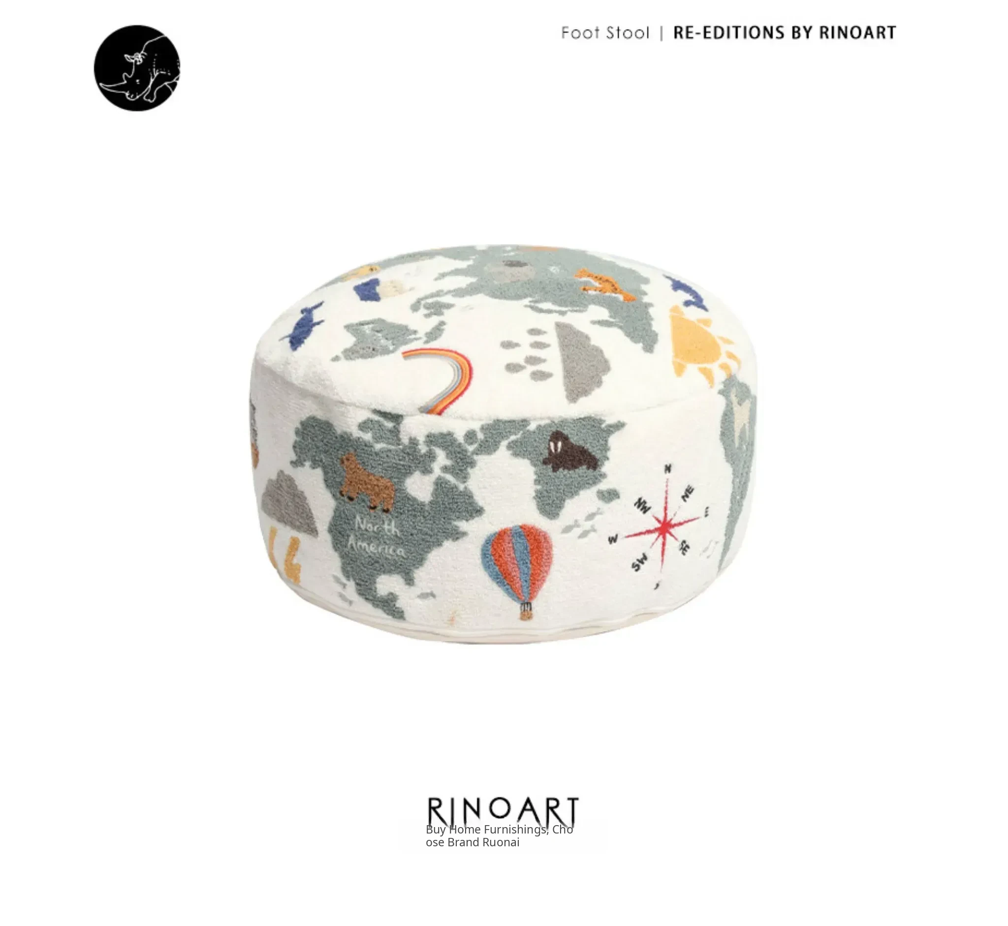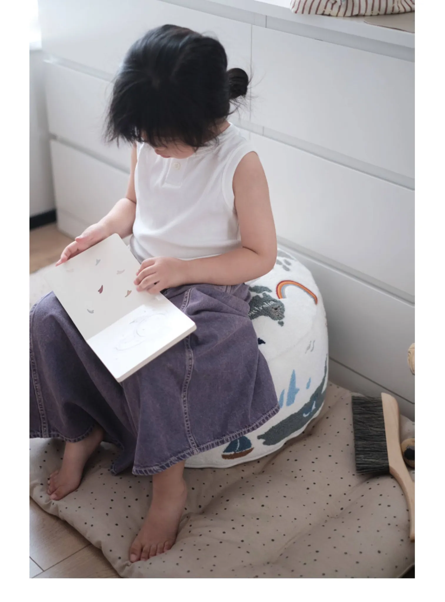 Rona KIDS "World Tour" 3D Embroidered Children's Floor Cushion - Removable and Washable Ottoman for Living Room, Perfect for Big Kids!