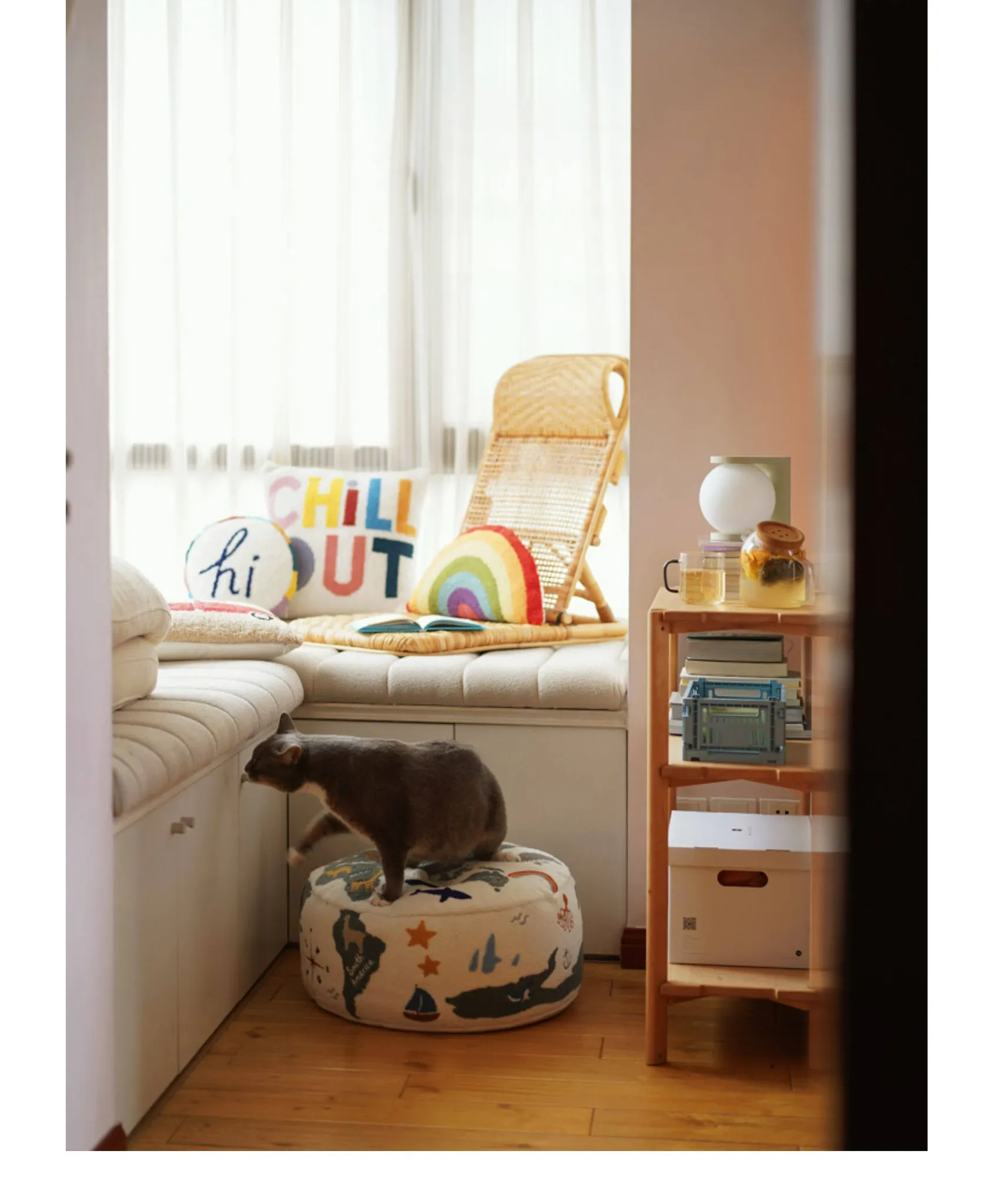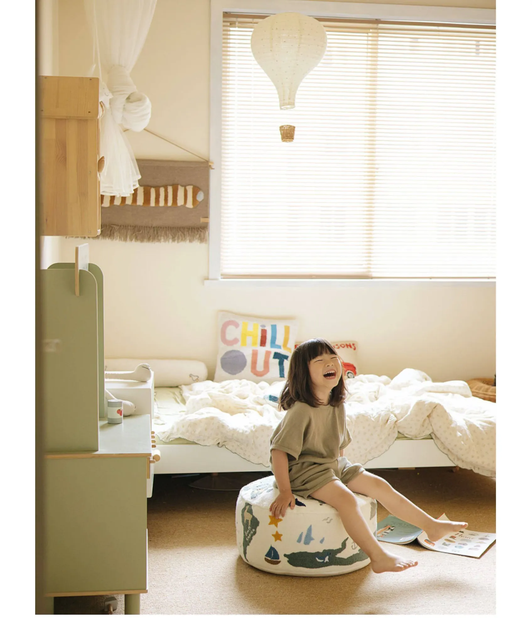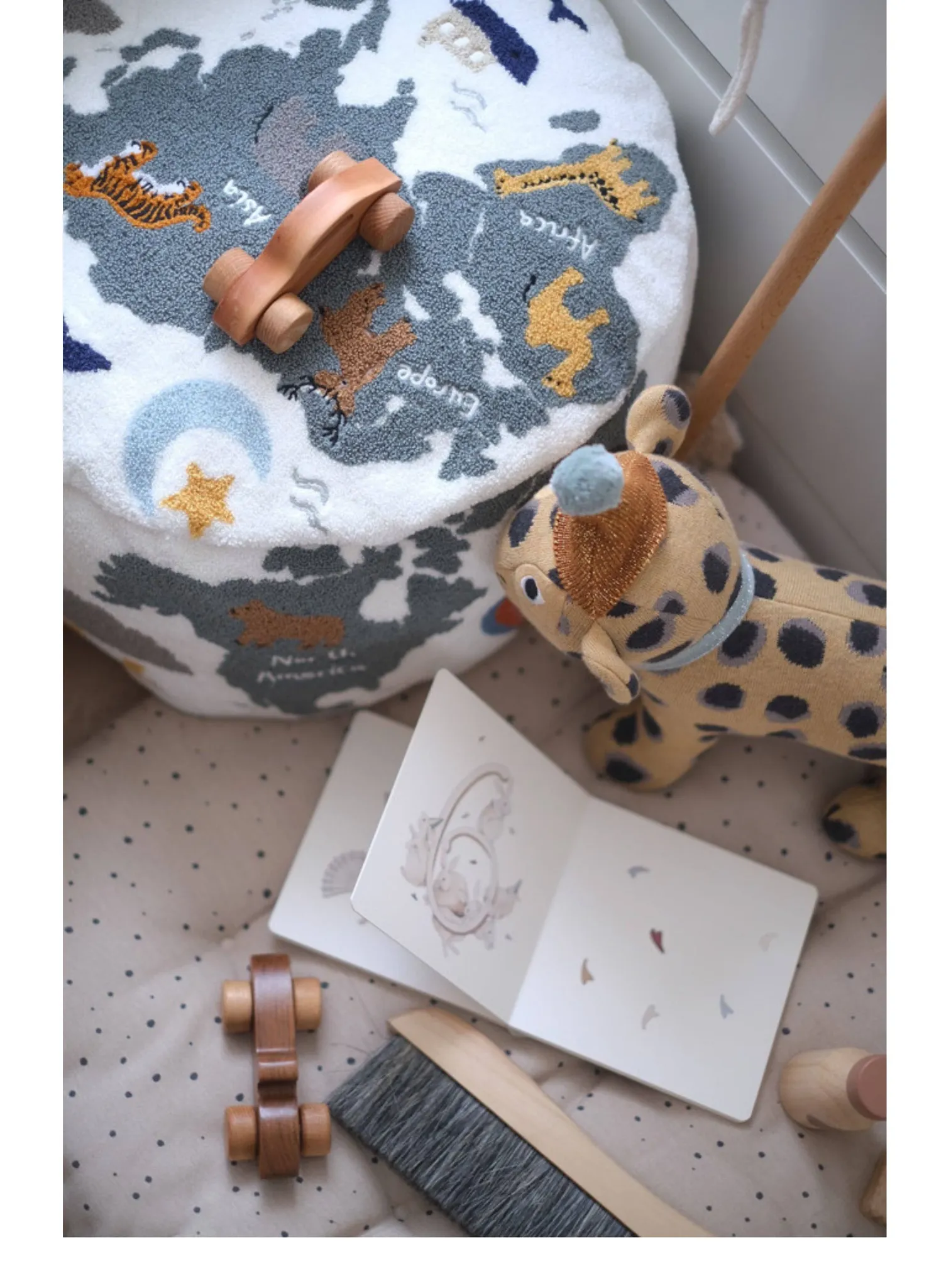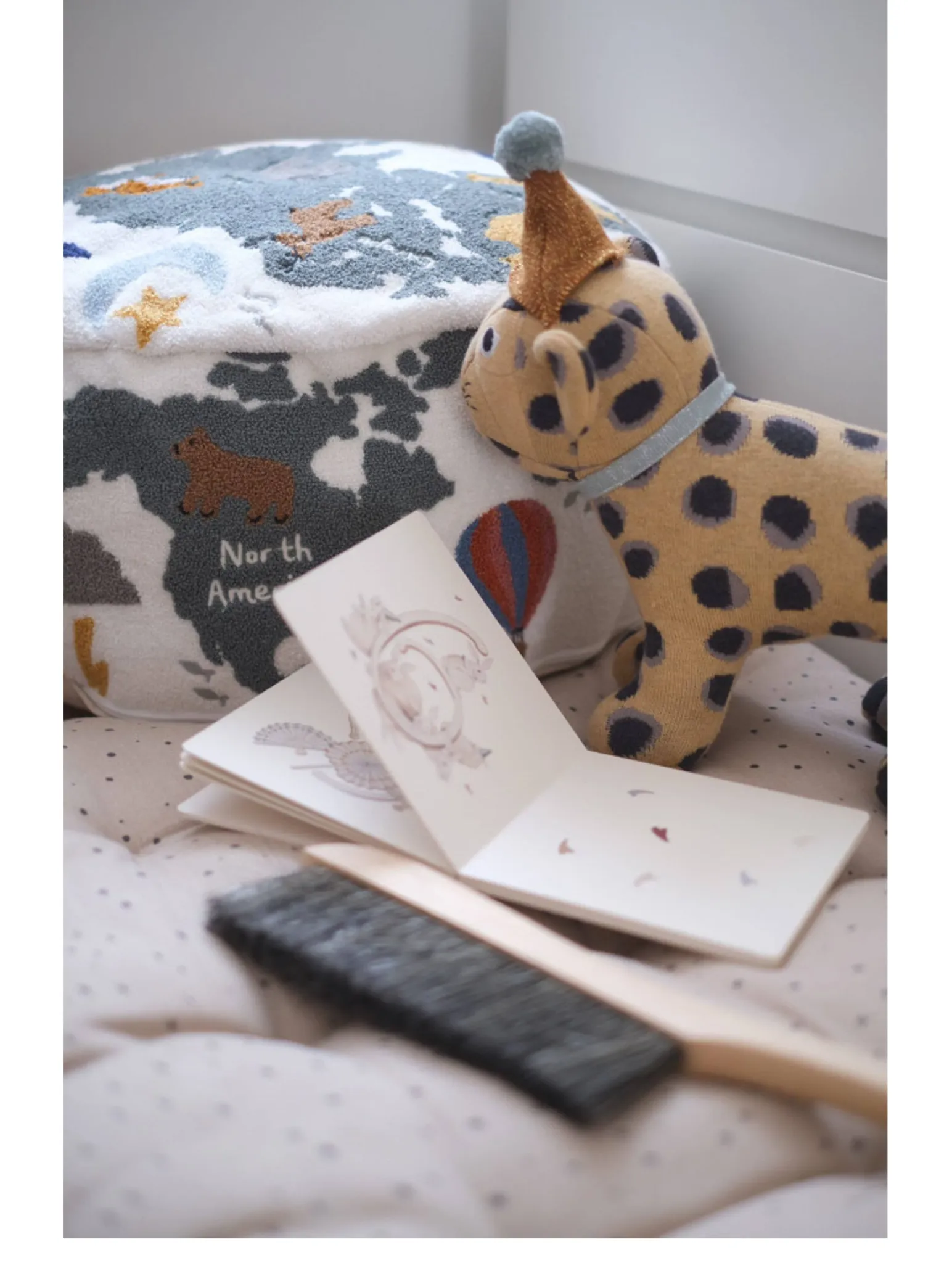 Rona KIDS "World Tour" 3D Embroidered Children's Floor Cushion - Removable and Washable Ottoman for Living Room, Perfect for Big Kids!