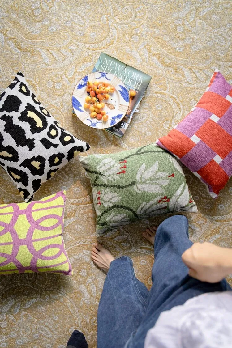 Rona Moroccan Collection: New "Palette" Colors! Luxurious Velvet Feel Cushion with Embroidered Design, Removable and Washable – Perfect for a Timeless Spring Vibe!