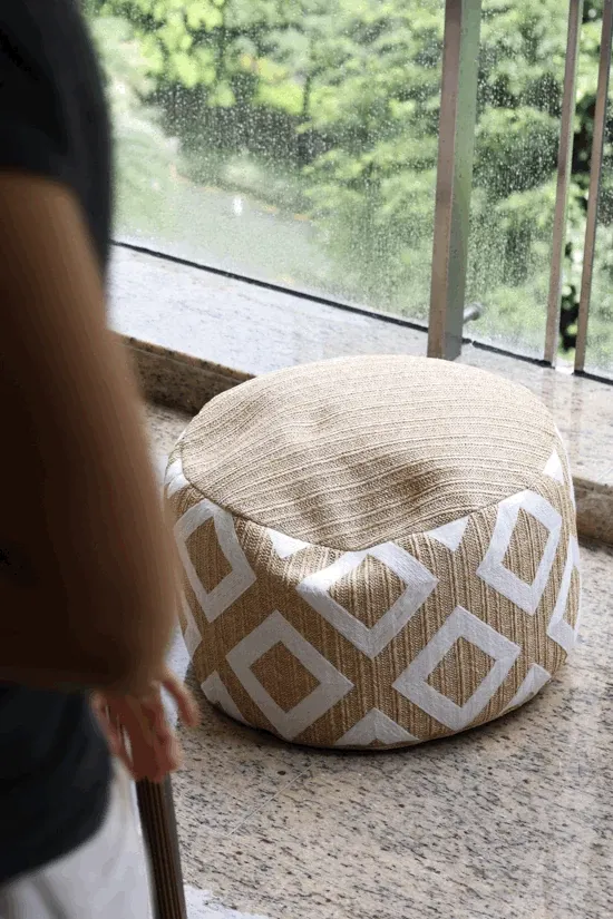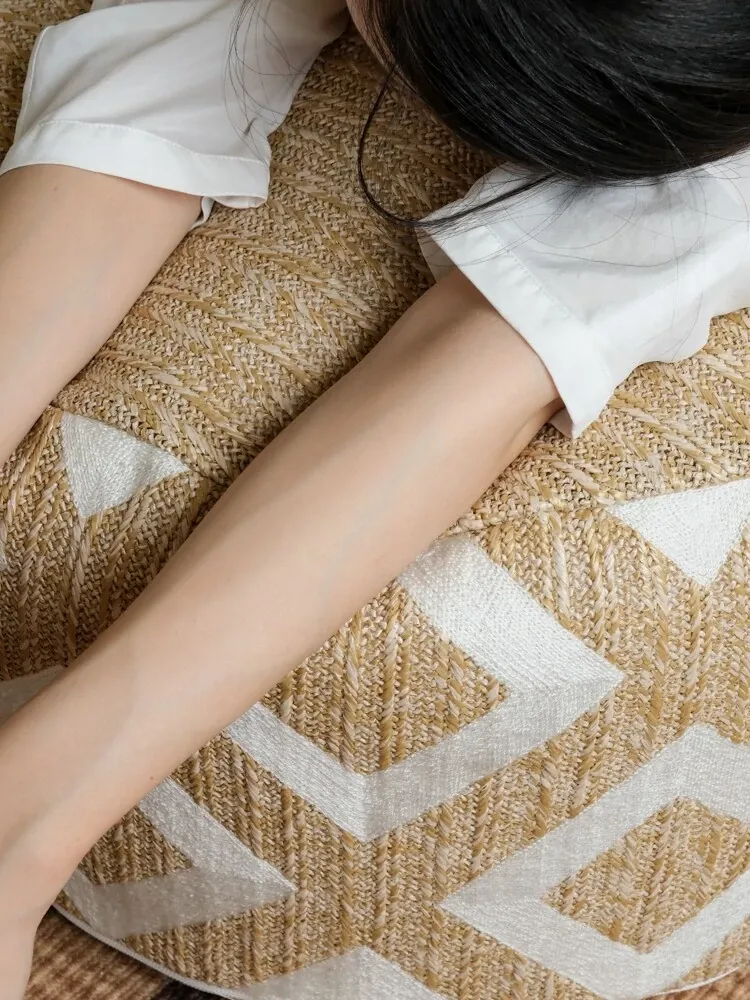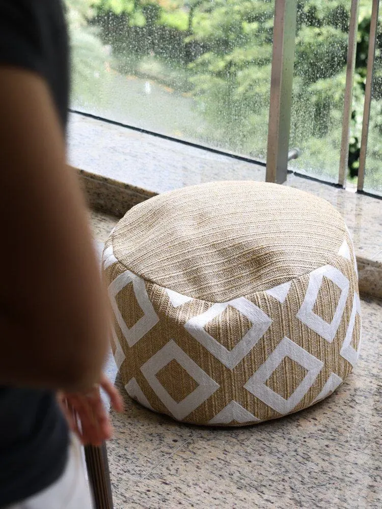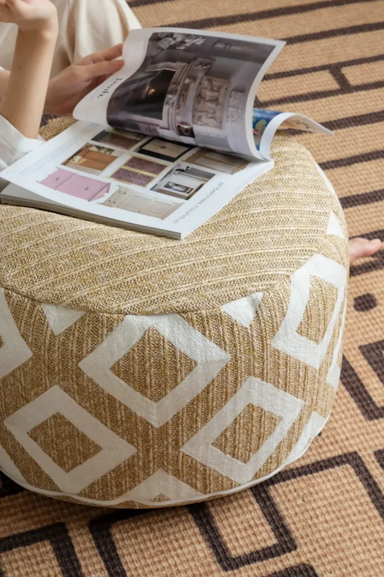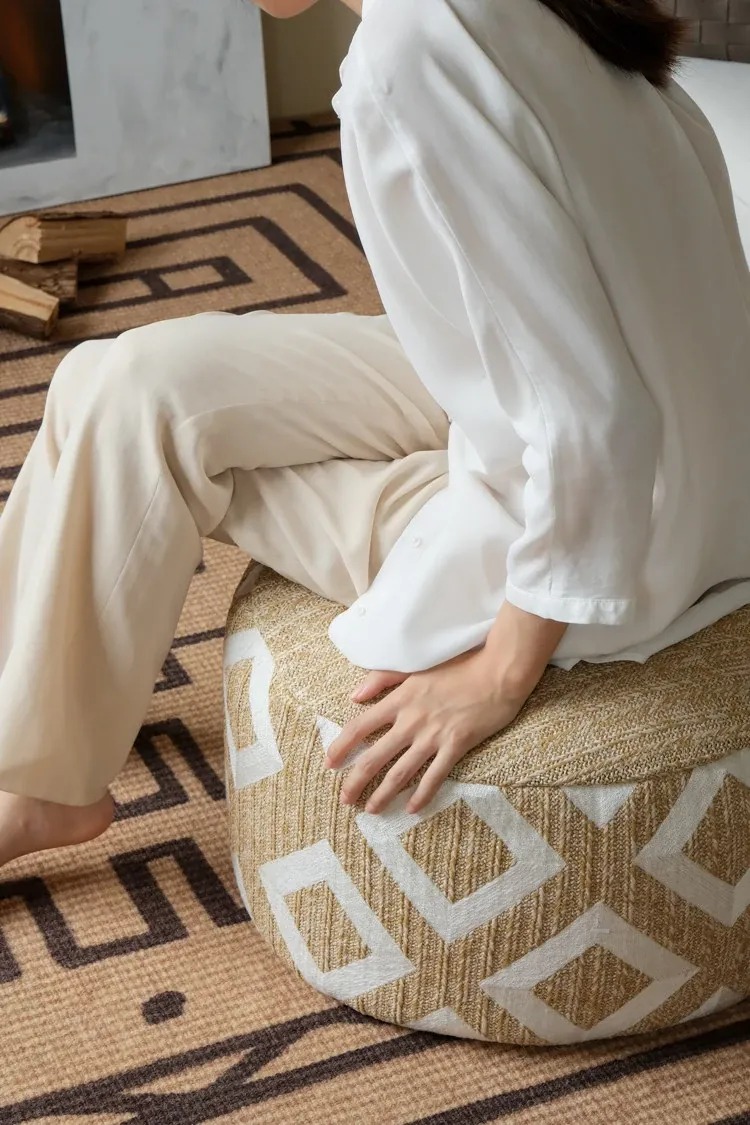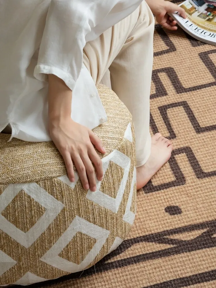 Ronaï Moroccan Series - Removable and Washable Woven Round Pouf Carpet, Perfect for Home, Patio, and Shoe Changing Stool