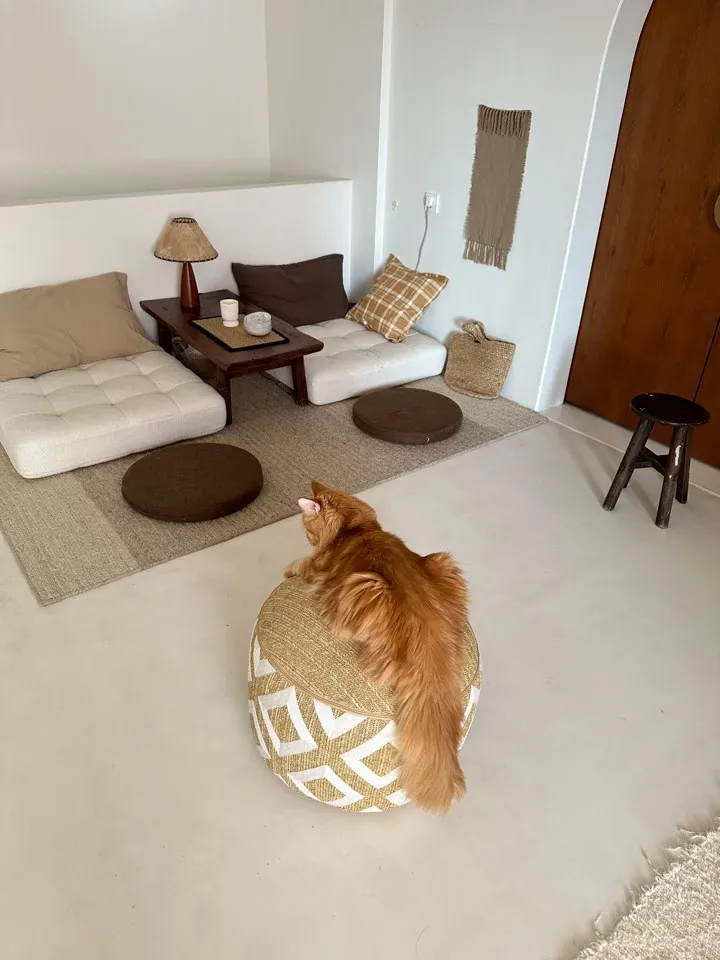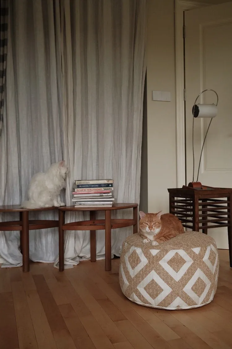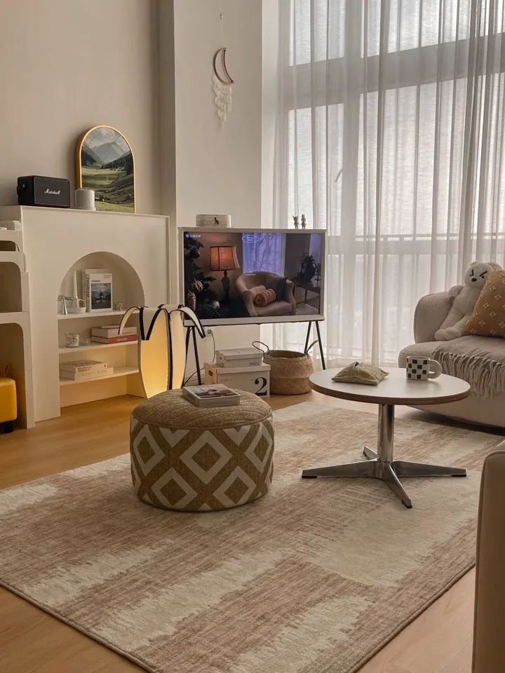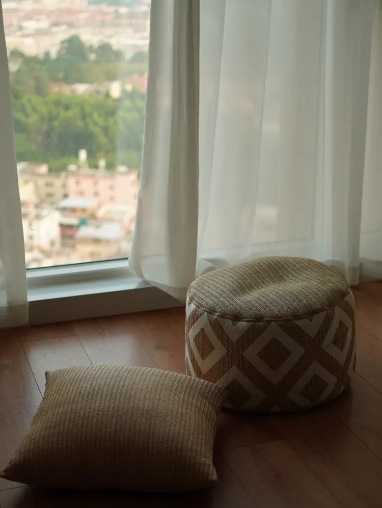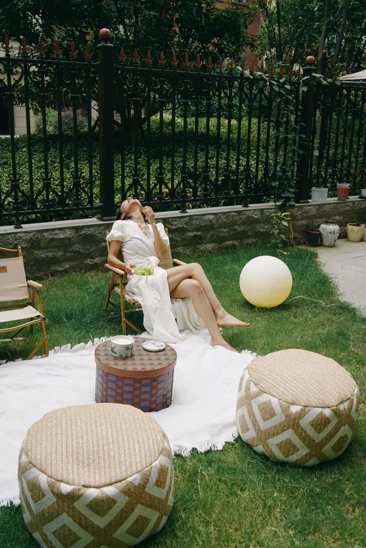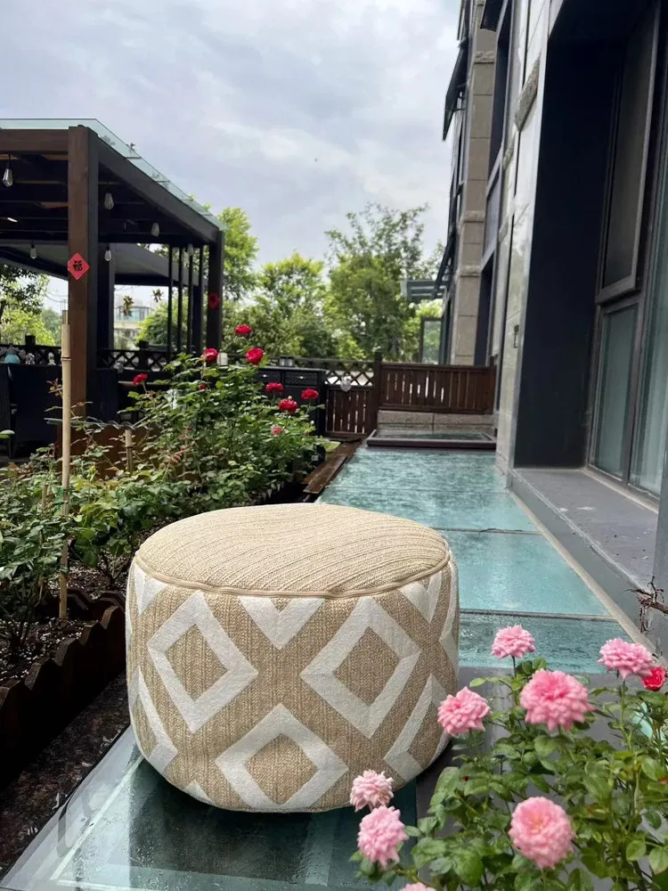 Ronaï Moroccan Series - Removable and Washable Woven Round Pouf Carpet, Perfect for Home, Patio, and Shoe Changing Stool