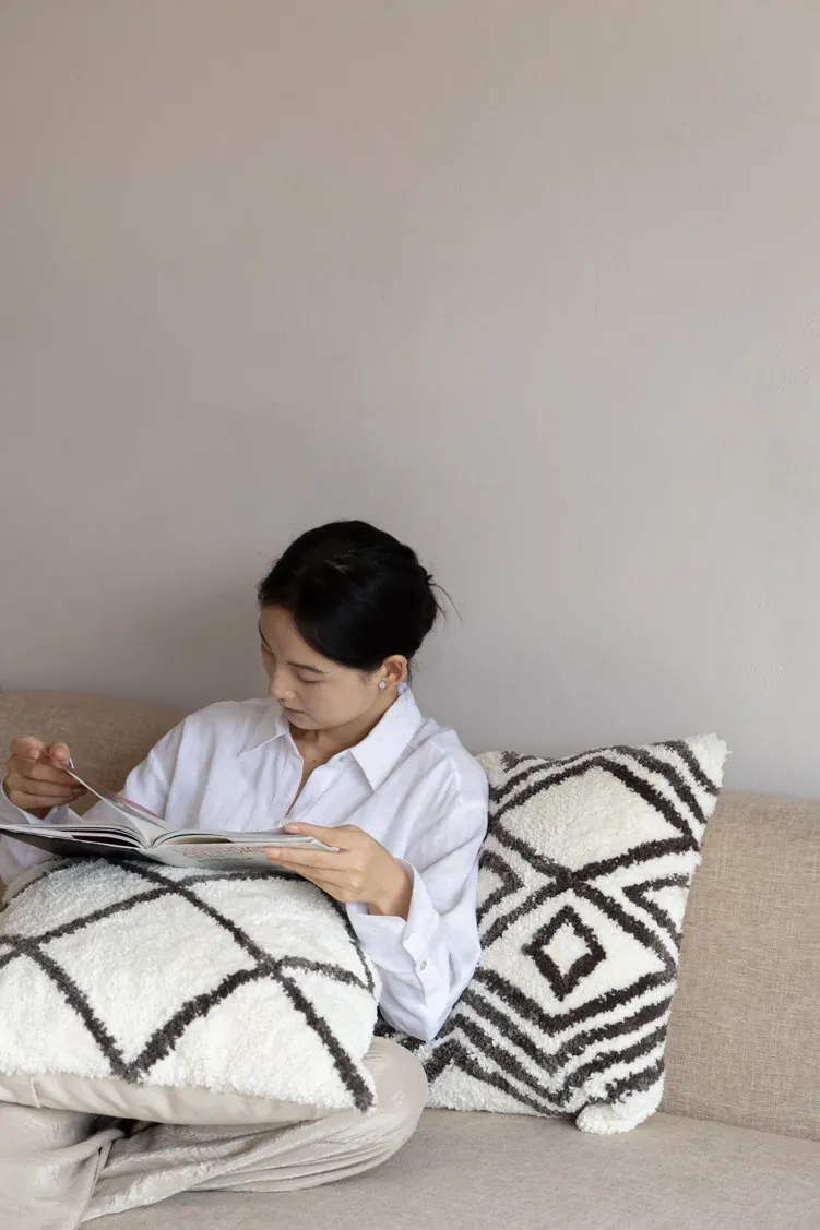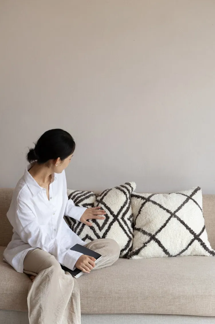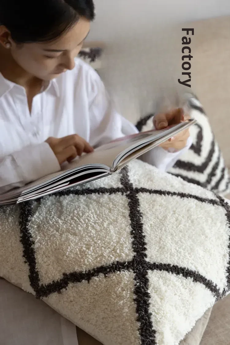 Rona Moroccan-Style Throw Pillow - Luxurious Long Plush Sofa Cushion with Removable Cover and Insert, Easy to Clean, Perfect for Cozy Home Décor