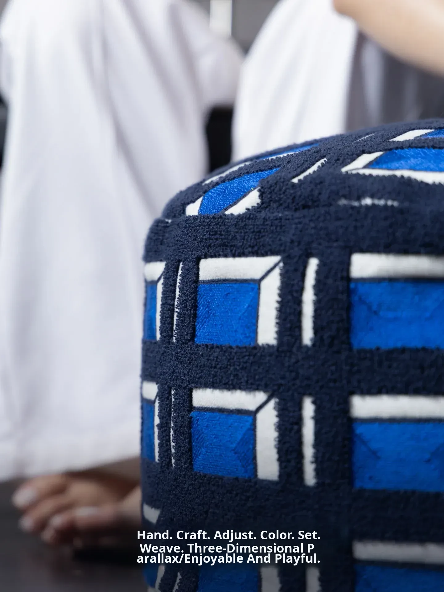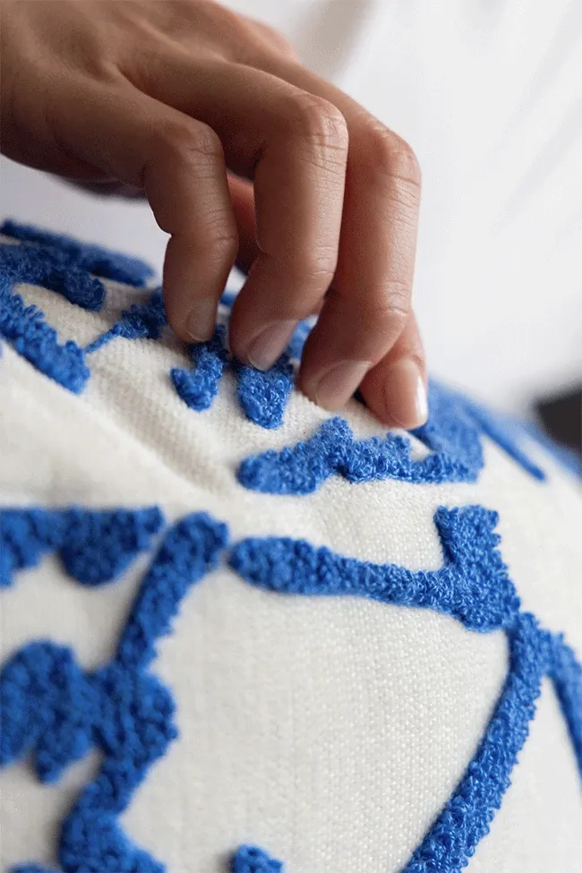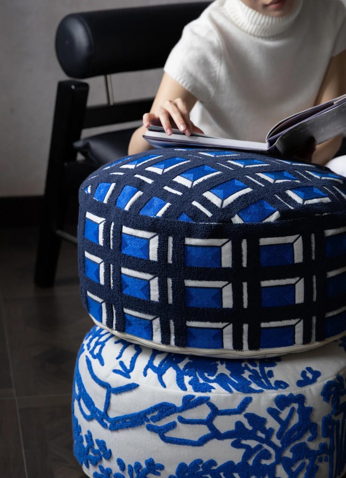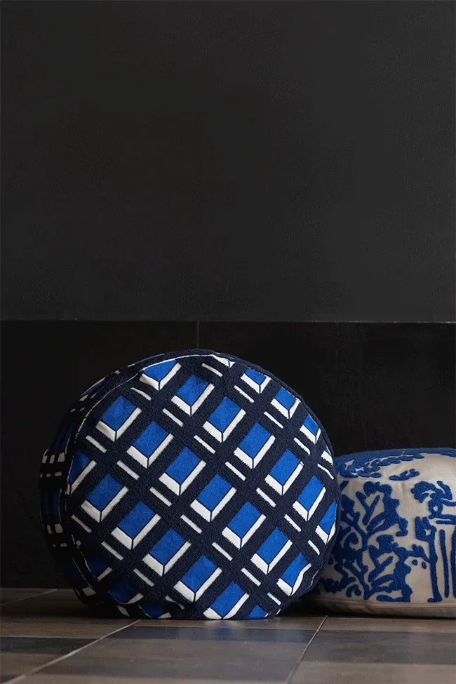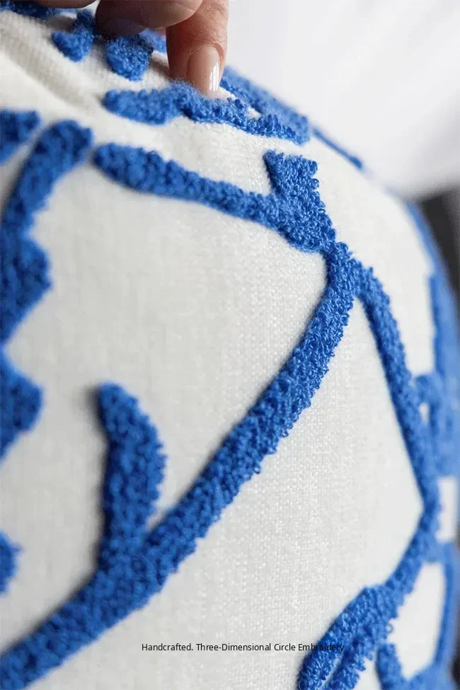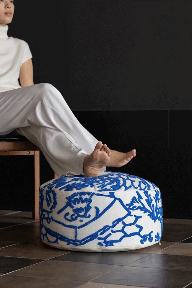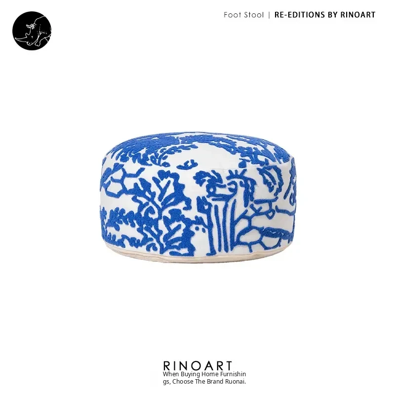 Rona Mystical Manor Series "Blue Enigma" Handmade Embroidered Stool - Removable and Washable 3D Round Ottoman for Stylish Living Spaces