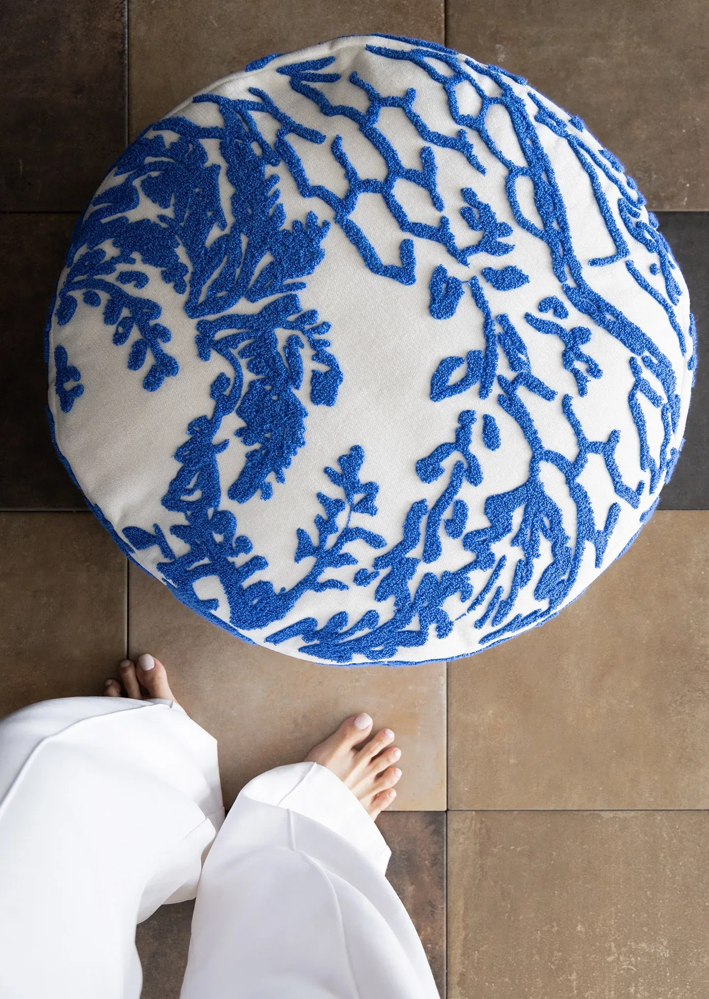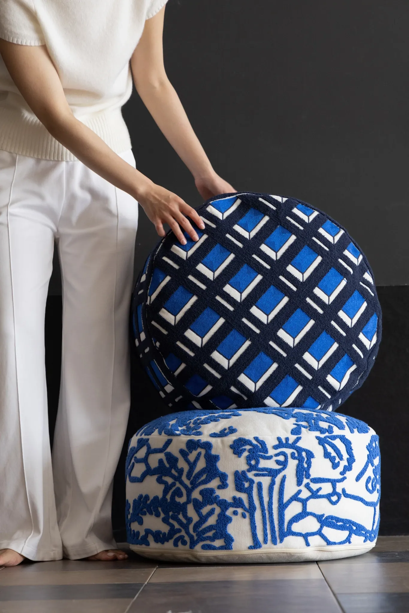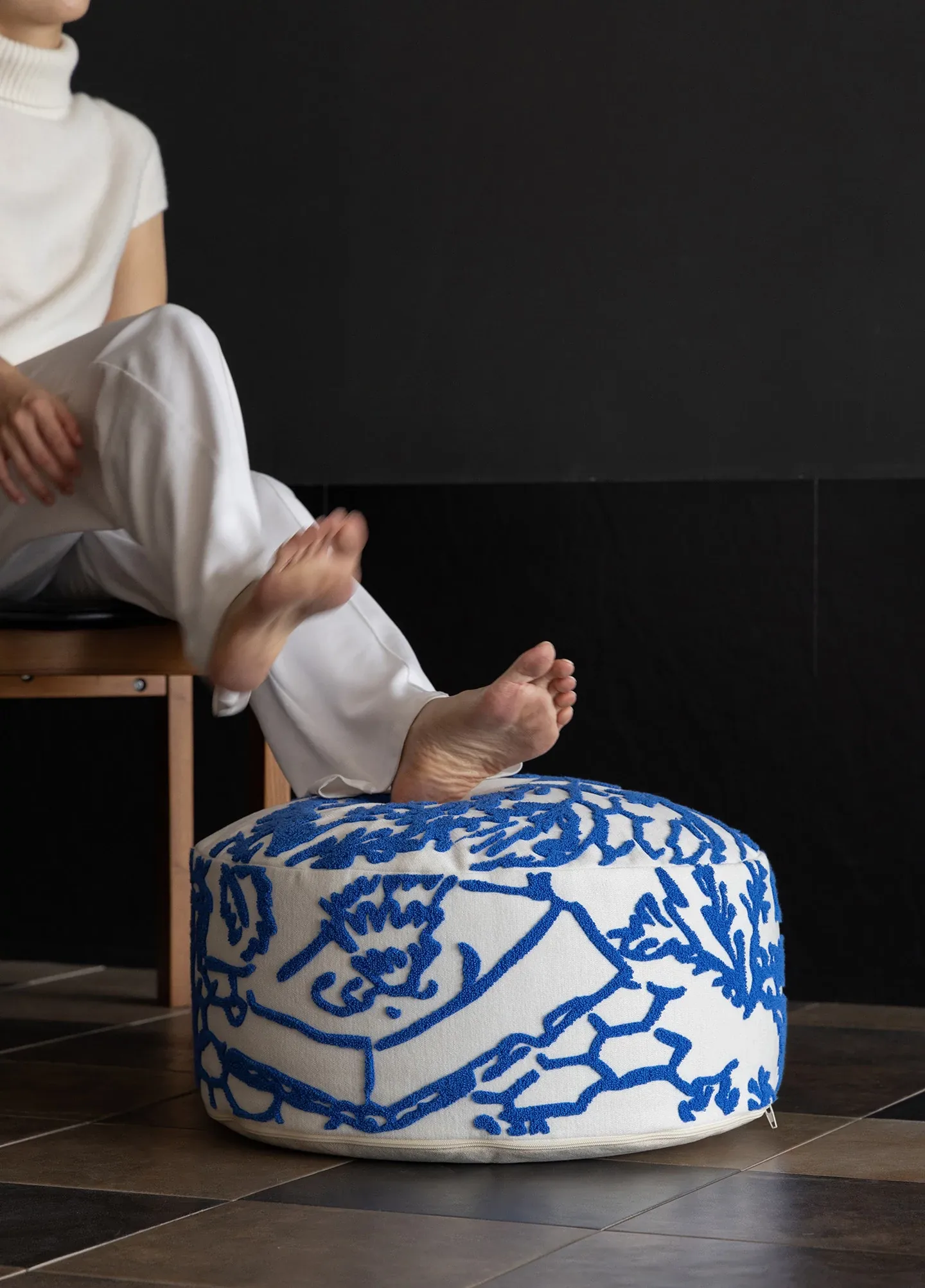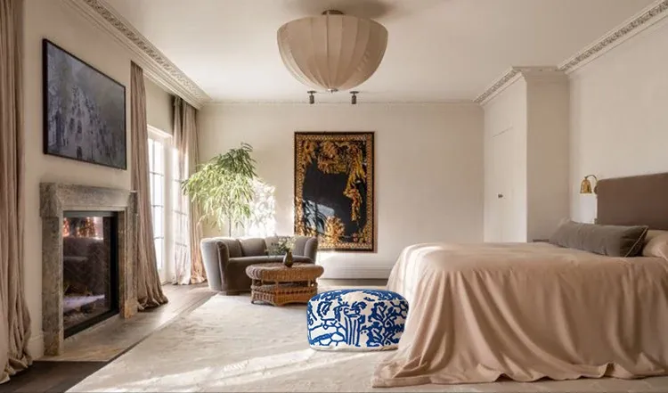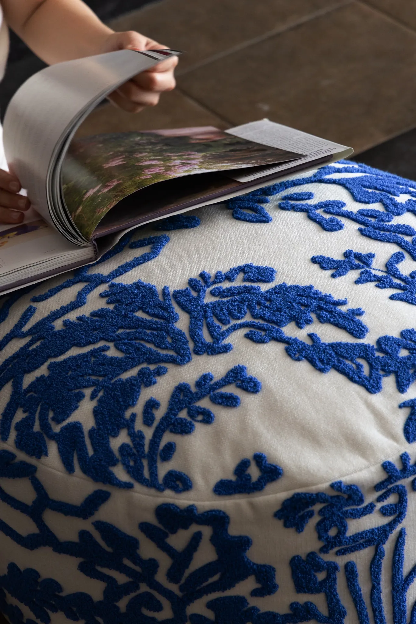 Rona Mystical Manor Series "Blue Enigma" Handmade Embroidered Stool - Removable and Washable 3D Round Ottoman for Stylish Living Spaces