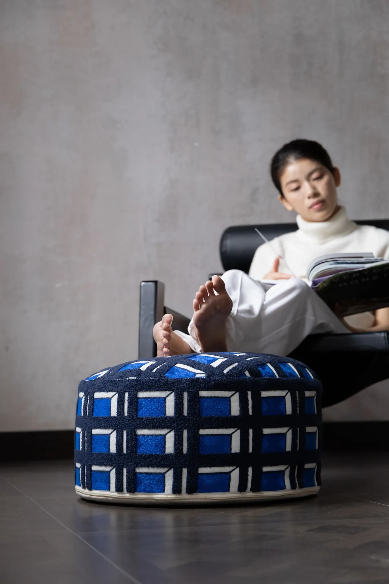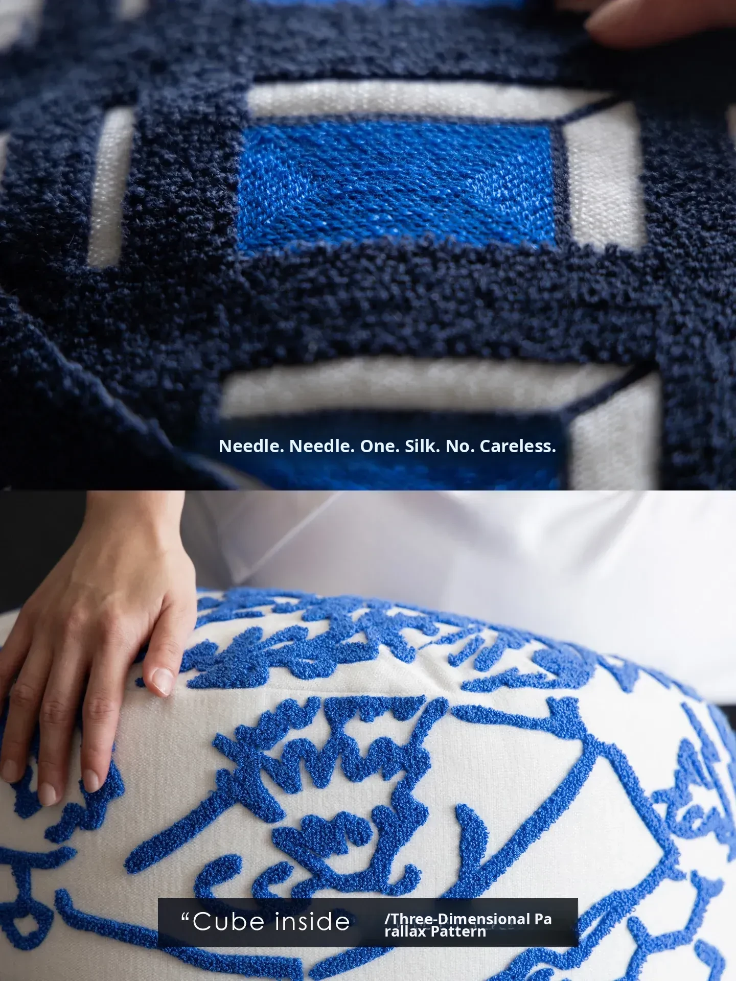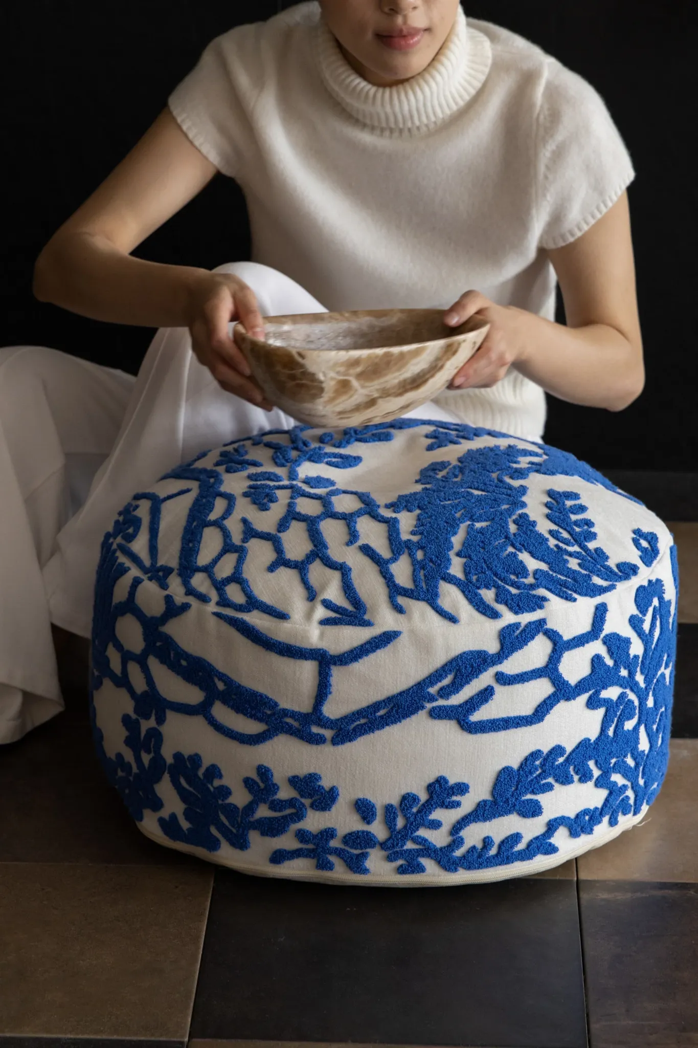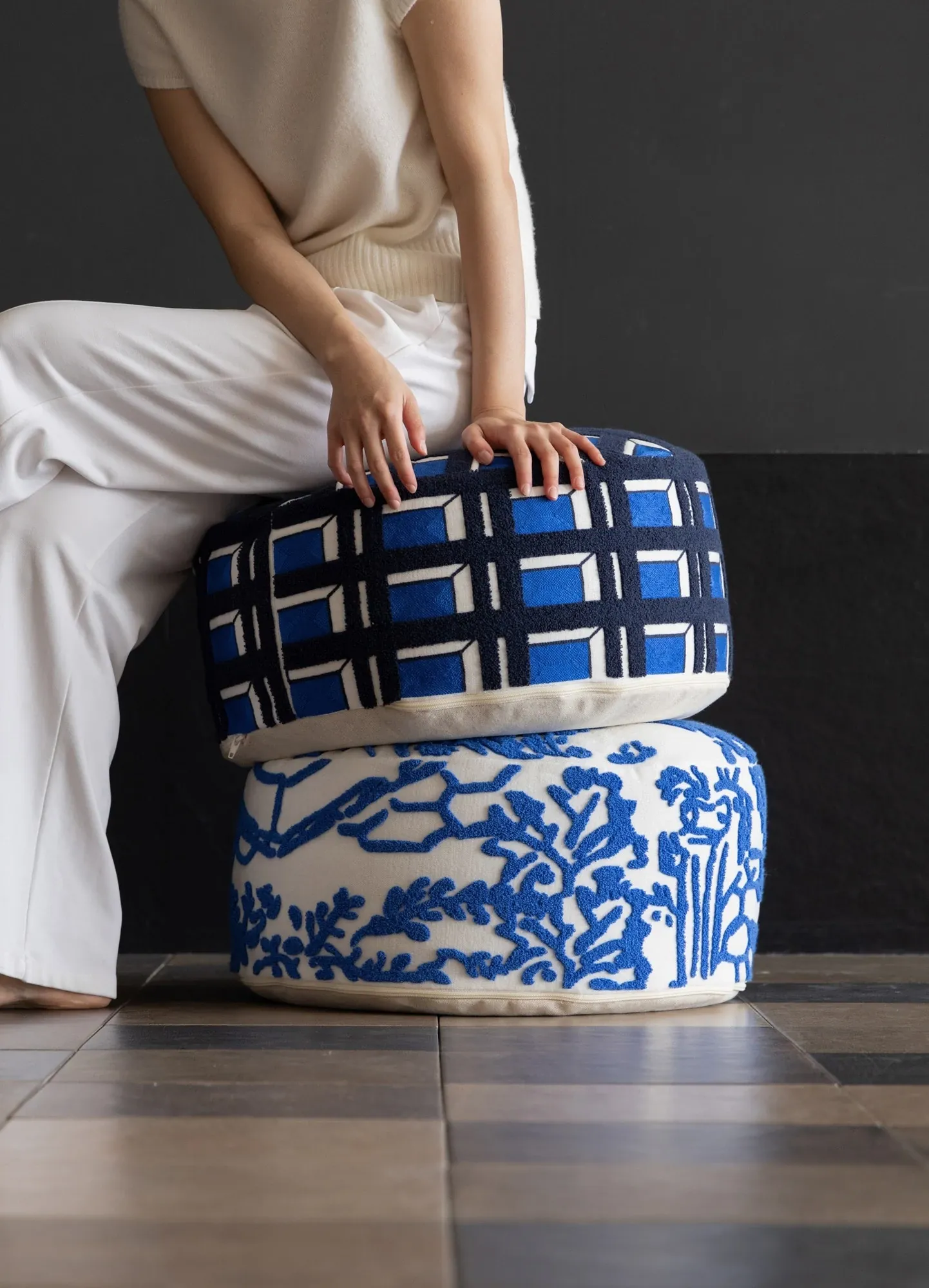 Rona Mystical Manor Series "Blue Enigma" Handmade Embroidered Stool - Removable and Washable 3D Round Ottoman for Stylish Living Spaces