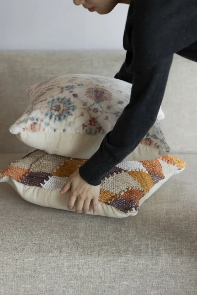 Rona @Nepal Lucky Charm Handcrafted Organic Cotton Velvet Woven Decorative Pillow with Unique Patterns - Perfect Accent for Your Home