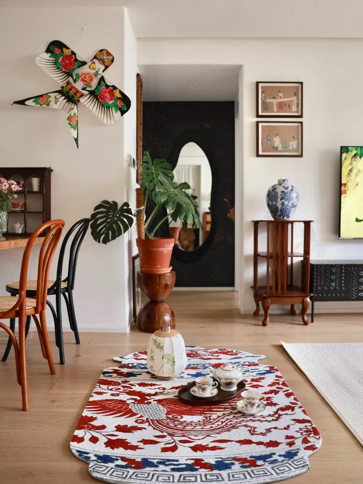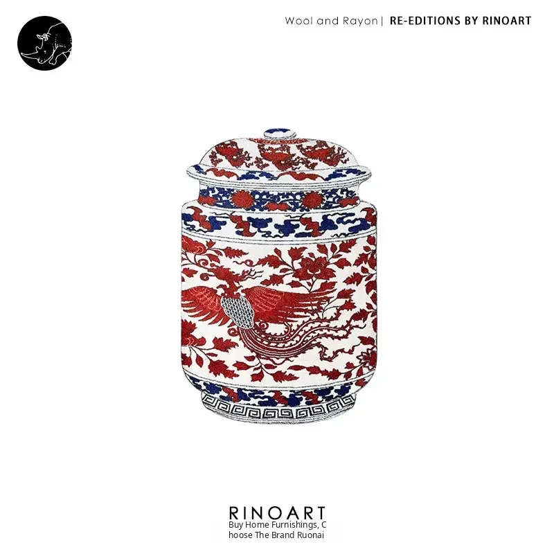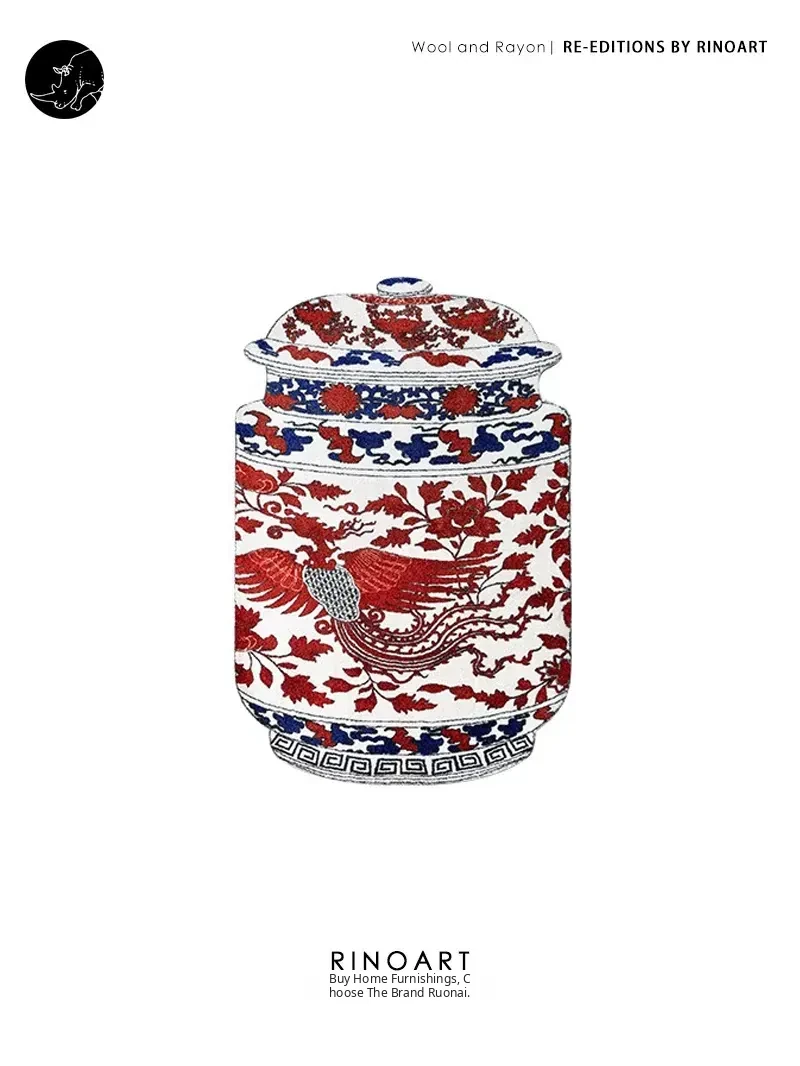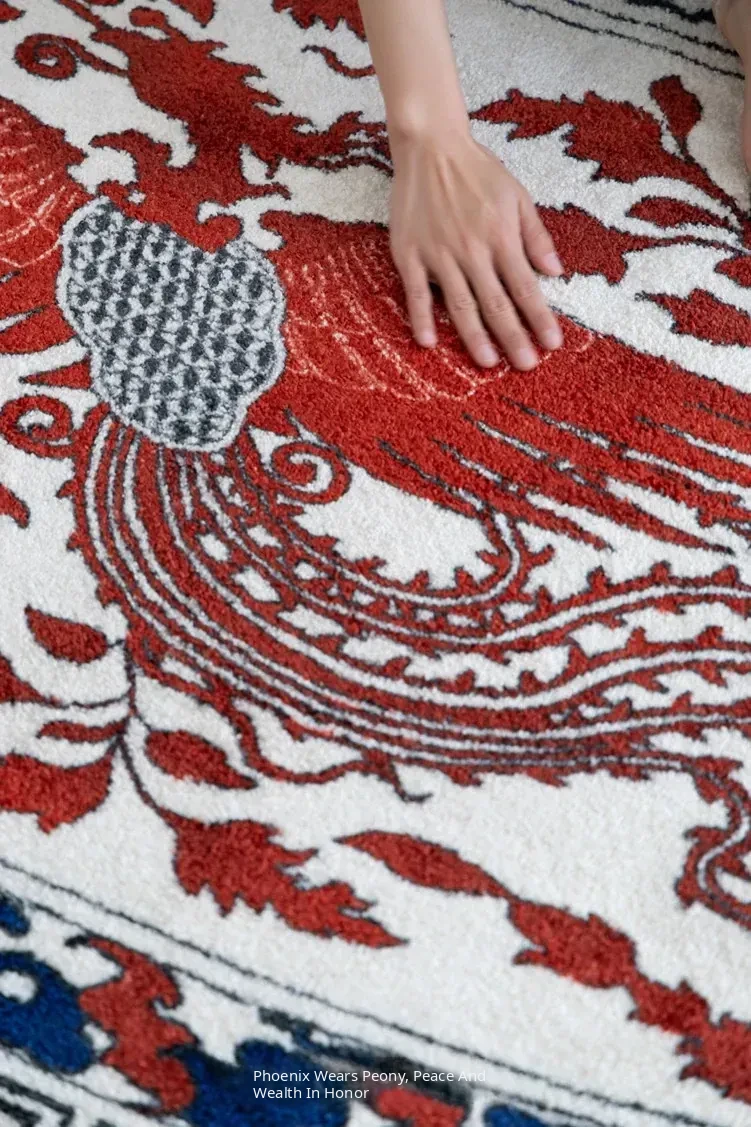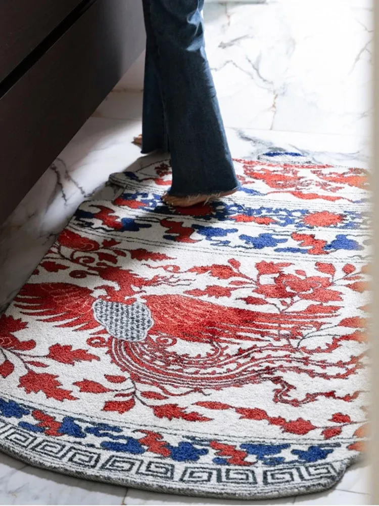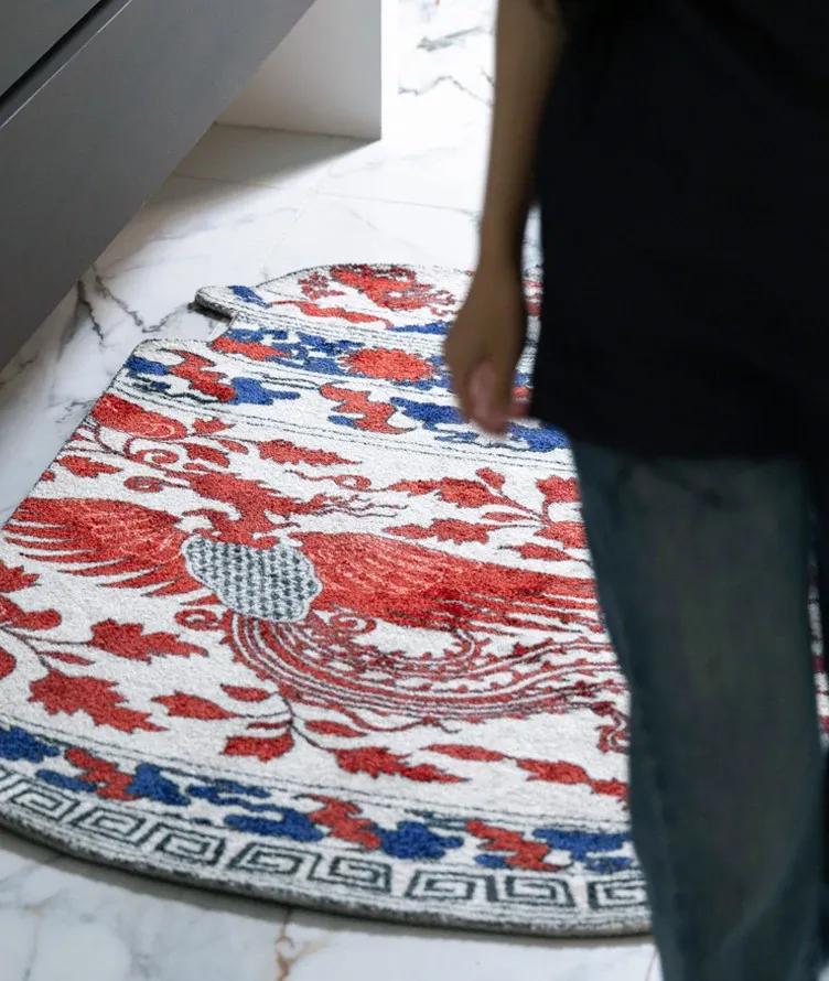 Ruanai Carpet - Eastern Porcelain Blue and White "Phoenix and Peony" Design, Symbolizing Good Fortune - Perfect for Entryway, Bedroom, and New Year Door Mat!