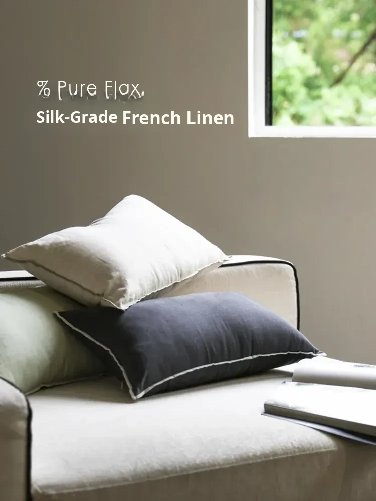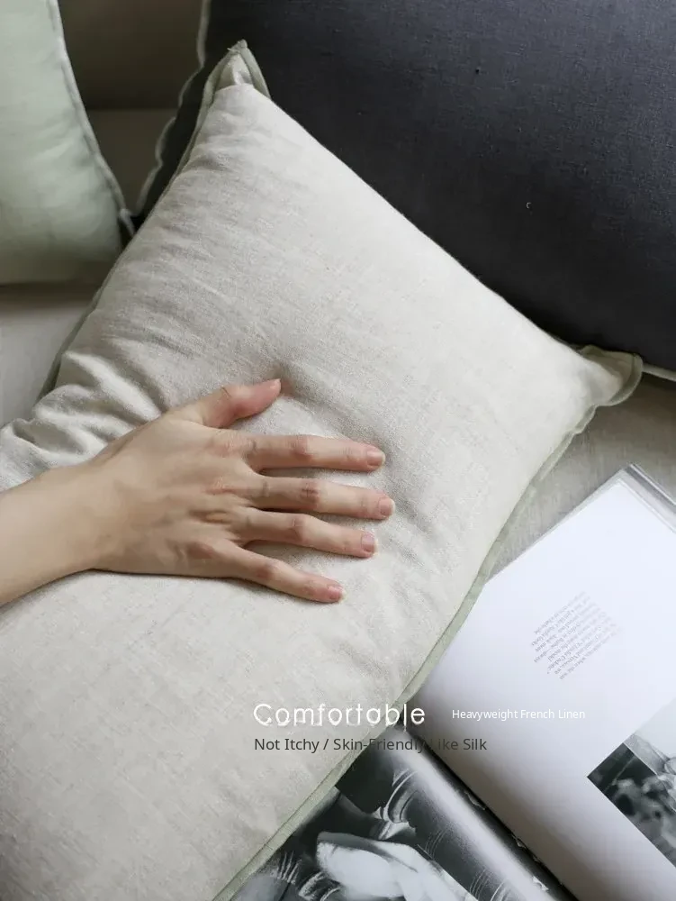 Ruanai Pure Flax Luxury French Silk-Grade Linen Support Pillow - Removable Washable Wabi-Sabi Style Sofa Cushion for Ultimate Comfort