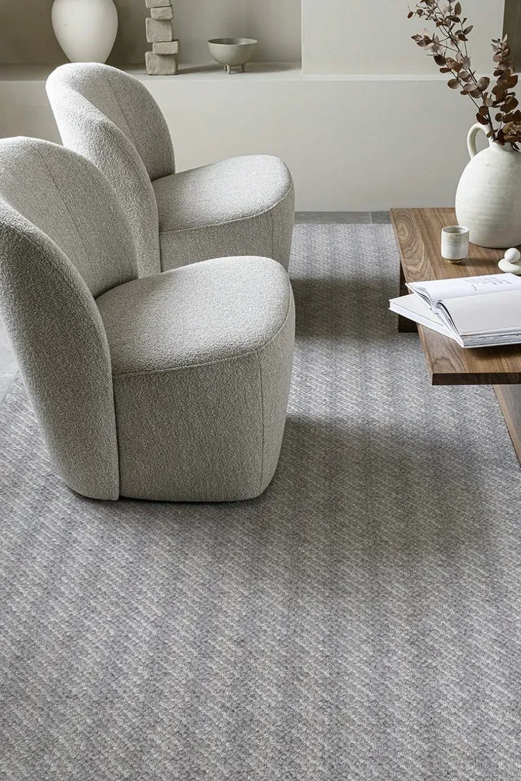 Rug by Ronai: LoroPiana Herringbone Patterned British Grey Wool Carpet - Wabi-Sabi Minimalist Style, Perfect for Living Rooms and Versatile Décor