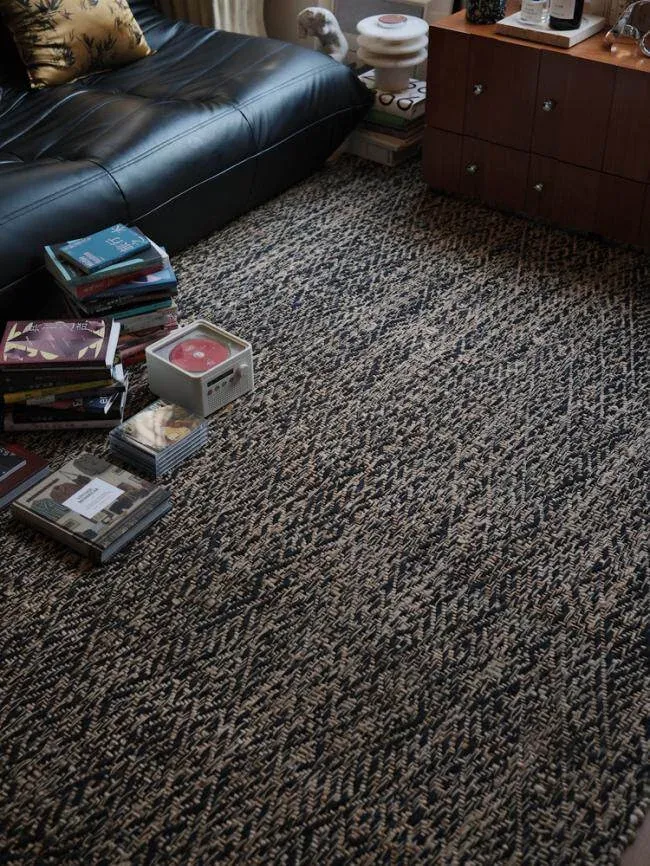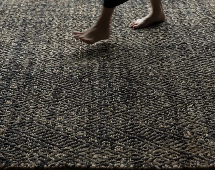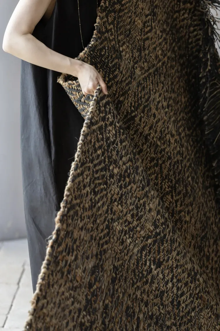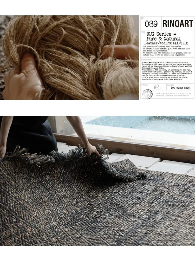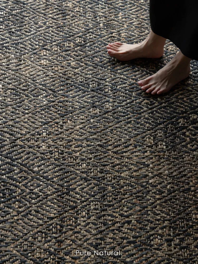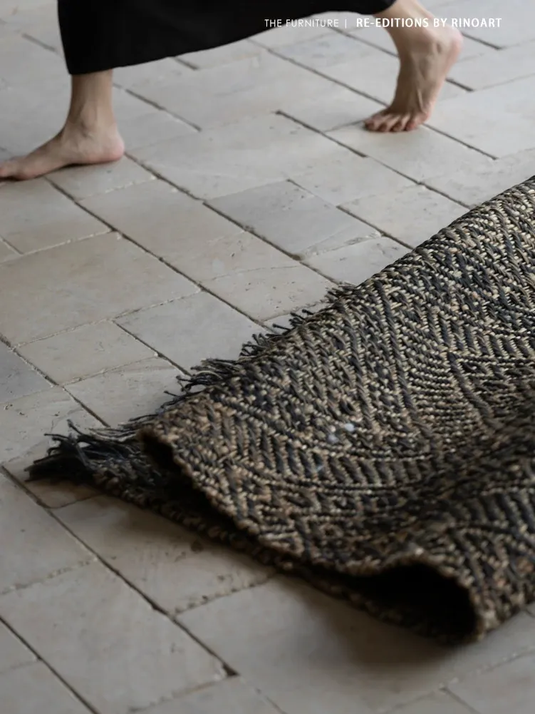Rug of Elegance: Handwoven Moroccan Black and Yellow Jute Fringe Carpet - Reversible Wabi-Sabi Bedside Mat for a Touch of Bohemian Charm!