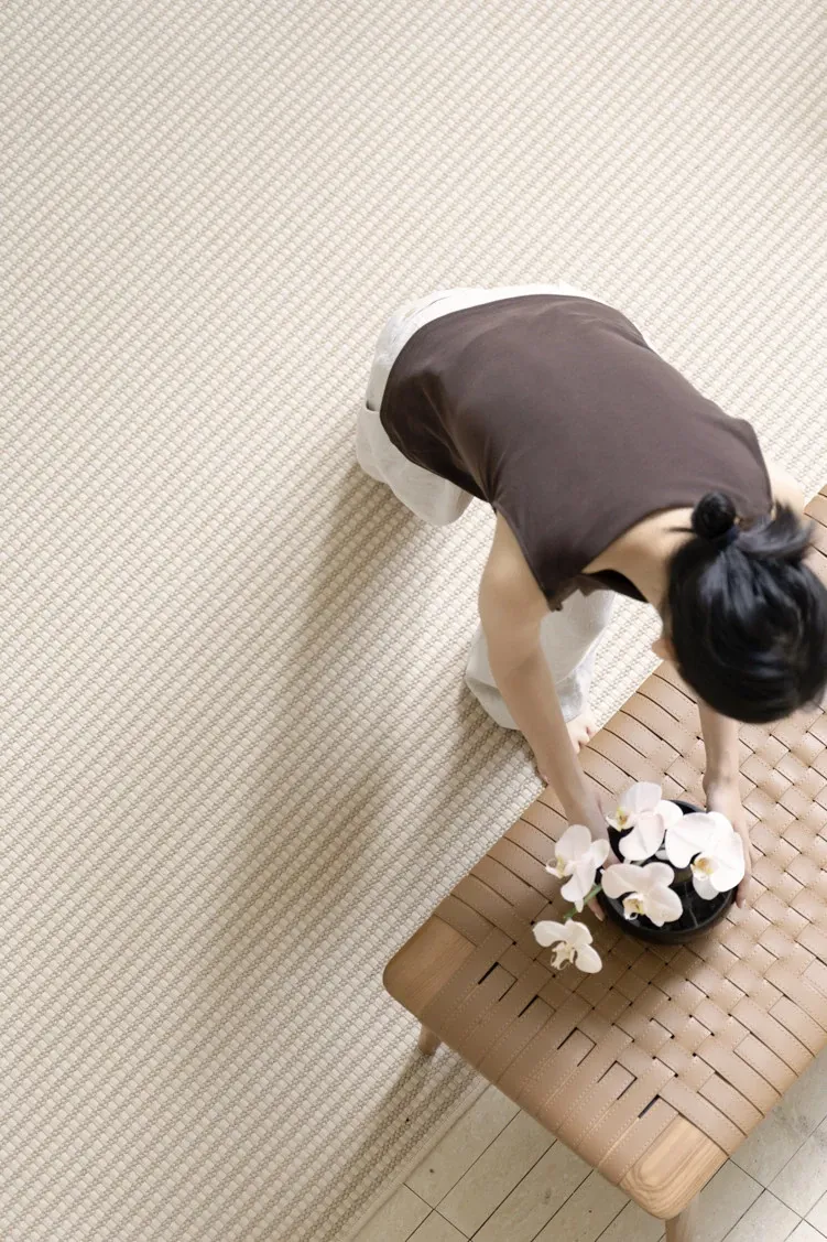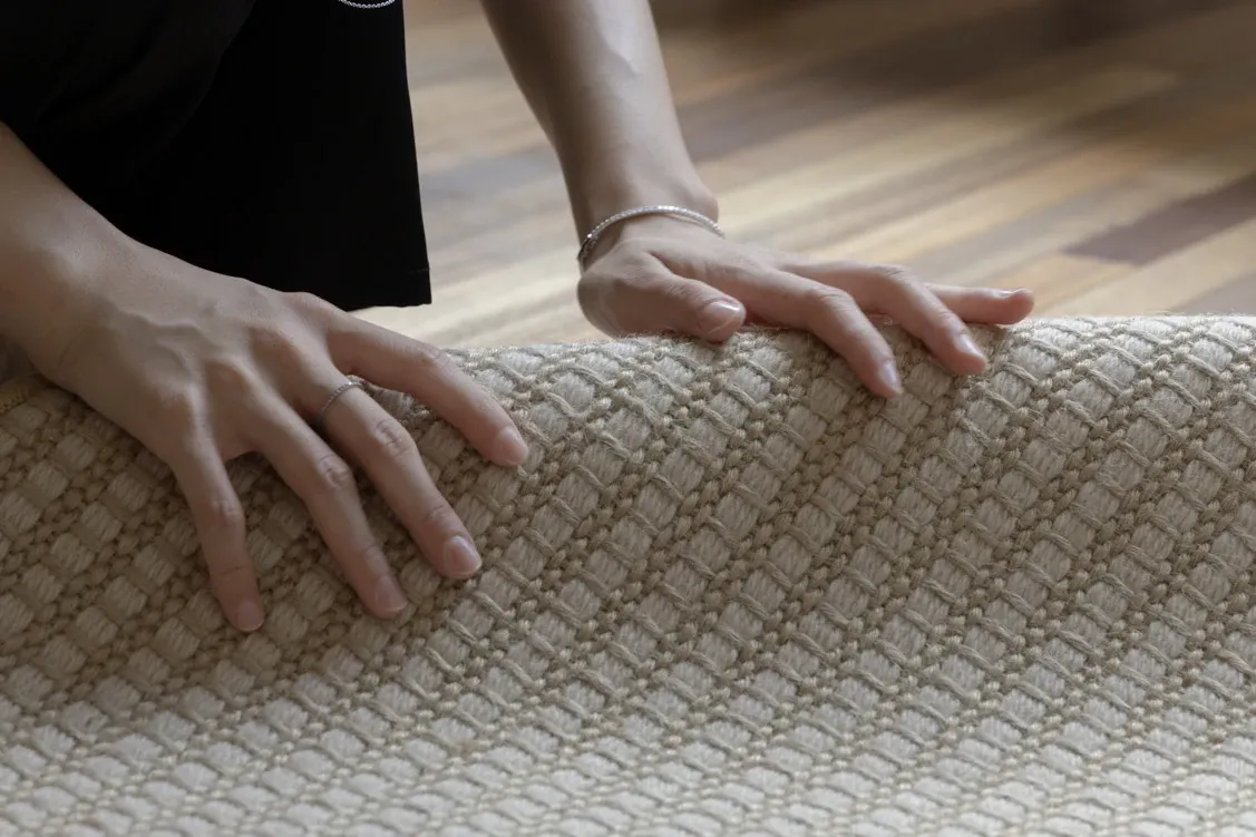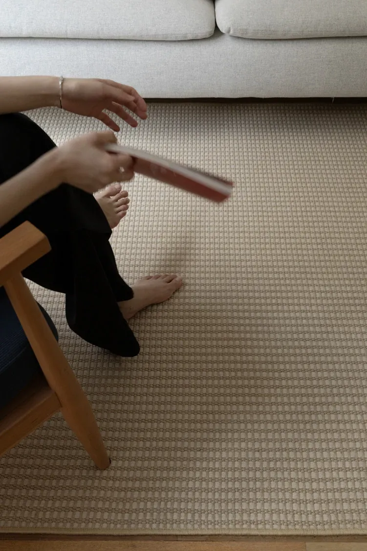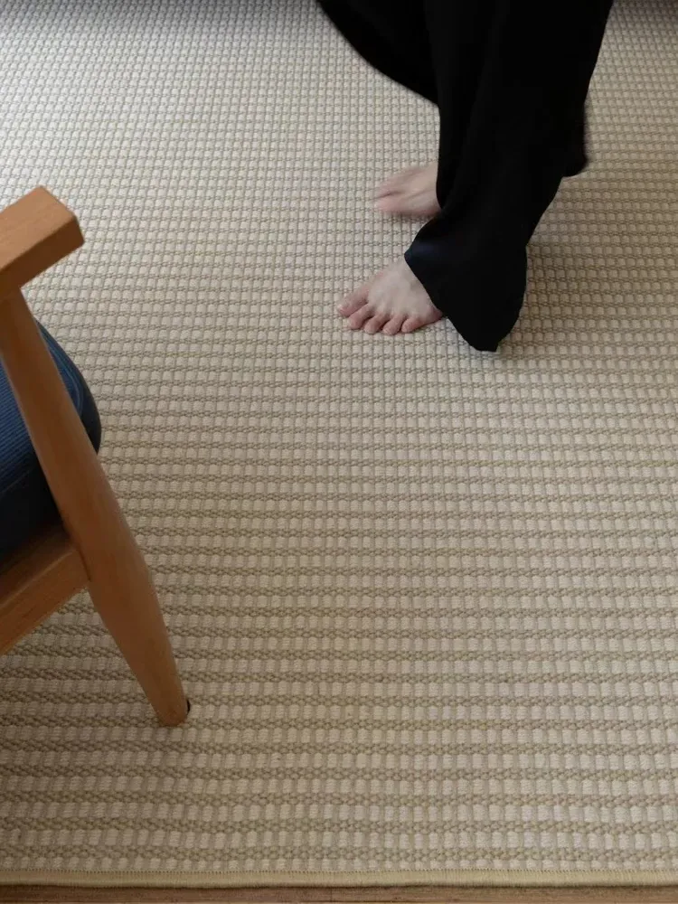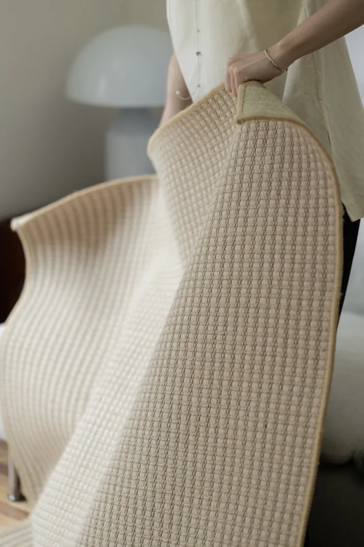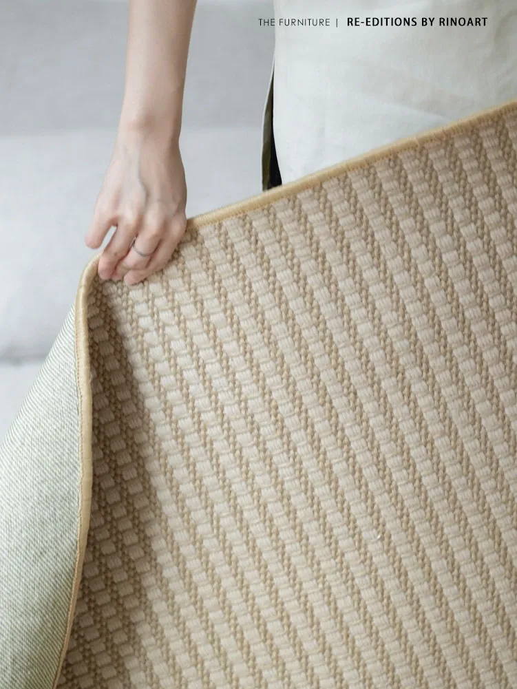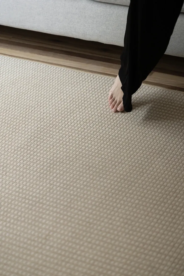 Rug of Elegance: Imported Moroccan Wool & Jute Handmade Carpet for a Serene Bedroom Ambiance - Limited Edition Wabi-Sabi Bedside Mat