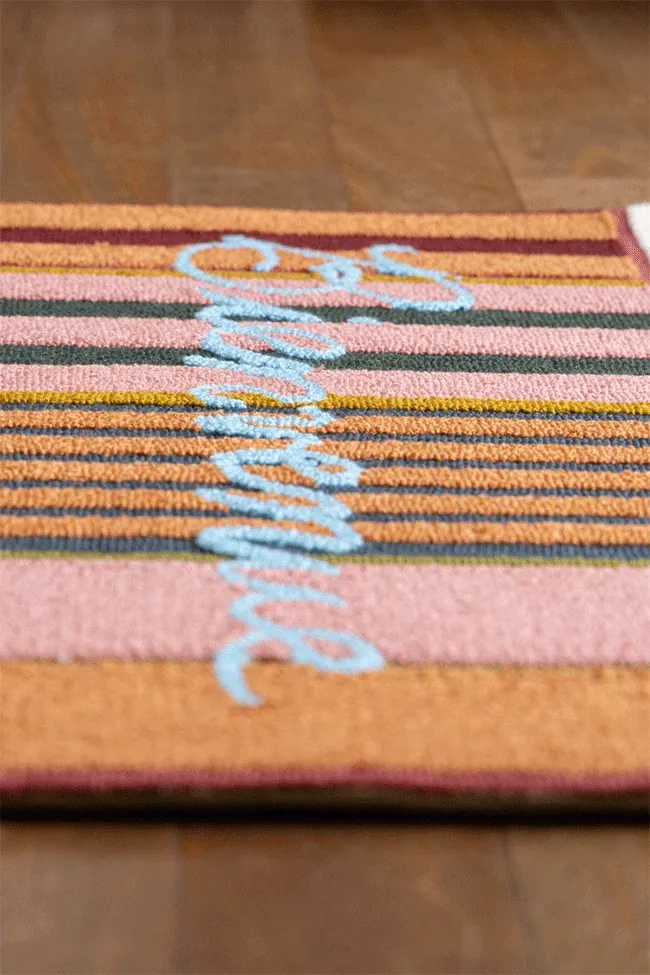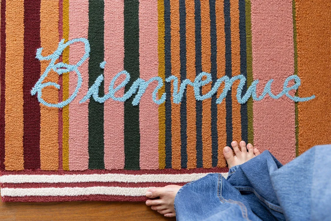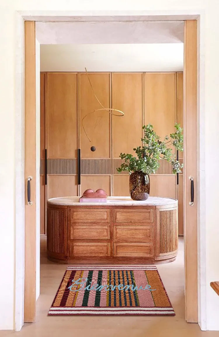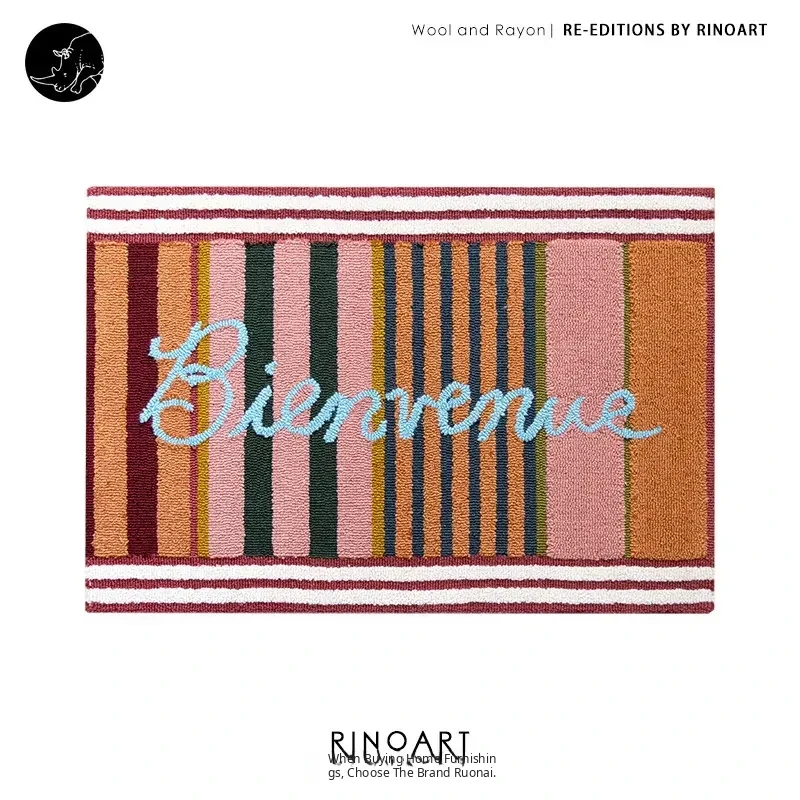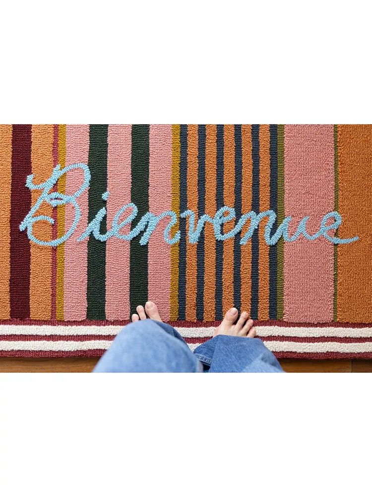 RugNai "Bienvenue Welcome" Colorful Striped Door Mat - Stylish Bedroom & Entryway Rug for New Year Celebrations