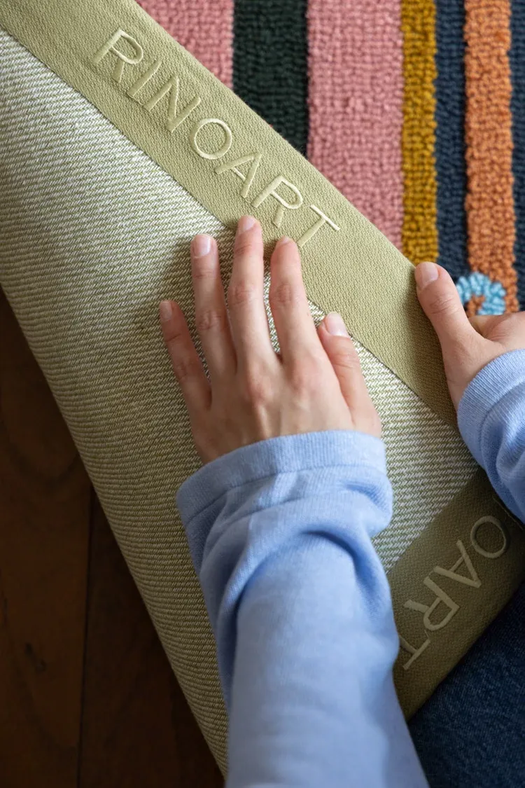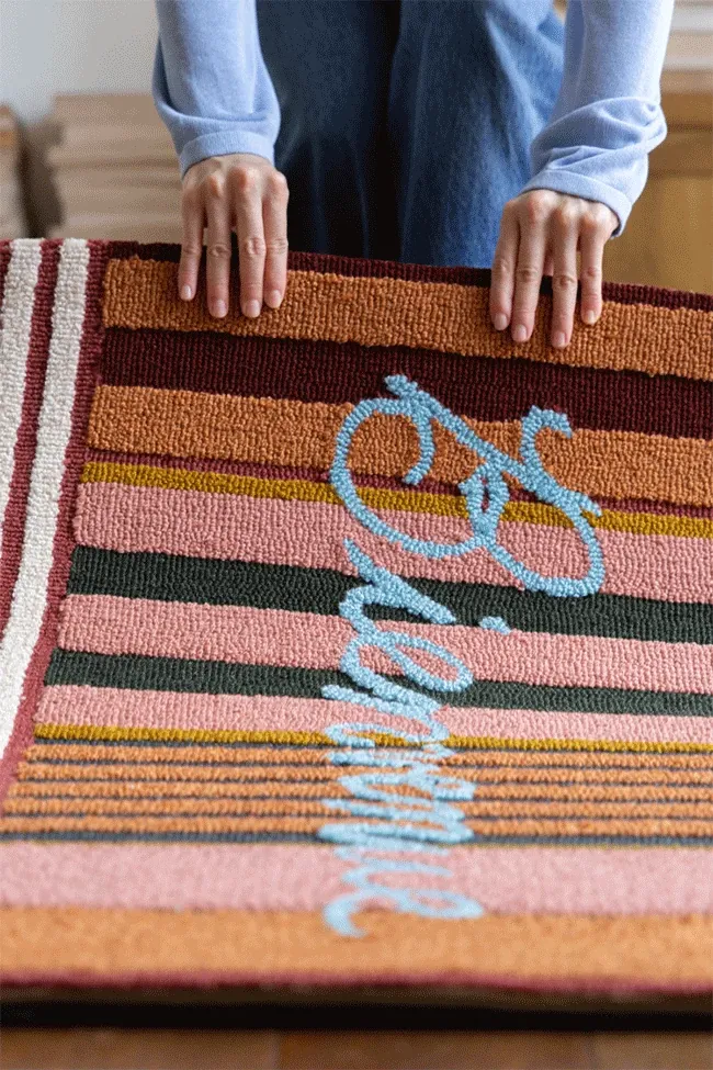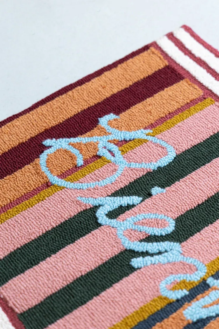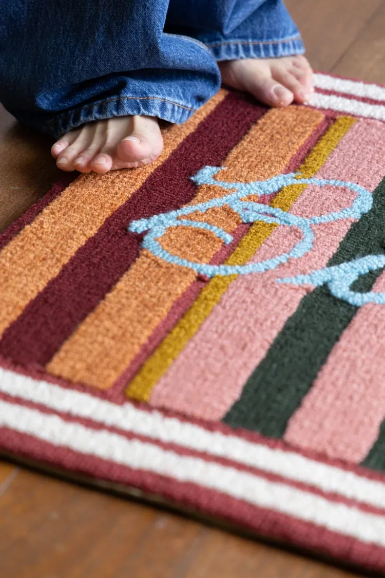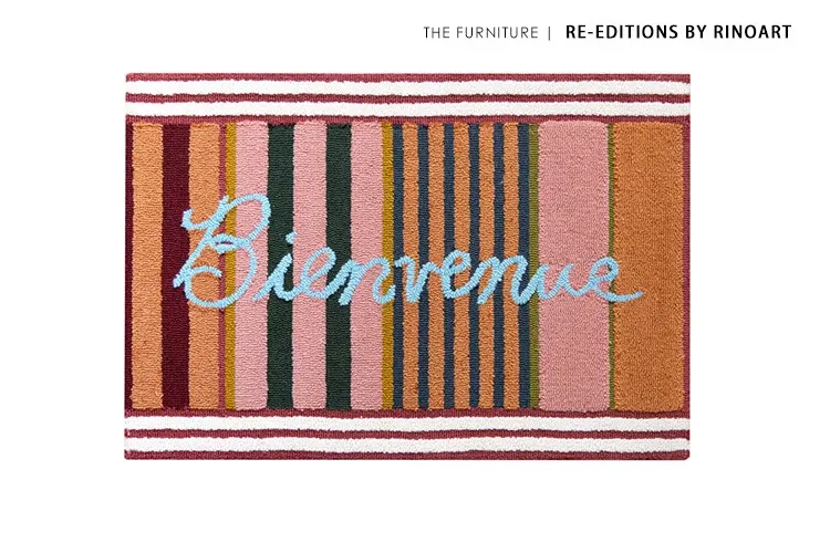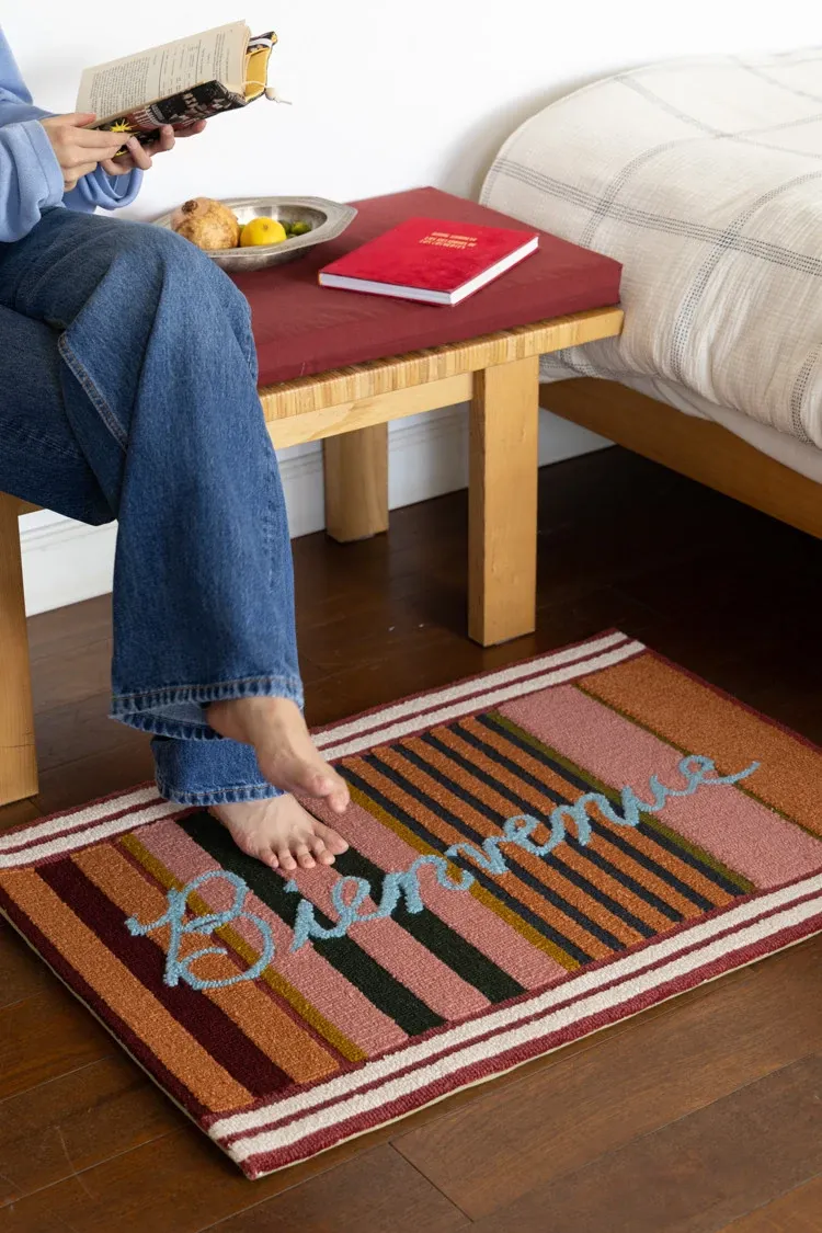 RugNai "Bienvenue Welcome" Colorful Striped Door Mat - Stylish Bedroom & Entryway Rug for New Year Celebrations