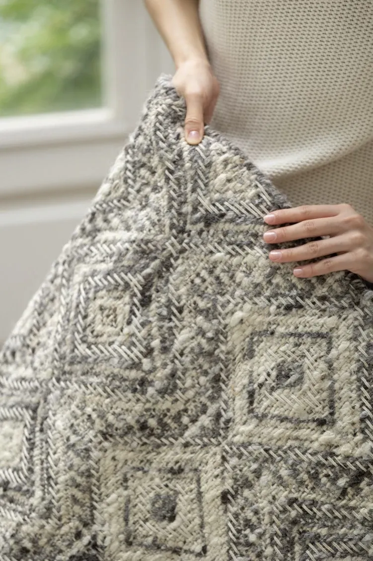 Ruknai Indian Handwoven! Imported Wool Double-Sided Diamond Pattern Rug - No Glue, Purely Handmade for Authentic Style!