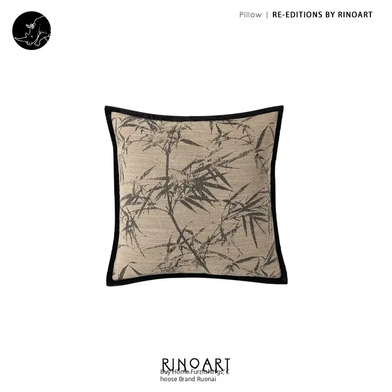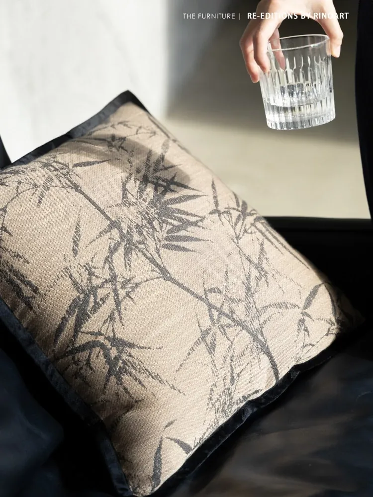 Ruo Nai Eastern Ink Studio Handwoven "Bamboo Reflection" Jacquard Embroidered Throw Pillow with Insert - Elegant Sofa Cushion for a Touch of Artistry in Your Home Decor
