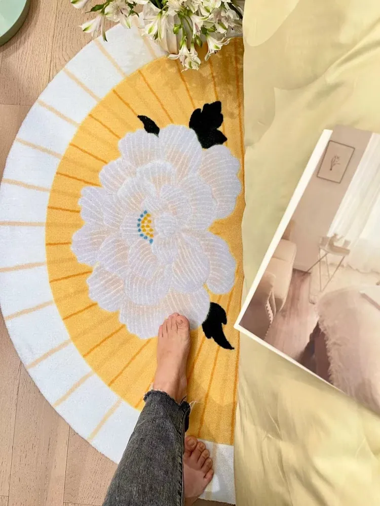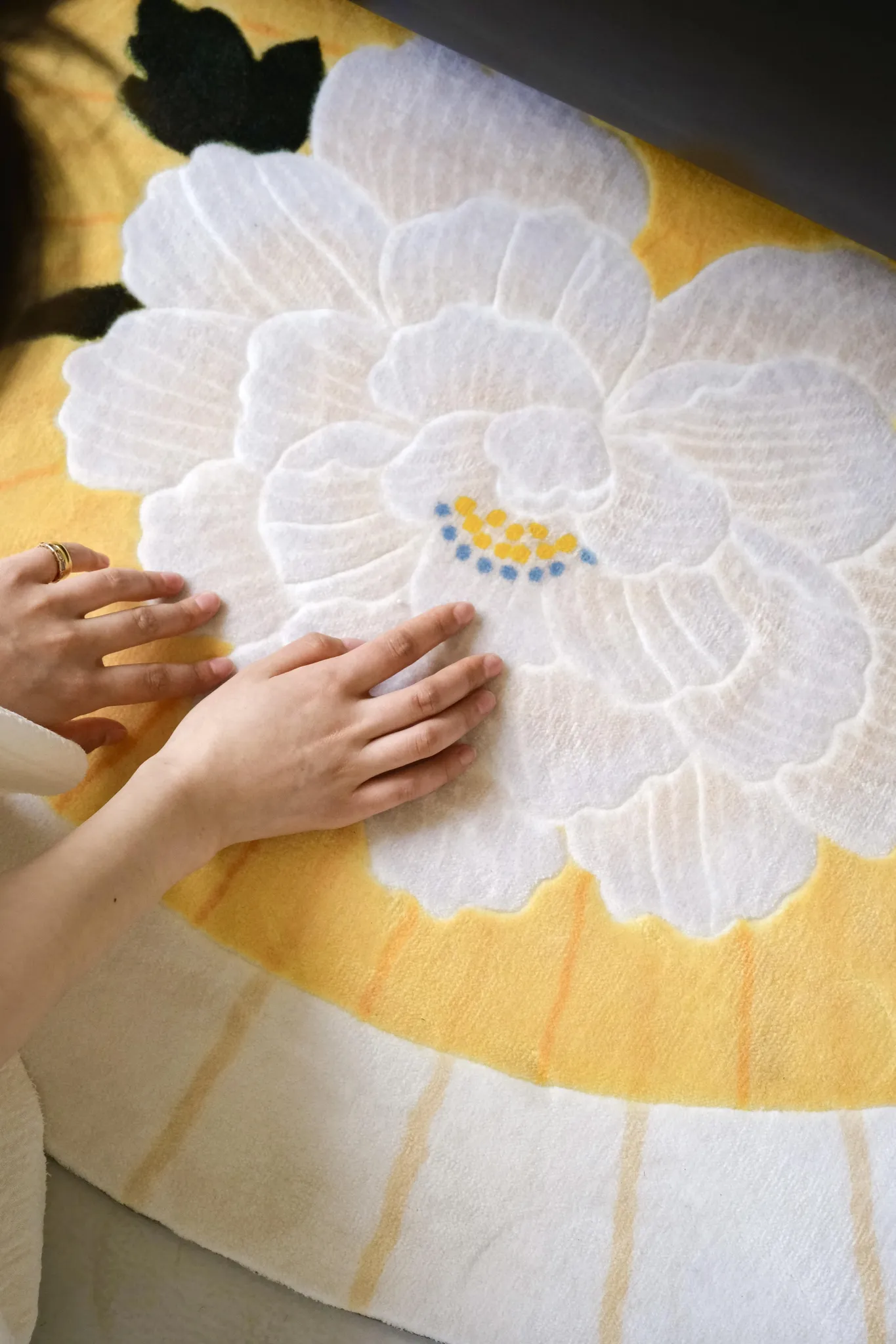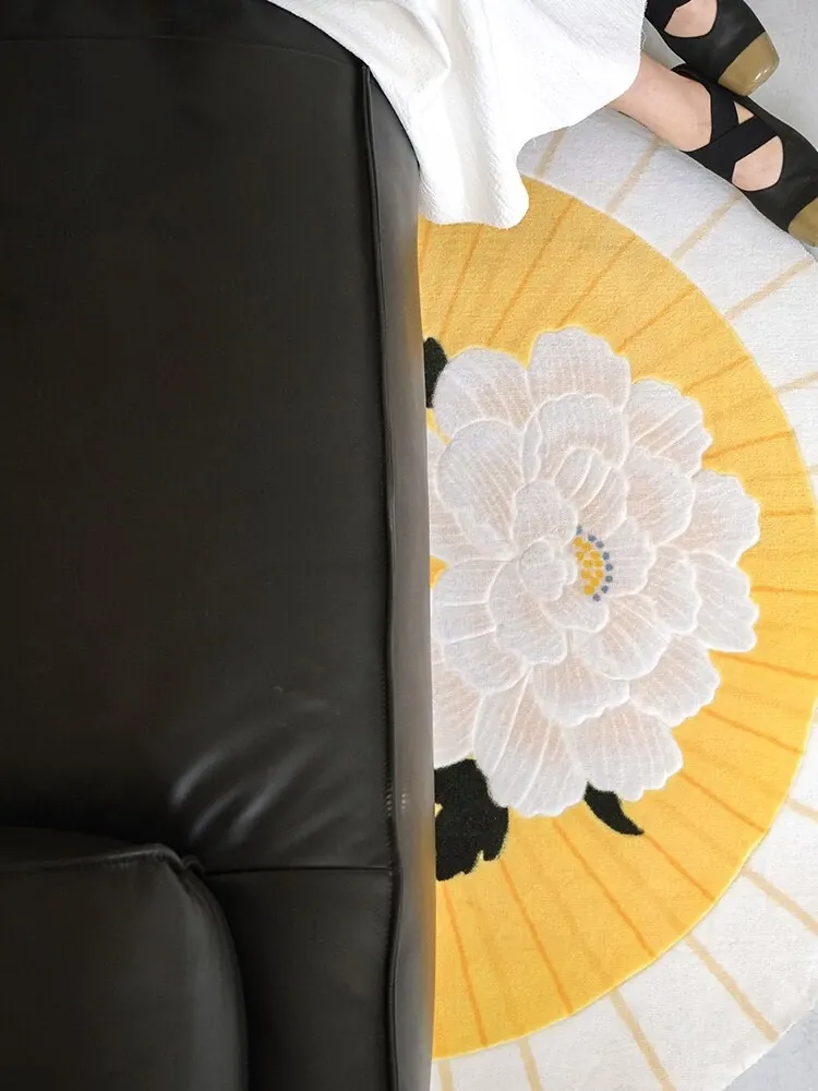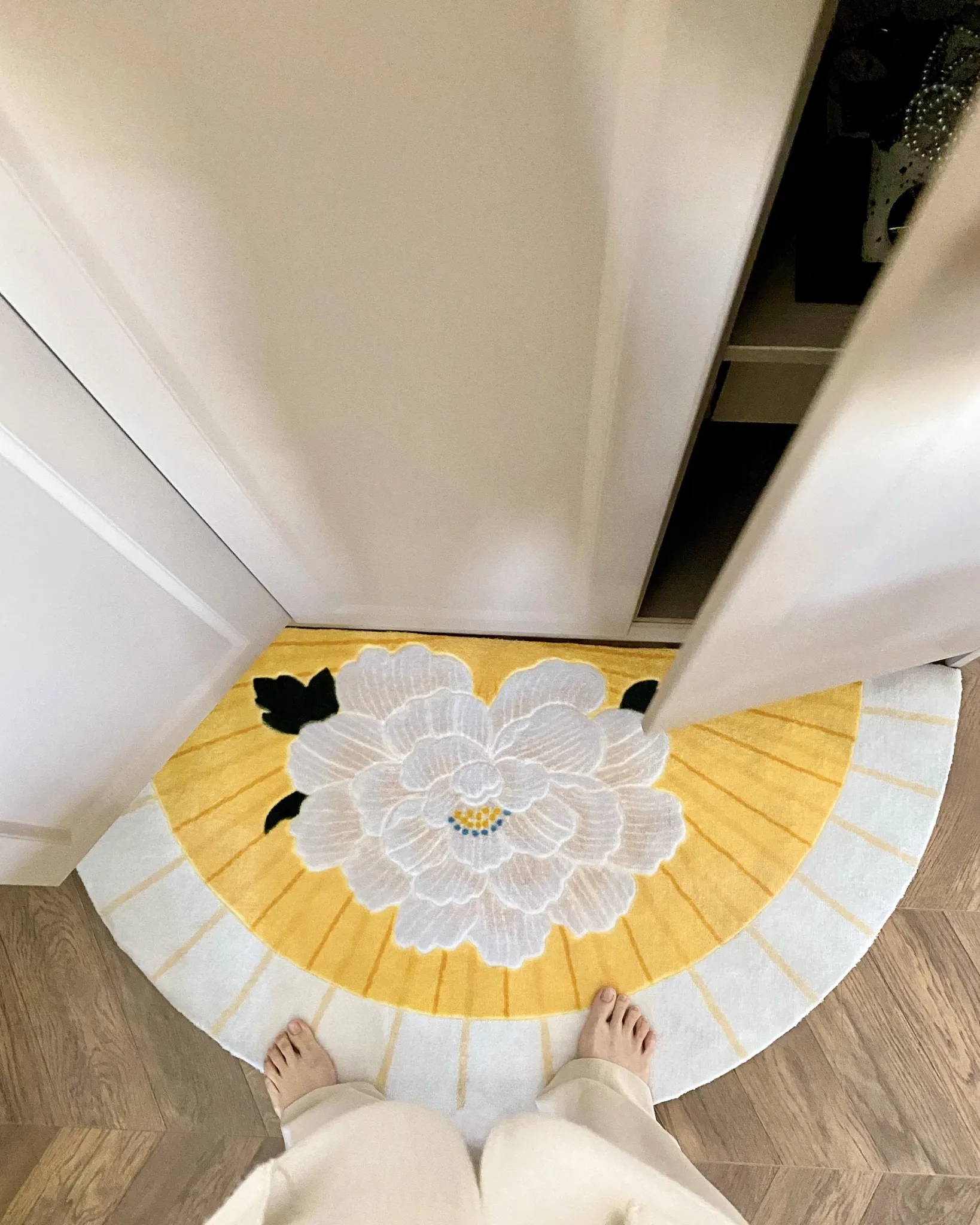 "Ruo Nai 'Jishan Home' Uma Series Eastern Peony Design Hand-Carved 3D Doormat – Perfect for Entrances and Bedrooms"