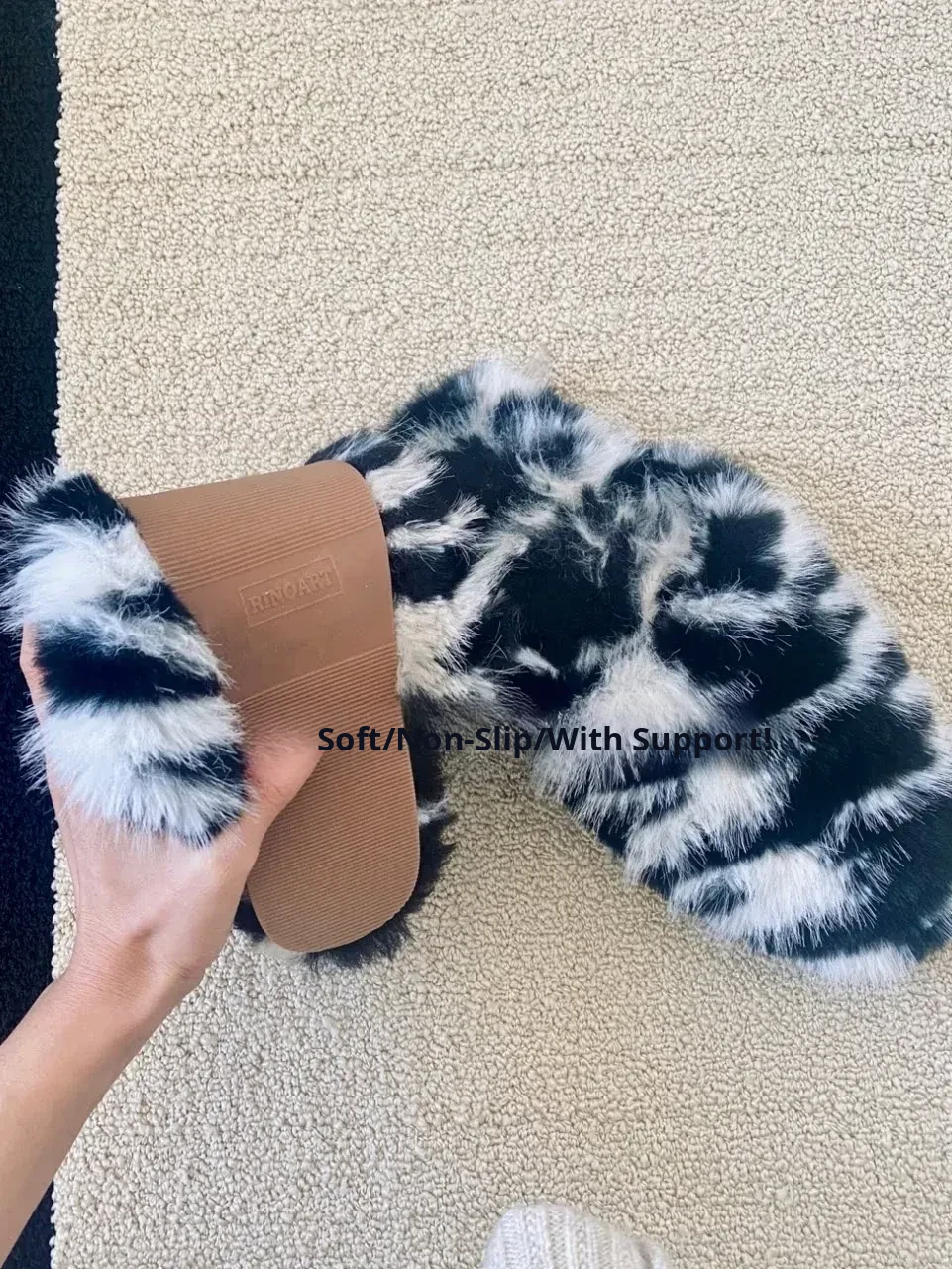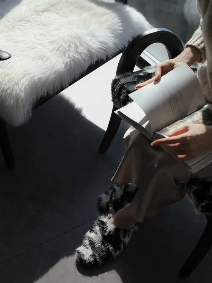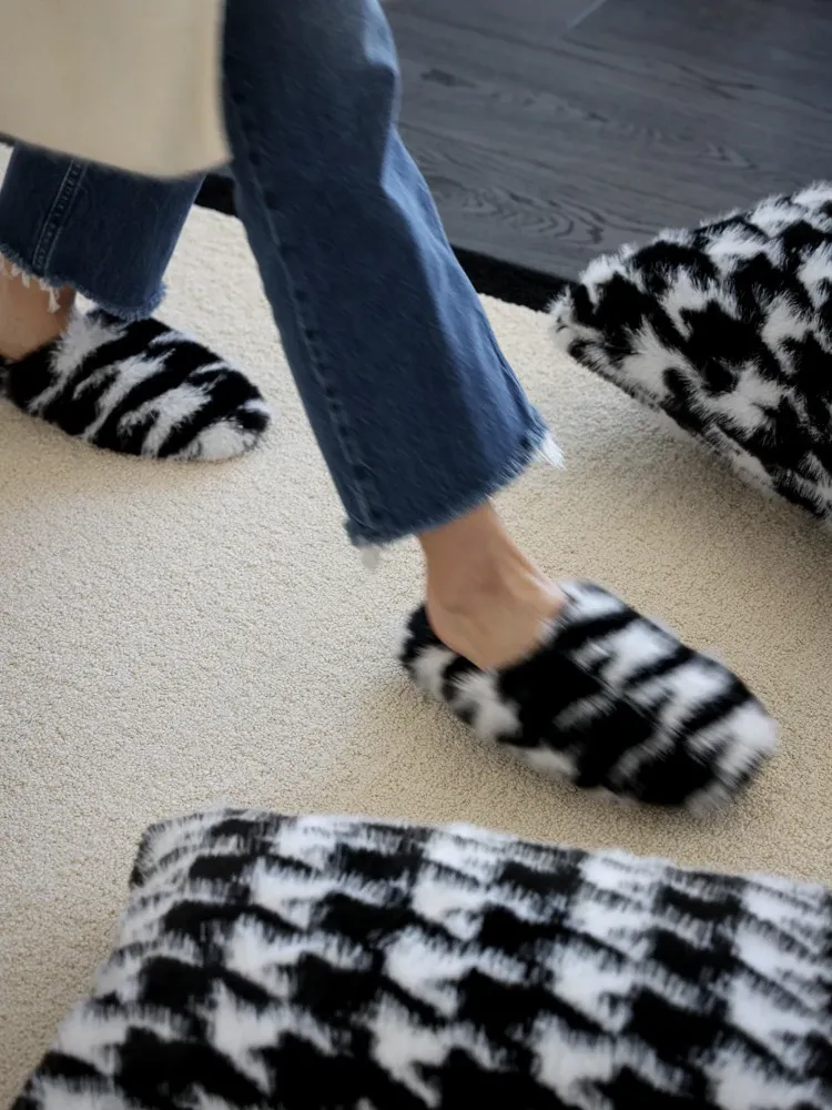 Ruo Nai Premium Mink Velvet Collection! Trendy and Warm OLDCEL*NE Thick Furry Slippers for Stylish Outdoor Wear