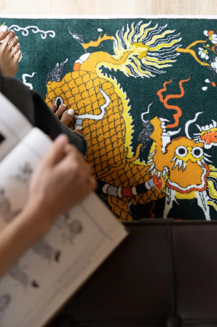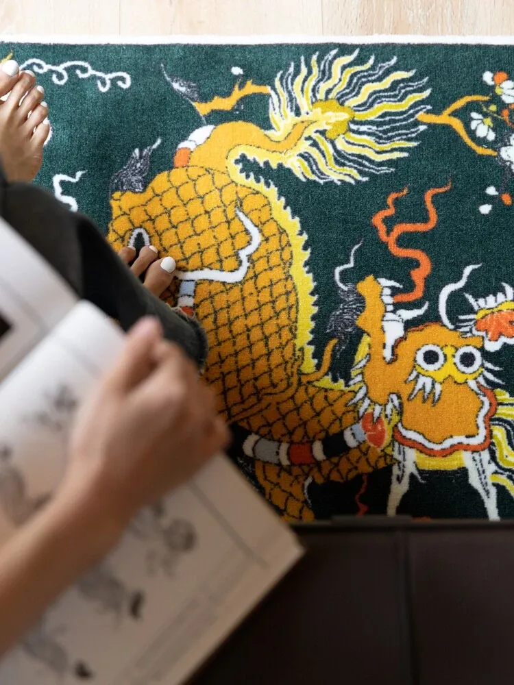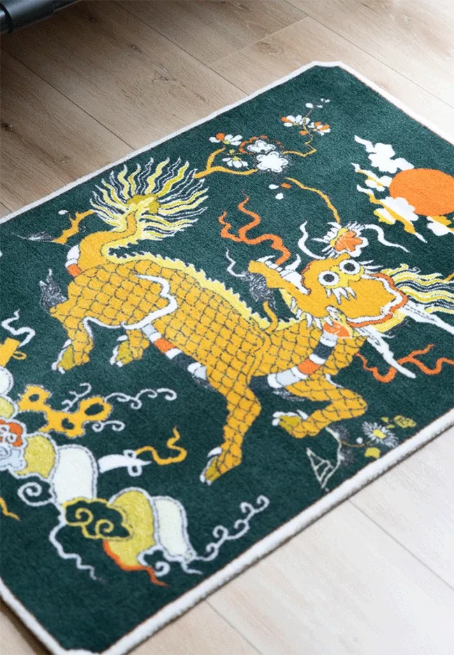 Ruonai Carpet - Imperial Collection Antique Carpet "Fortune Dragon" with Positive Symbolism, Perfect for Entryway Door Mat