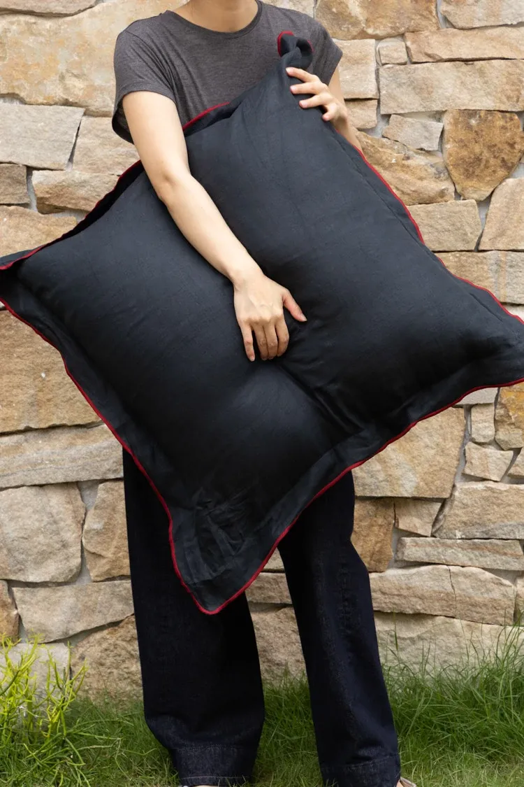 Ruonai Pure Flex: French Linen "Black Pearl" Large Supportive Silk-Grade Sofa Cushions for Ultimate Comfort