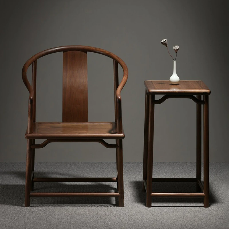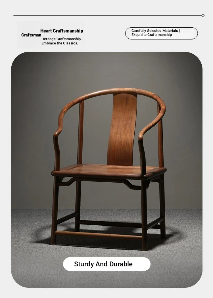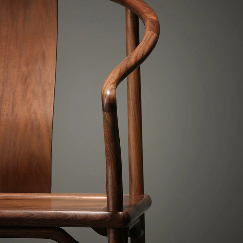 Solid Wood High Back Chair - Elegant Teahouse Chair, Official Hat Circle Chair, Traditional Scholar's Chair, Comfortable Computer Desk Chair, Dining Chair with Backrest, Crafted from Walnut Wood