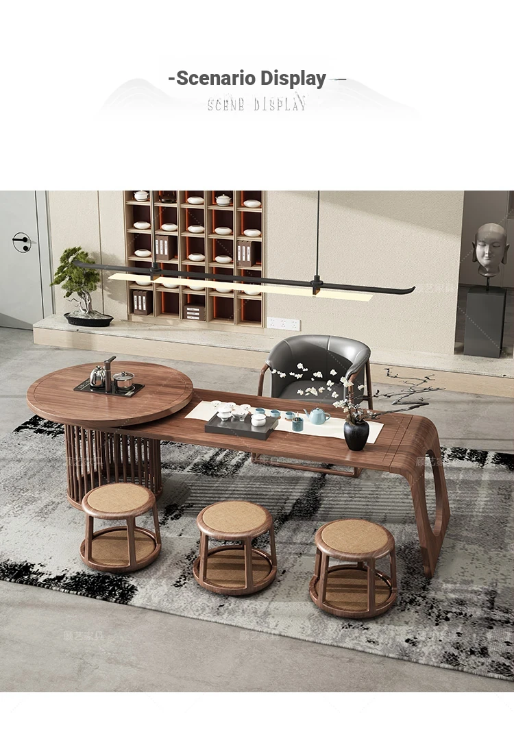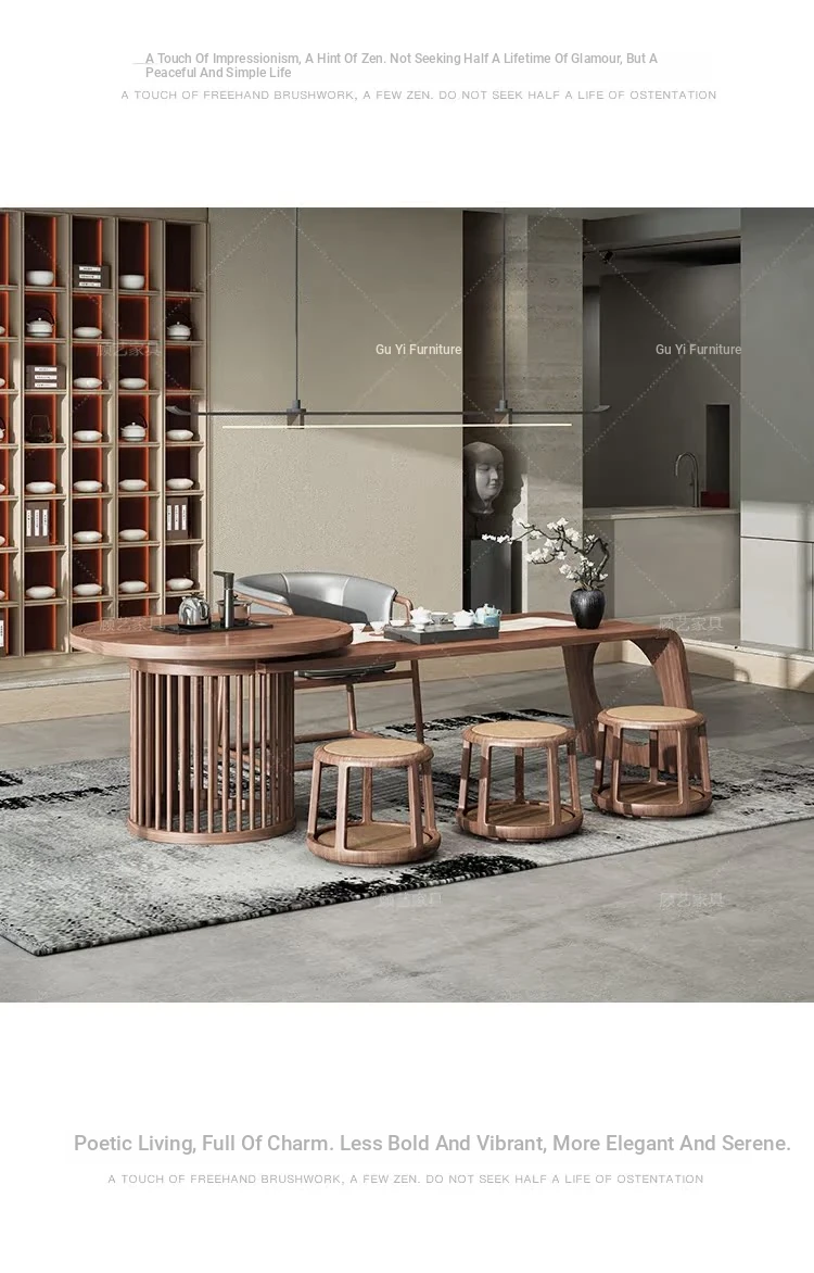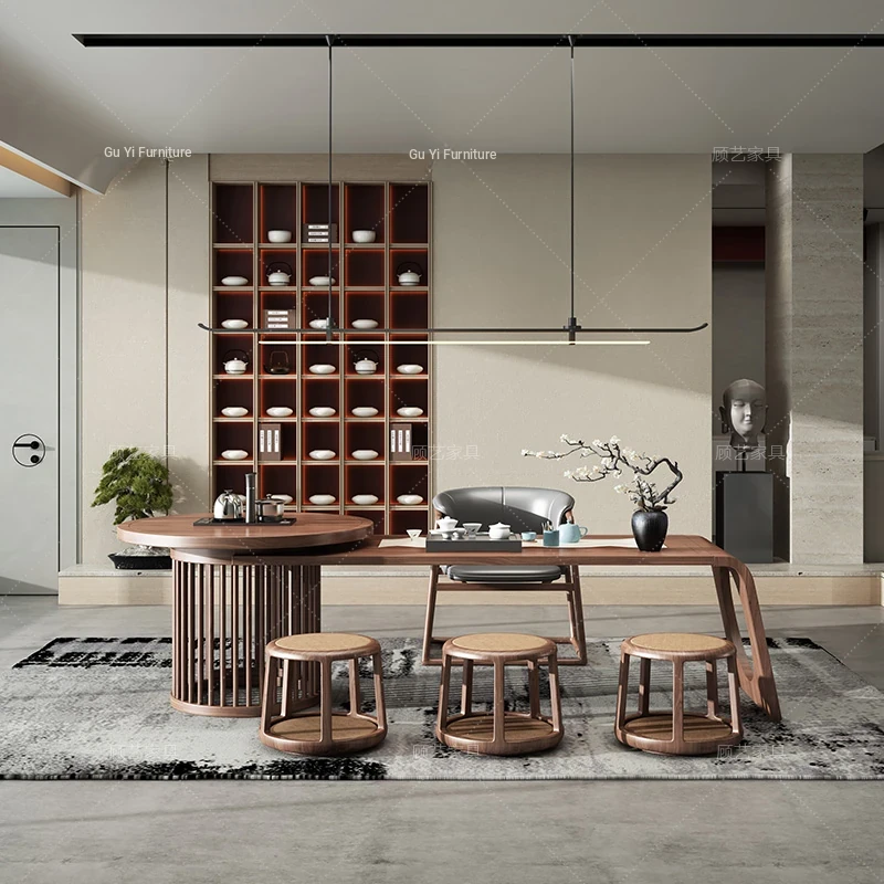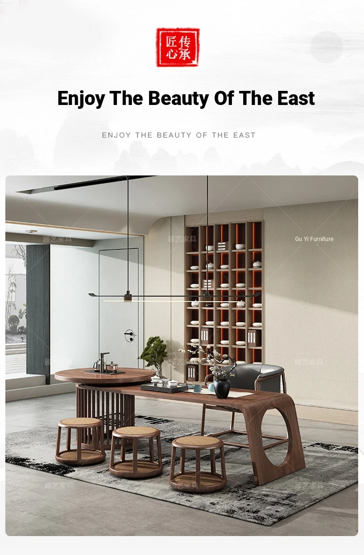 Stylish New Chinese Solid Wood Tea Table and Chair Set for Office - Elegant Kung Fu Tea Table, Perfect for Tea Rooms, Made of Walnut Wood Furniture